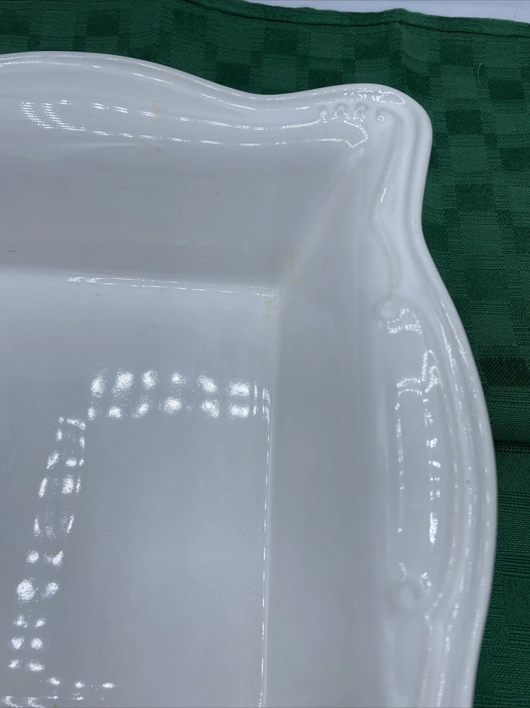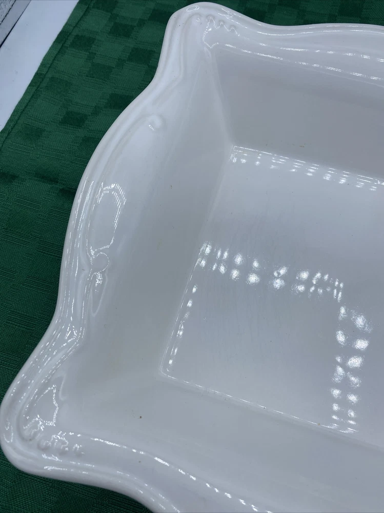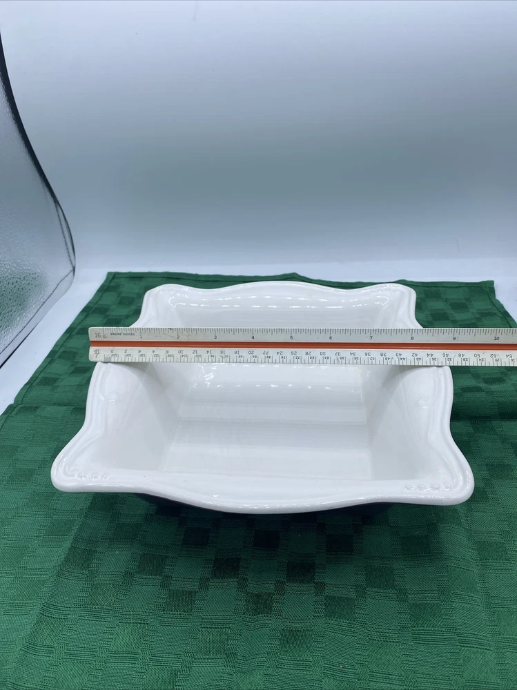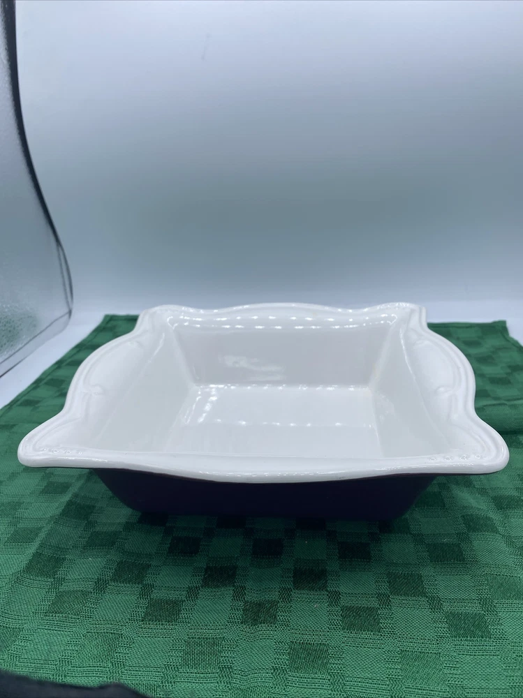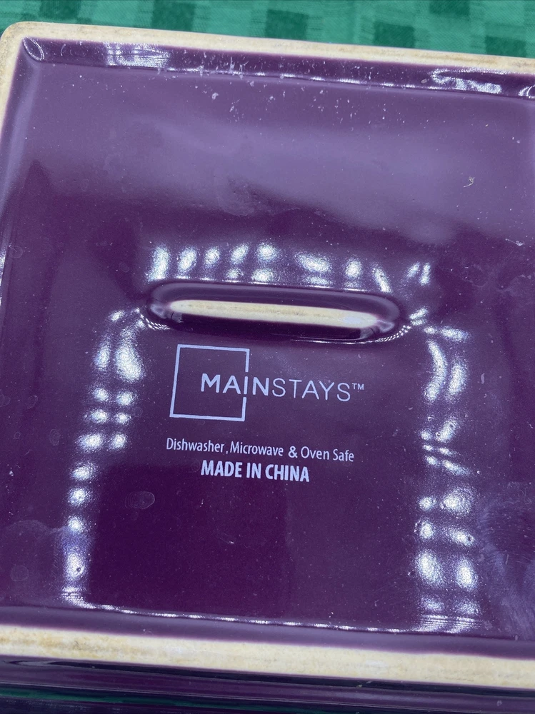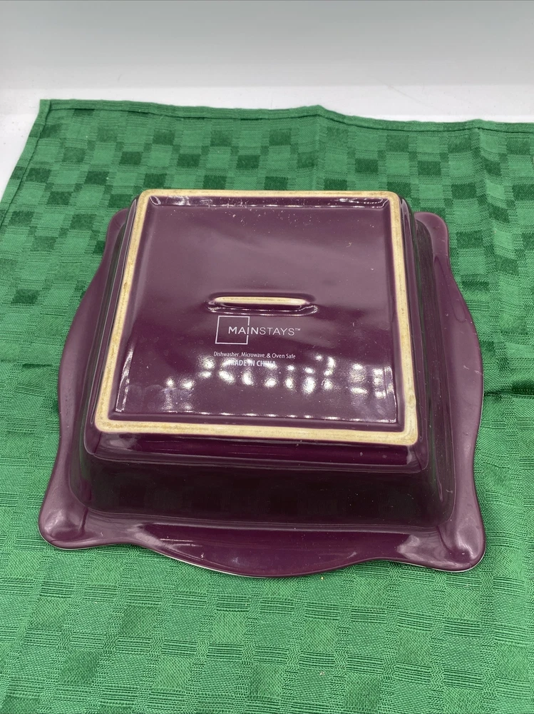 This Mainstays casserole dish is a versatile addition to any kitchen. The square shape with scalloped edges and white interior with a purple exterior make it a stylish choice for serving your favorite baked dishes. Made of durable ceramic material, it is easy to clean and oven and dishwasher safe. It measures 9 inches in width and has a depth of 3 inches. The baking dish comes with features that make it microwaveable as well. Whether you are preparing a special meal for yourself or entertaining guests, this Mainstays casserole dish is the perfect choice.
