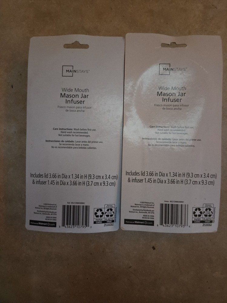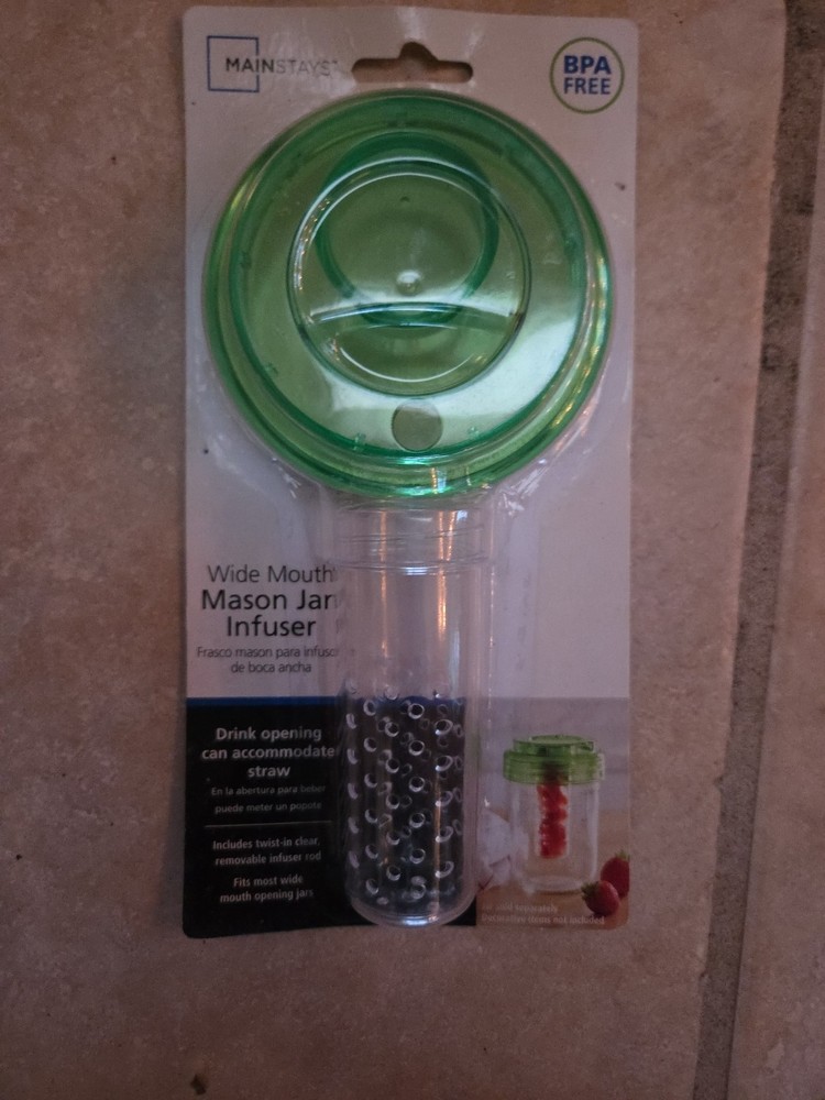 New Wide mouth Mason jar infuser 2 each in lot 1 green and 1 red Reusable plastic. Drink opening for a straw. Use it for infusing flavors into any beverage. Great for rapid aging liquors.