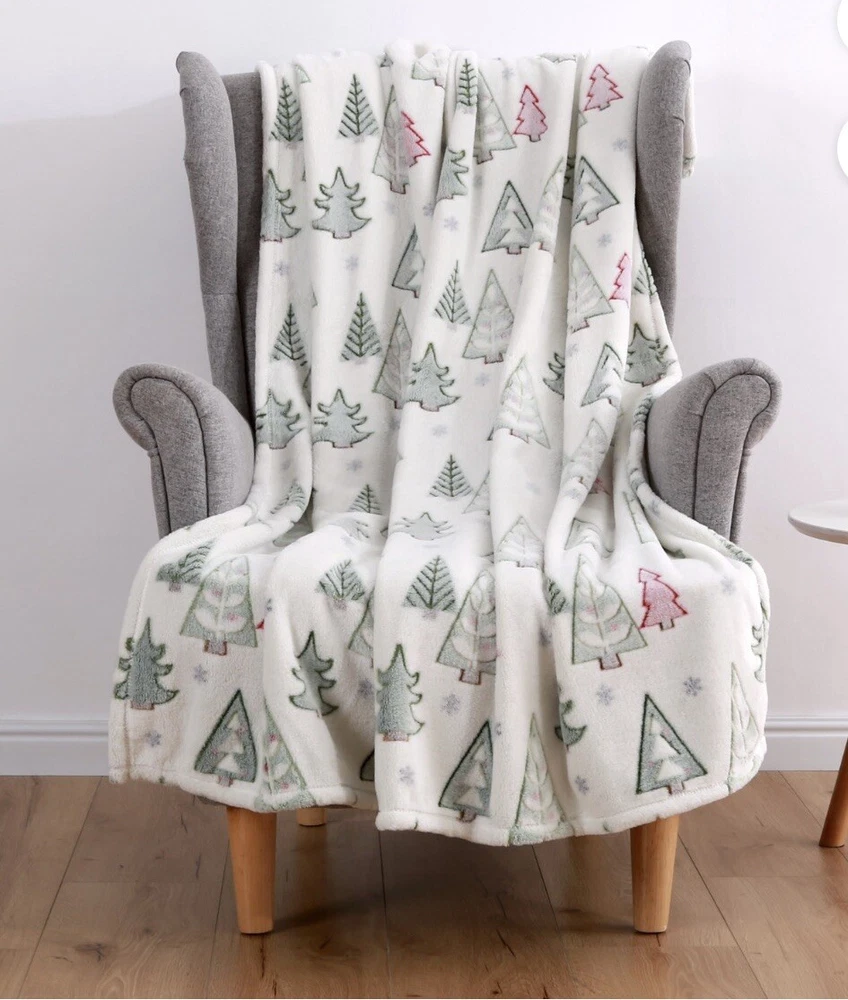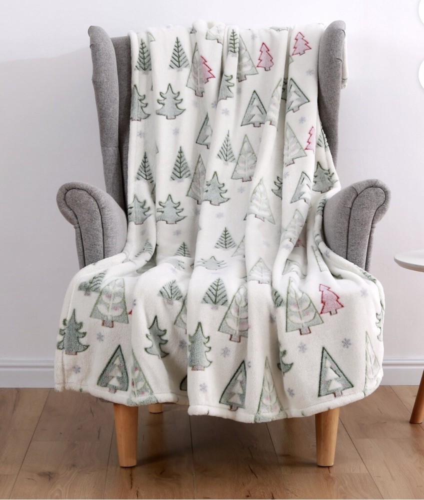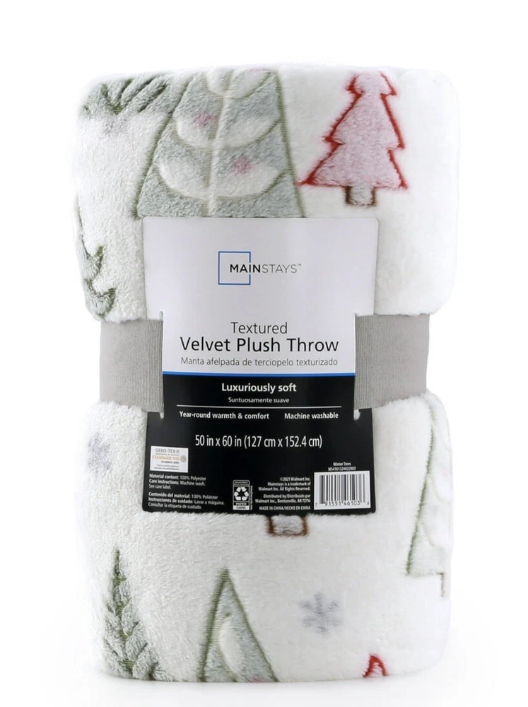 Maintays Plush Throws 50”x 60” Wintertree Holidy Pattern Cozy Velvet Plus Throw....
