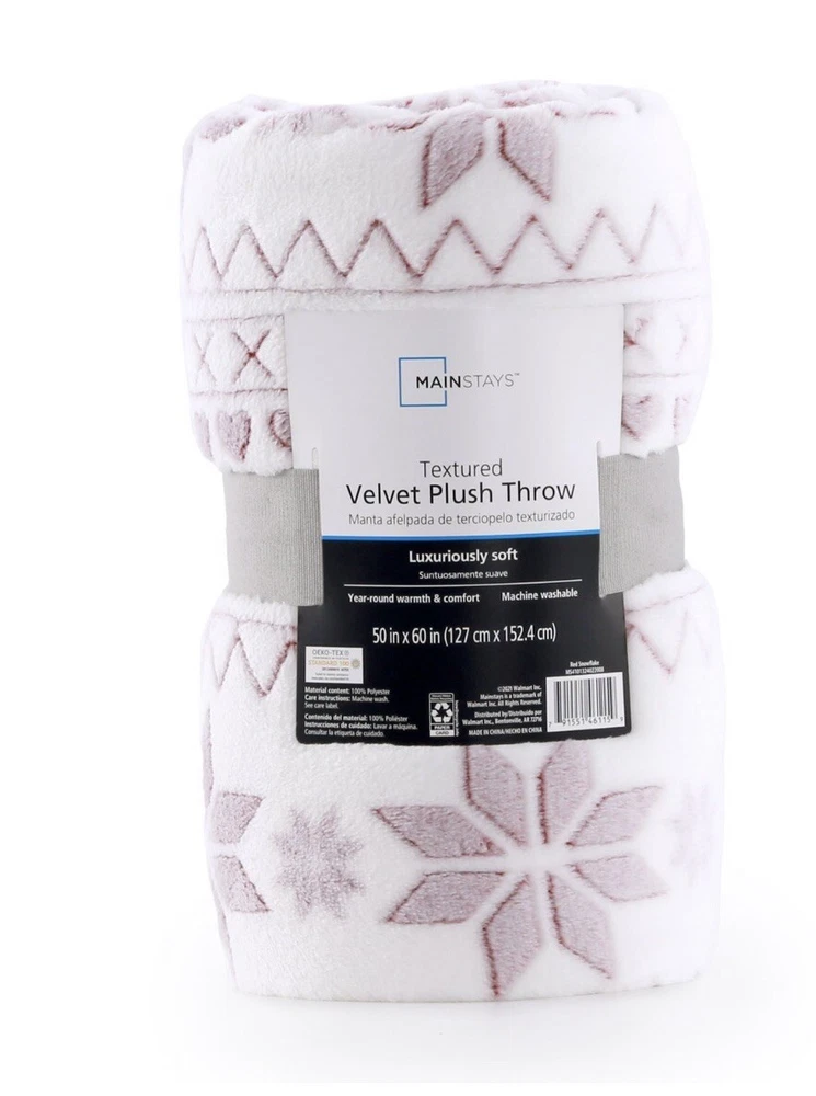 Maintays Textured Plush Throw 50”x 60” Red Snowflake Cozy Winter Throw....
