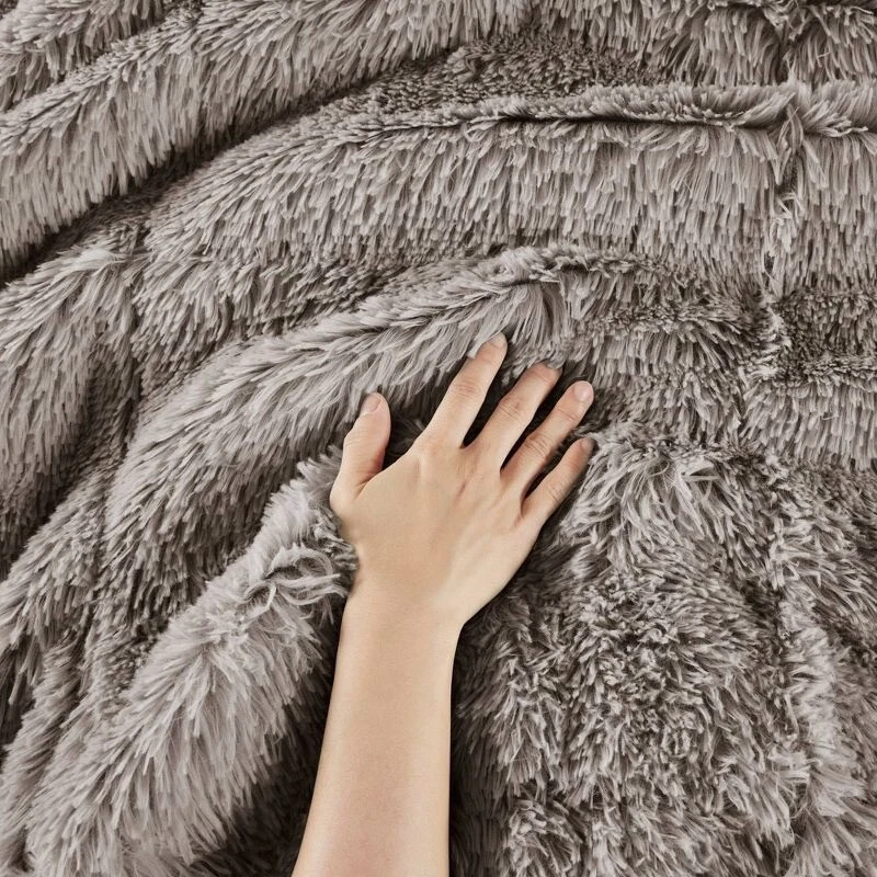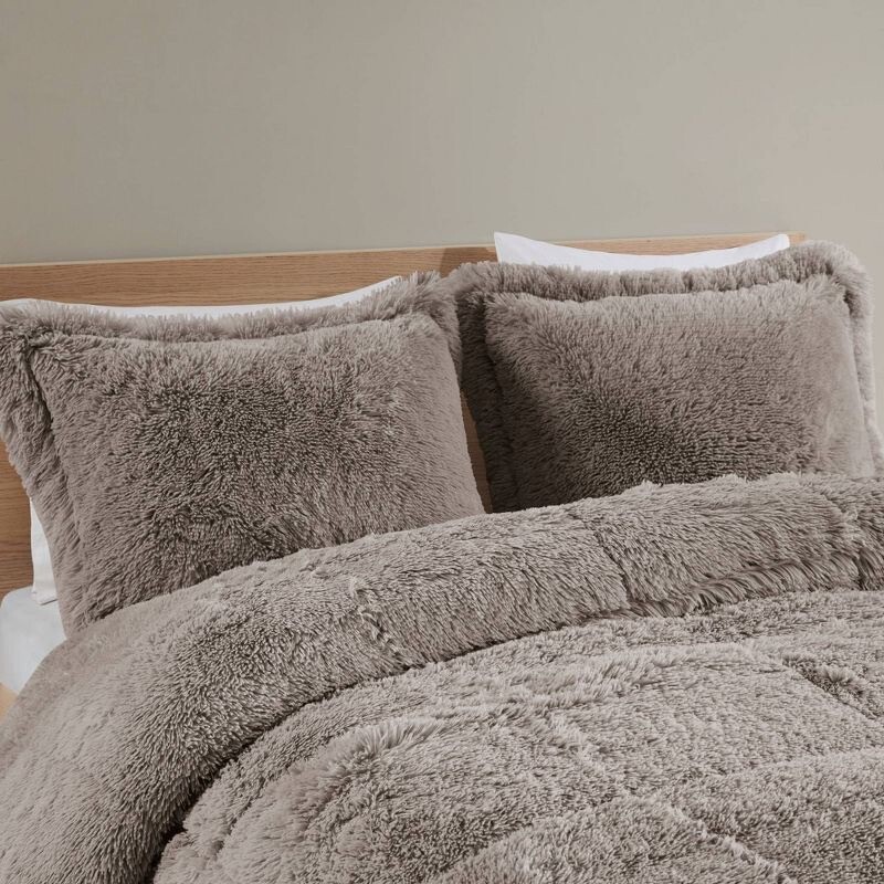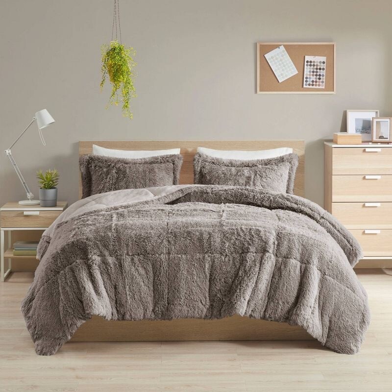 Indulge in the luxurious comfort of the Malea Shaggy Comforter Set. This stunning comforter set features a long faux fur construction that offers a cozy feel. The comforter comes in a beautiful grey color that blends well with any bedroom decor. It is also designed with down alternative features that make it a perfect choice for allergy sufferers. The Intelligent Design brand ensures that the set is made from high-quality faux fur that provides a soft and warm surface for a comfortable sleep. The comforter is available in a King/Cal King size and is suitable for any bedroom. Create a cozy and warm environment in your bedroom with this beautiful comforter set.