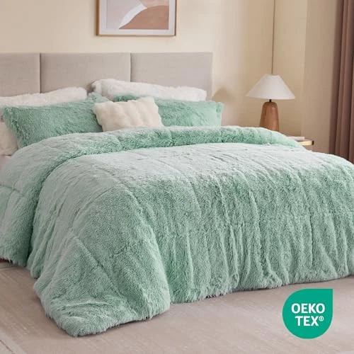 This comforter set is so soft and luxurious—it feels like sleeping in a cozy cloud! The plush faux fur adds a stylish, modern touch to my bedroom, and it’s surprisingly warm yet breathable for year-round comfort. The aqua color is gorgeous, and the matching shams complete the look. Washed beautifully, and the quality is amazing for the price. Super fast shipping too—highly recommend!