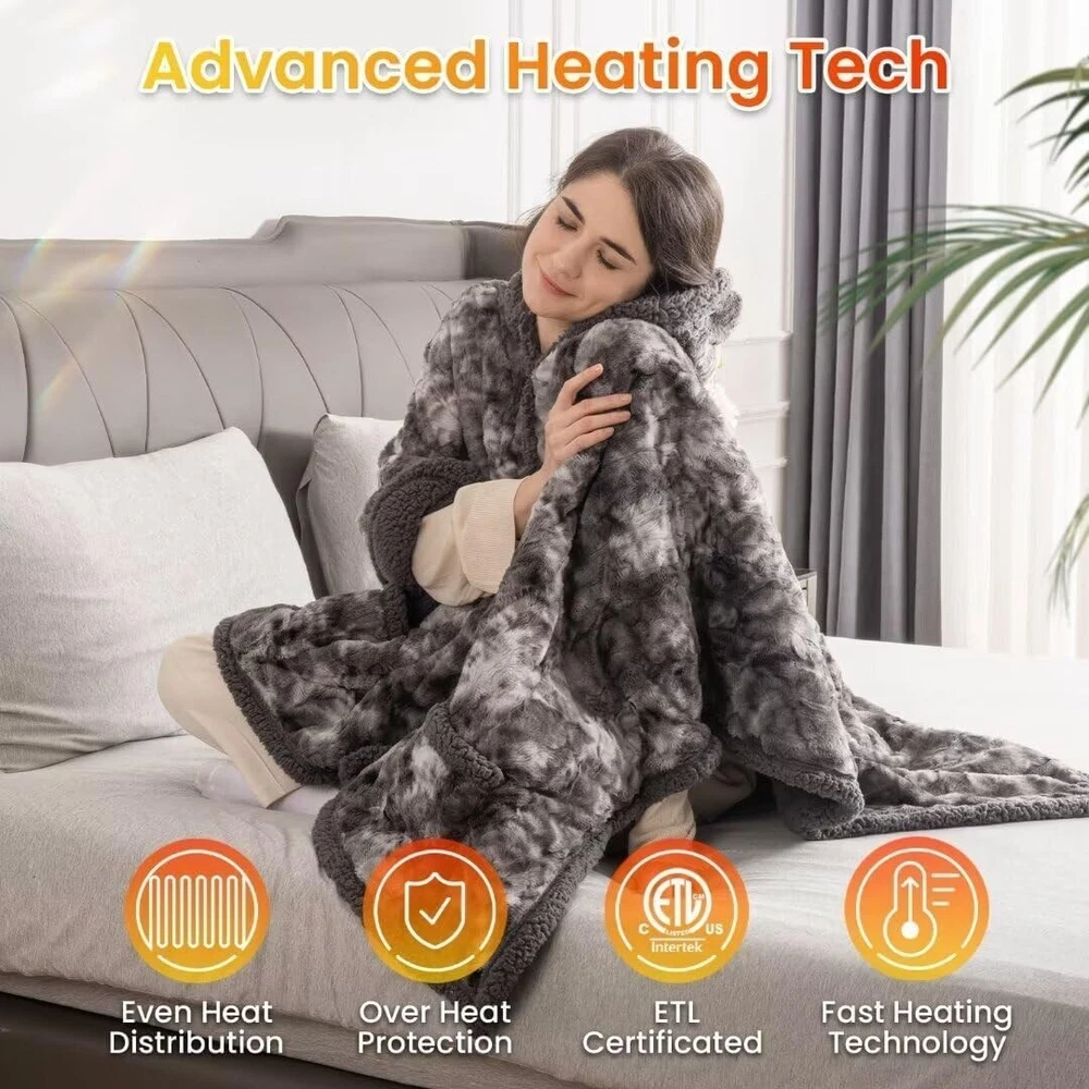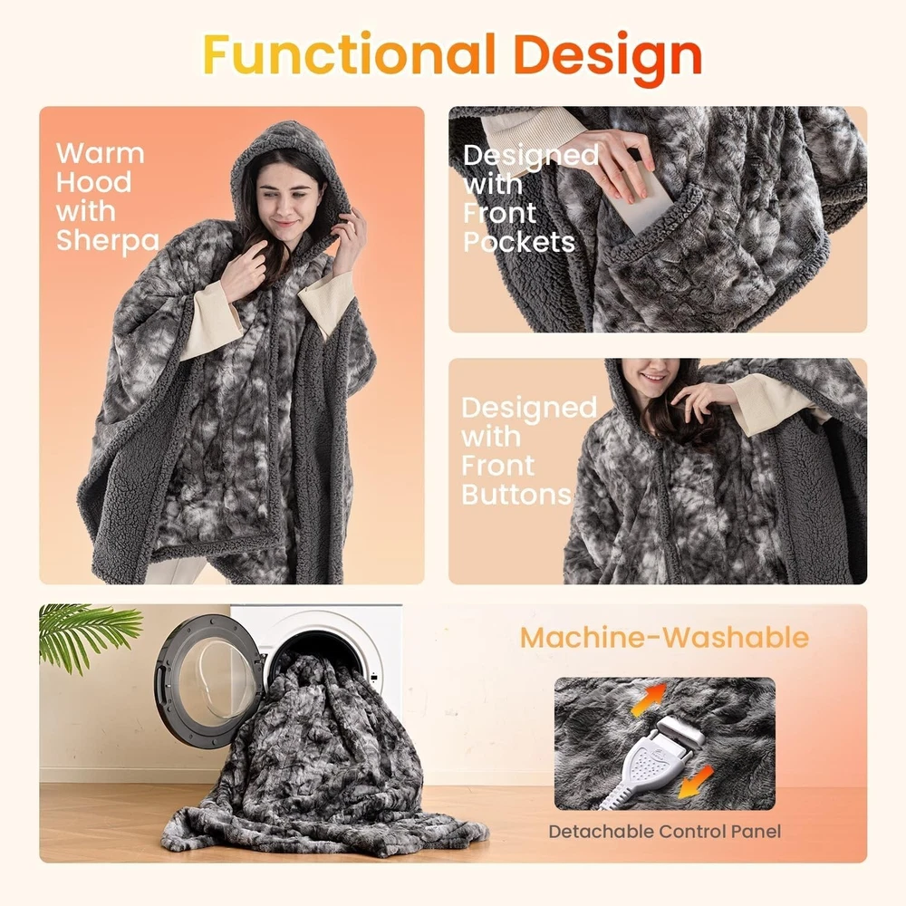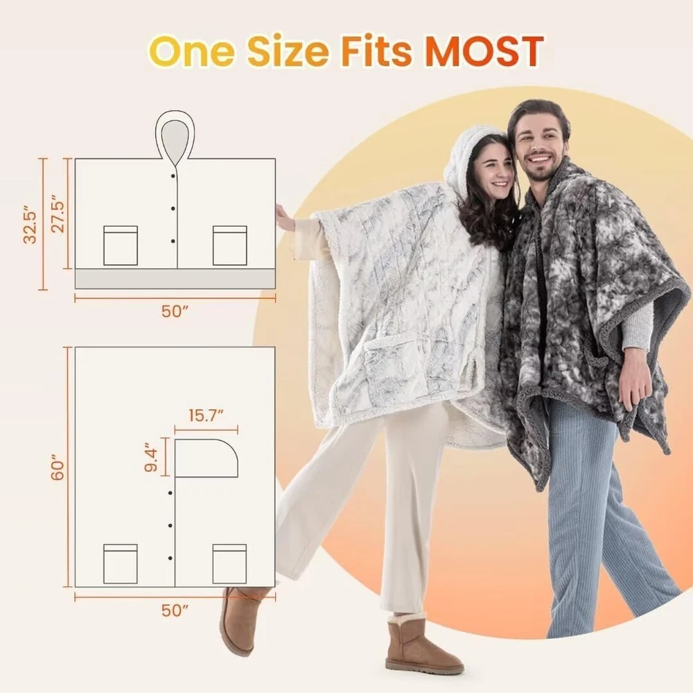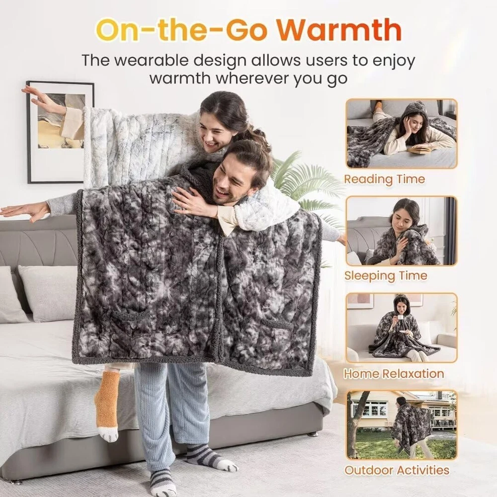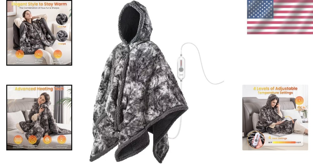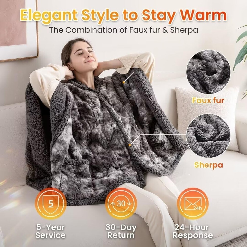 This heated shawl is a game-changer for cold days! The plush faux fur and soft sherpa lining feel incredibly luxurious, while the four heat settings let me customize my warmth. I love the oversized fit—it wraps around me perfectly, and the hood adds extra coziness. The deep pockets are great for keeping my hands warm too. Perfect for relaxing at home or staying toasty outdoors. The battery heats up fast and lasts a long time. Definitely worth it!