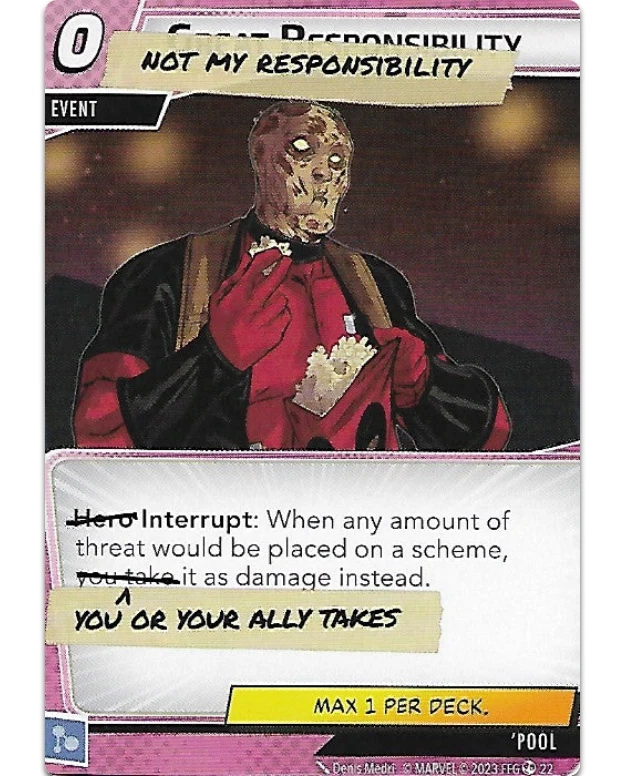 Replacement Event cards in the Aggression, Basic, Justice, Leadership, Pool and Protection aspects for the Marvel Champions LCG. Each card is sold as a single. Whether you are replacing a worn out card or beefing up your card pool, check out our selection of Event cards for frequent restocks.