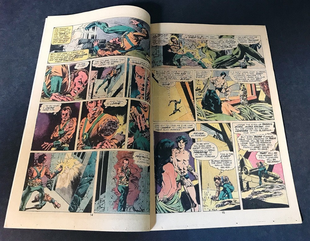 Marvel Comics, Edgar Burroughs, John Carter, Warlord of Mars, #2 JULY, 1997, Very Good+ THE CONDITION OF THIS COMIC BOOK IS — VERY GOOD. (Please see the grading scale I use below). Selling comic books is new to me so please study all the photos carefully to judge their condition for yourself. I am not a professional grader. Unless it is otherwise stated in the description, the comic book is not signed nor is it certified. A free comic book is included with every comic book sale that is $4.99 and up (this does not include the shipping fee, tax or any other miscellaneous charge). If you indicate you would prefer a free general comic book or a comic book for mature readers or a “surprise” comic book, I will do my best to fulfill your request. Free comic books may be bagged and boarded or they may just have a plastic sleeve. It is my belief that a quality product, sold at a fair price, is the way to go. I do not make ANY profit on the mailing costs. My prices are usually less than everyone else and I guarantee you will be happy with your purchase! All comic books (unless stated) have a cardboard backing inside a plastic sleeve. Stock pictures are never used. The photos for each listing will be the actual item you will receive. I ship only within the continental United States. Shipping usually occurs within 24-48 hours after your payment is received. I only accept PAYPAL for payment. I consider all offers. All comic books are stored in a smoke free home. I combine shipping! All comic book sales - be it one comic book or 100 - only costs $5.00! (Unless indicated otherwise.) If you have any questions or if you would like additional pictures, I would be happy to supply them! Near Mint (NM) A near mint comic book is near perfect – almost like new. It should have full, bright colors and gloss and no wear of any kind. The comic book should lie perfectly flat. Very Fine (VF) The comic book still has a sharp look to it with nice bright colors and gloss. It lies flat. It may have a few small stress marks on the spine or the outer edge. No creasing is allowed. Fine (F) The comic book has an attractive look but it can have more defects that the higher grade of VF. It may have 4 or 5 stress lines, a small corner crease, a small edge tear or more general edge wear. No tape or large tears or notable pieces out of the cover allowed. Very Good (VG) A Very Good rated comic book is one that is considered your average handled and read copy. It might have some noticeable wear on the spine and edges as well as some noticeable creasing on the cover. Also, it could have a one inch tear or less. A small piece of tape on or inside the cover is allowed. The comic book might have some light soiling or staining. A slightly rolled spine is permitted. Good (G) Though a rating of Good is similar in many ways to a VG, it may have more severe or numerous defects. It could have a piece (but not too large a piece) out of the front or back cover. Fair (F) Comic books that are rated to be Fair are usually rough but are still a complete copy. It may have lots of tape on the cover, or tears, or pieces out of cover. Other permitted characteristics are staining, soiling and excessive wear.