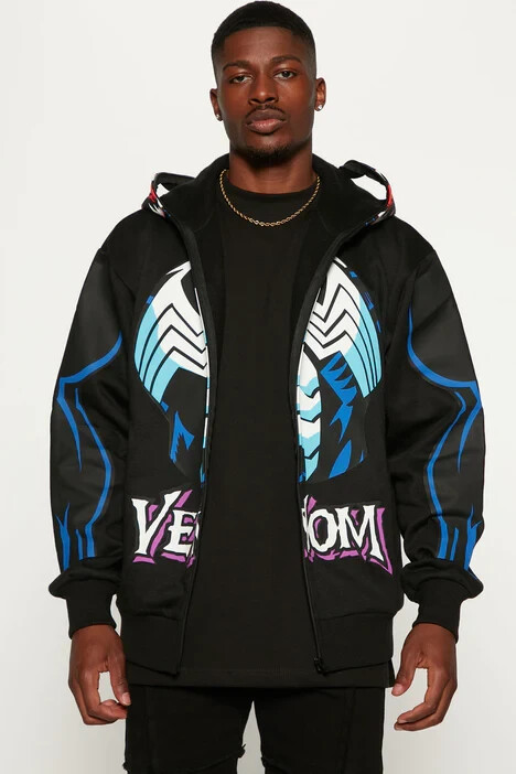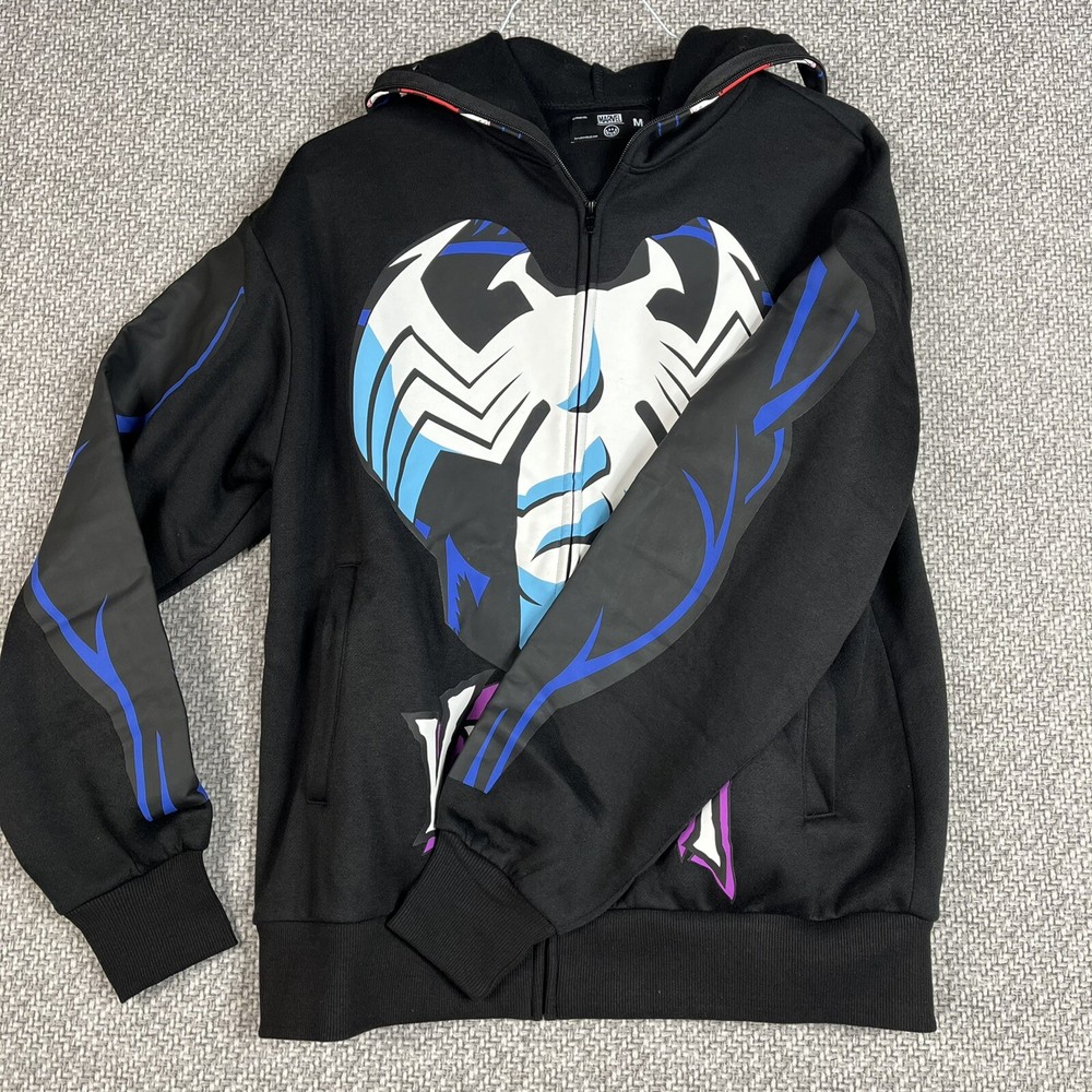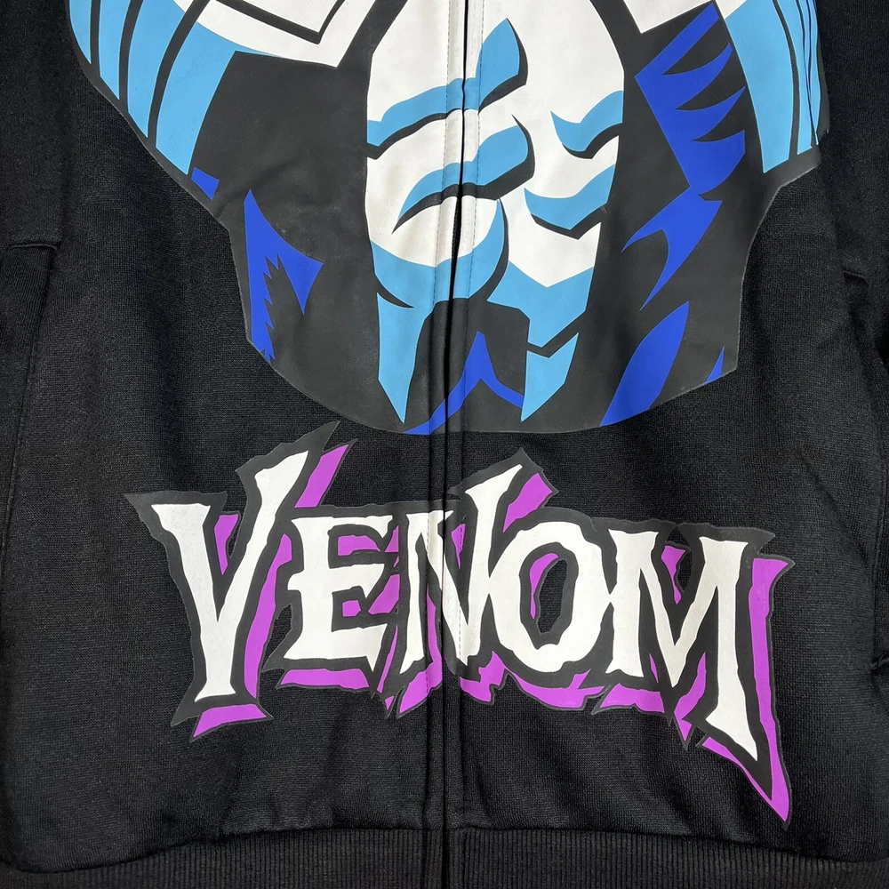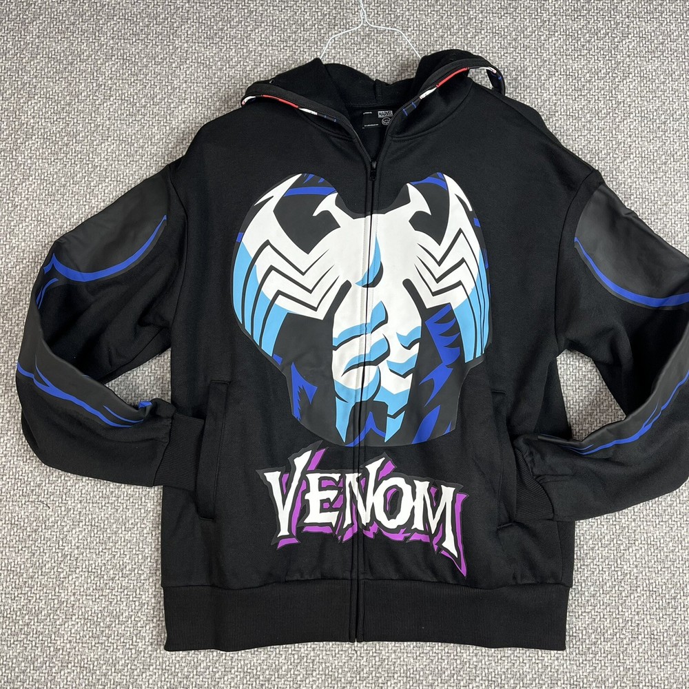 Marvel Venom Zip Up Hoodie Over The Face Mask - Black Men's Large - Halloween Crew Neck Long Sleeve Screen Print Disclaimer: Due To The Specialized Dye And Printing Process A Difference In Saturation May Occur. Each Garment Is Unique 100% Polyester