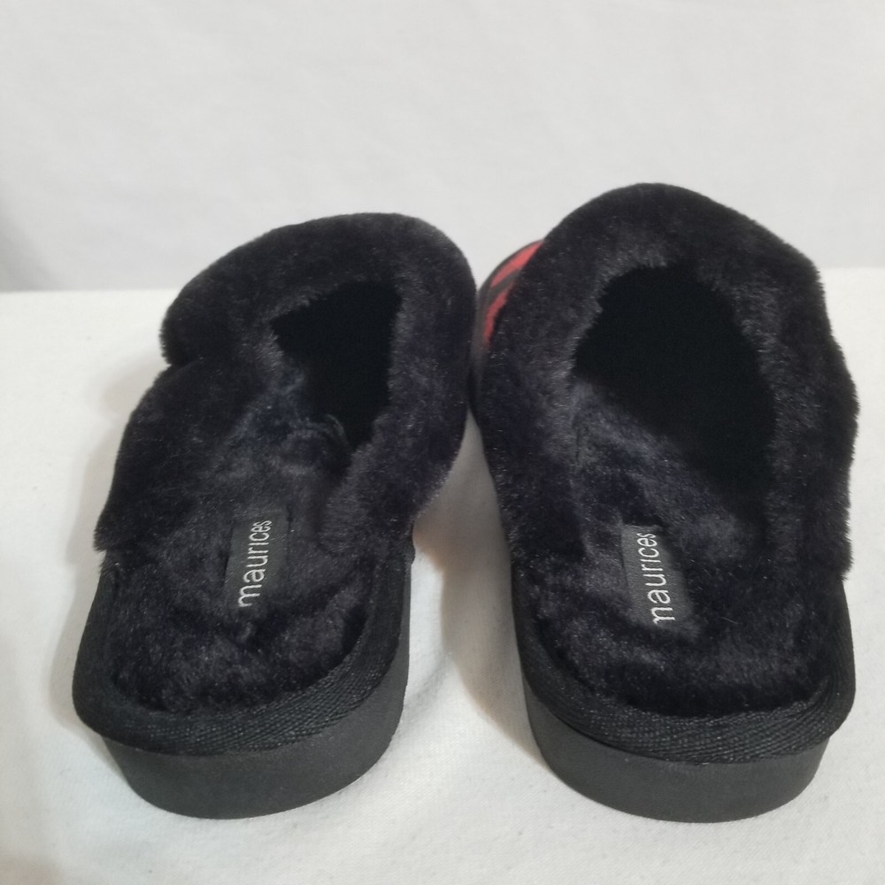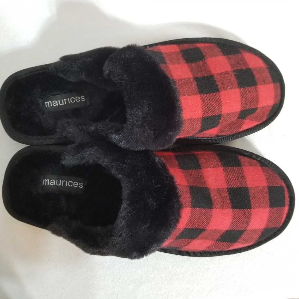 The Maurices Women's 9M Red and Black Plaid Slides Slippers are a stylish and comfortable slip-on option for women. Featuring a plush sole for added warmth, these slippers have a rubber outsole for traction. The red and black plaid pattern adds a fun and cozy touch, making them perfect for casual wear in any season. With a closed toe design and faux fur accents, these slippers from Maurices are a fashionable and cozy addition to any woman's wardrobe.
