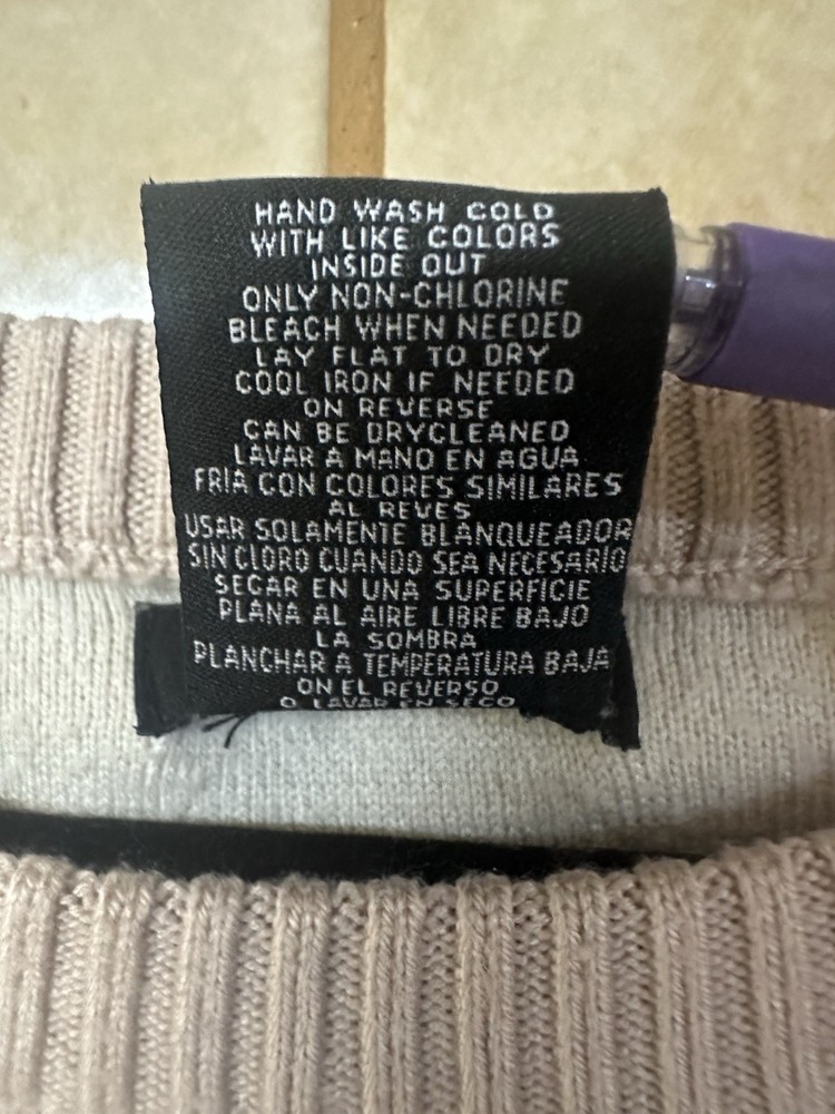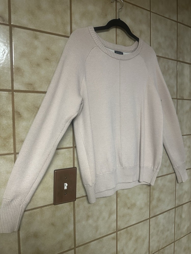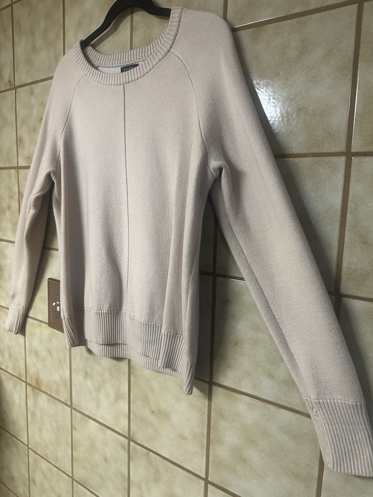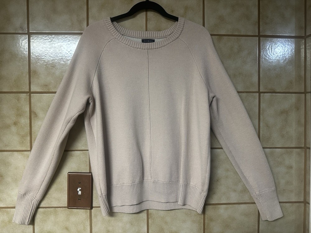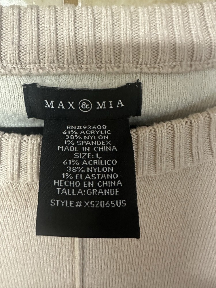 The Max & Mia Women’s Thick & Cozy Long Sleeve Sweater in Tan, Size Large, is a stylish and comfortable sweater perfect for casual occasions. Made with a pullover closure and raglan sleeves, this sweater is designed for easy wear and a regular fit. The solid brown color and basic style make it versatile for a variety of outfits, while the hand wash only care instruction ensures long-lasting durability. With the Max & Mia brand known for quality and charm, this sweater is a great addition to any woman's wardrobe. Chest is 21 inches flat at armpits and length is 25 inches from shoulder.