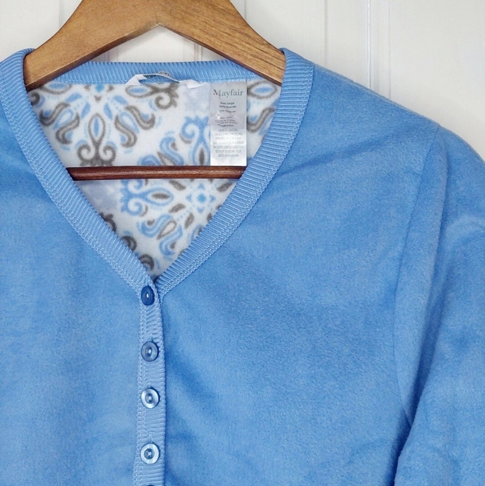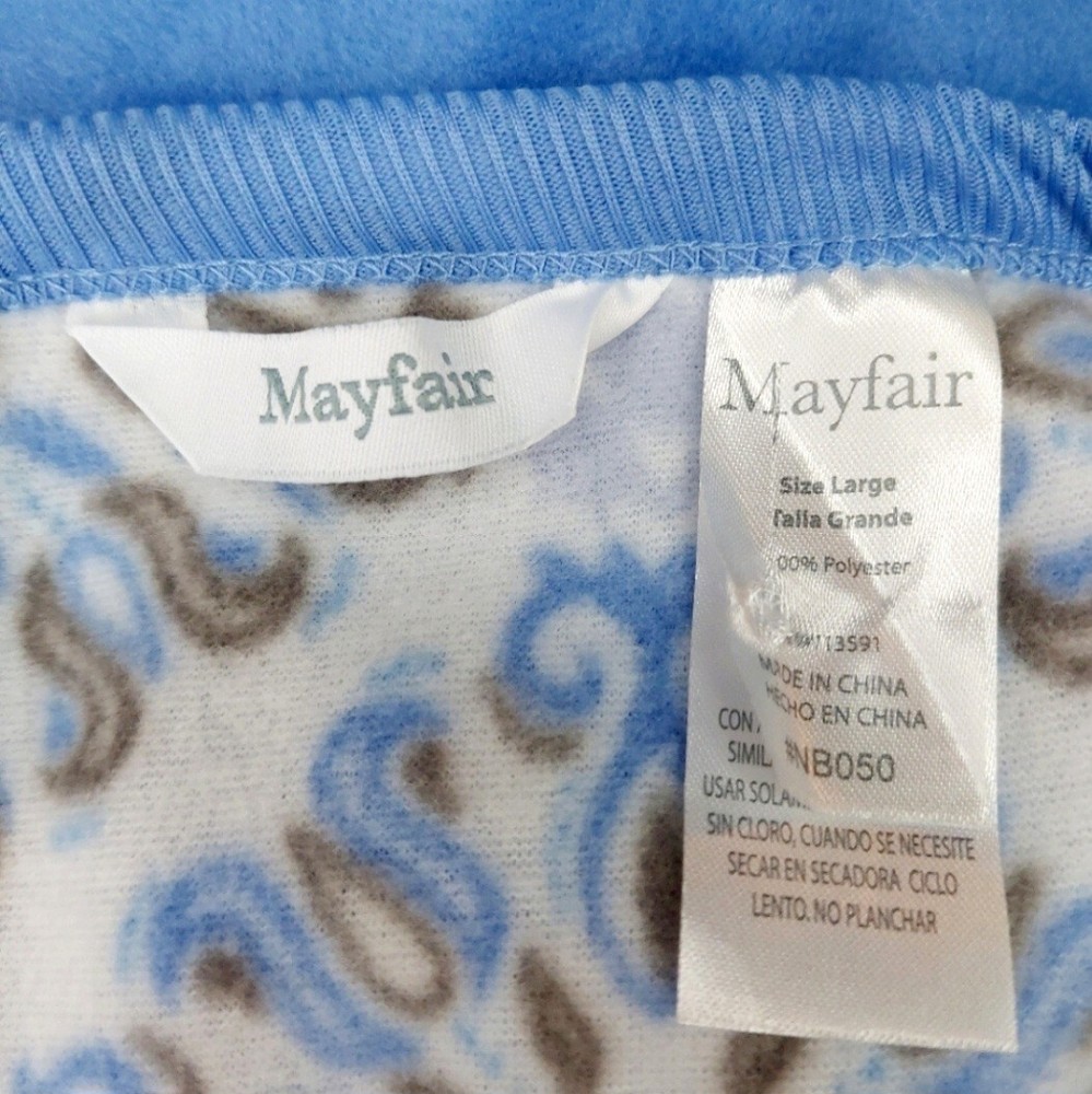 This comfy and cozy blue pajama top will keep you warm in chilly Fall and Winter weather! Mayfair by Seven Apparel's signature micro fleece fabric wraps you in velvety softness while you sleep or lounge around the house. Classic relaxed fit. Please Note: Micro fleece top only. Pajama pants not included. Brand: Mayfair by Seven Apparel Color: Blue Pattern: Solid Size: Large Materials: 100% Polyester Made in China Measurements: - Pit-to-pit: 21" - Shoulder width: 16" - Sleeve length: 23 1/2" - Length: 27" ๐ฆ๐ต๐ผ๐ฝ ๐๐ถ๐๐ต ๐ฐ๐ผ๐ป๐ณ๐ถ๐ฑ๐ฒ๐ป๐ฐ๐ฒ! ๐ฃ๐ฟ๐ผ๐ณ๐ฒ๐๐๐ถ๐ผ๐ป๐ฎ๐น ๐ฟ๐ฒ๐๐ฒ๐น๐น๐ฒ๐ฟ ๐๐ถ๐๐ต ๐ฎ๐ฑ+ ๐๐ฒ๐ฎ๐ฟ๐ ๐ผ๐ณ ๐ฒ๐ ๐ฝ๐ฒ๐ฟ๐ถ๐ฒ๐ป๐ฐ๐ฒ. ๐ฃ๐ฎ๐ฐ๐ธ๐ฎ๐ด๐ฒ๐ฑ ๐๐ถ๐๐ต ๐ฐ๐ฎ๐ฟ๐ฒ - ๐๐ฎ๐๐ ๐๐ต๐ถ๐ฝ๐ฝ๐ถ๐ป๐ด! ๐๐๐ป๐ฑ๐น๐ฒ & ๐ฆ๐ฎ๐๐ฒ, ๐๐๐ ๐ข๐ณ๐ณ๐ฒ๐ฟ๐ ๐ช๐ฒ๐น๐ฐ๐ผ๐บ๐ฒ! - Item is brand new with tags and has never been worn before. - Everything ships from a SMOKE-FREE & PEST-FREE environment already cleaned, sanitized, and ready to wear! #WPJ0001 7.1 oz