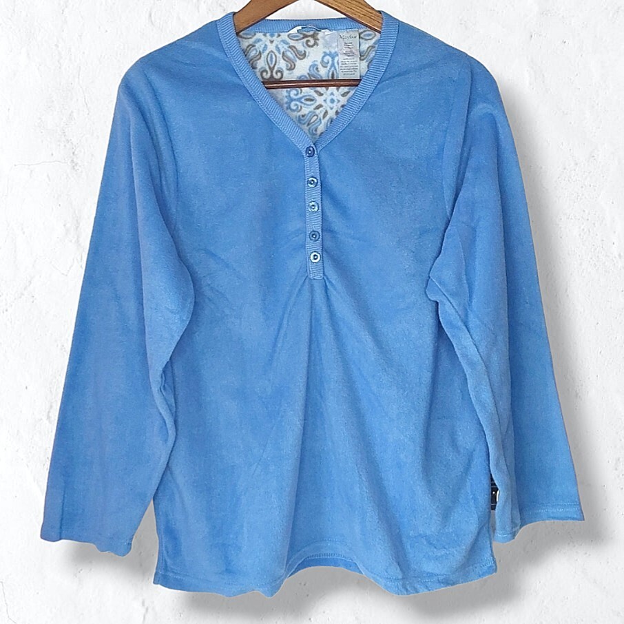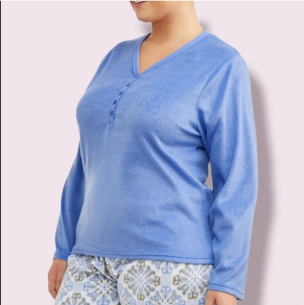 This pajama top is incredibly soft and warmโperfect for chilly nights! The micro fleece feels luxurious against the skin, and the relaxed fit makes it super comfortable for lounging or sleeping. The blue color is rich, and the quality is excellent for the price. Washes well without pilling. Love that itโs lightweight yet cozyโdefinitely a winter must-have!