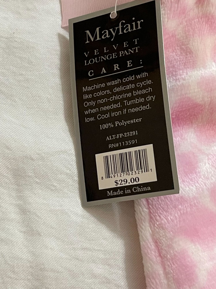 NWT Mayfair Velvet Lounge Pants Size L Geometric Design Super Soft