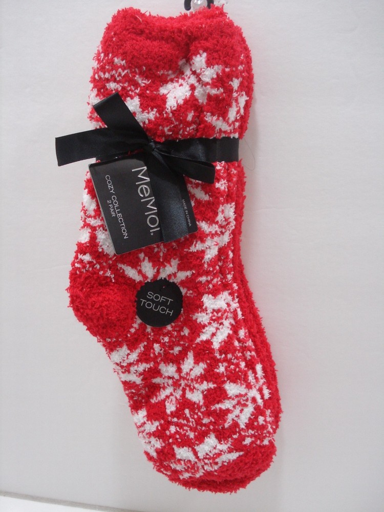 BRAND NEW ITEM.....GET YOURS TODAY....!!!!!! ♥ Product Description ♥ MeMoi Plush Socks - Women's Slip into these soft and comfortable plush socks and treat your feet! Two-pair pack features one snowflake print and one solid pair. Fits most women's shoe sizes. 98% polyester, 2% spandex Fits most women's shoe sizes Machine wash Women's ♥ Shipping ♥ Items ship within 1 business day upon receipt of payment. Shipping charges are based on rates provided by USPS. We will happily combine shipping on purchases made on the same invoice. ♪ International Buyers: Import duties and charges are not included in the item price or shipping costs. These charges are the buyers responsibility. Please check with your country’s customs office to determine what additional costs will be prior to making your purchase.