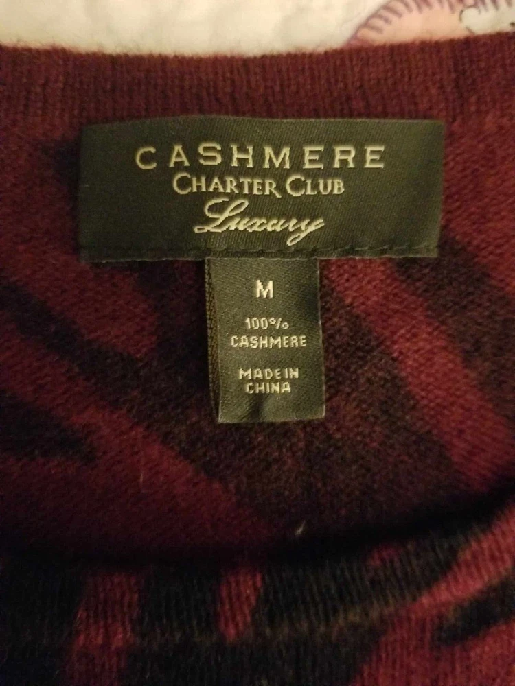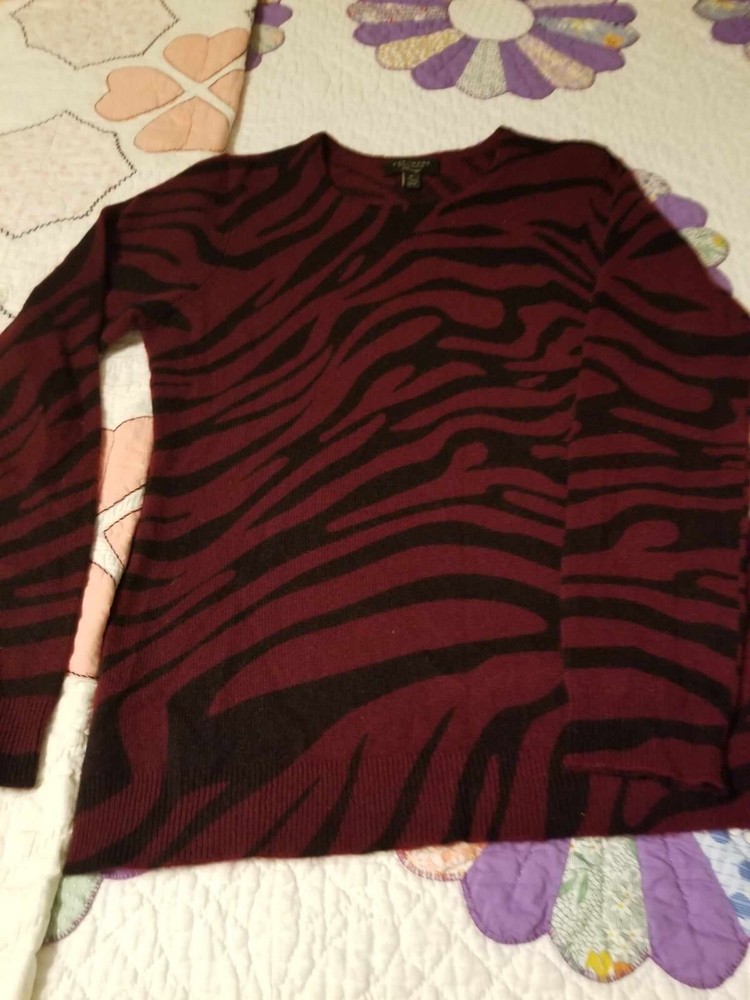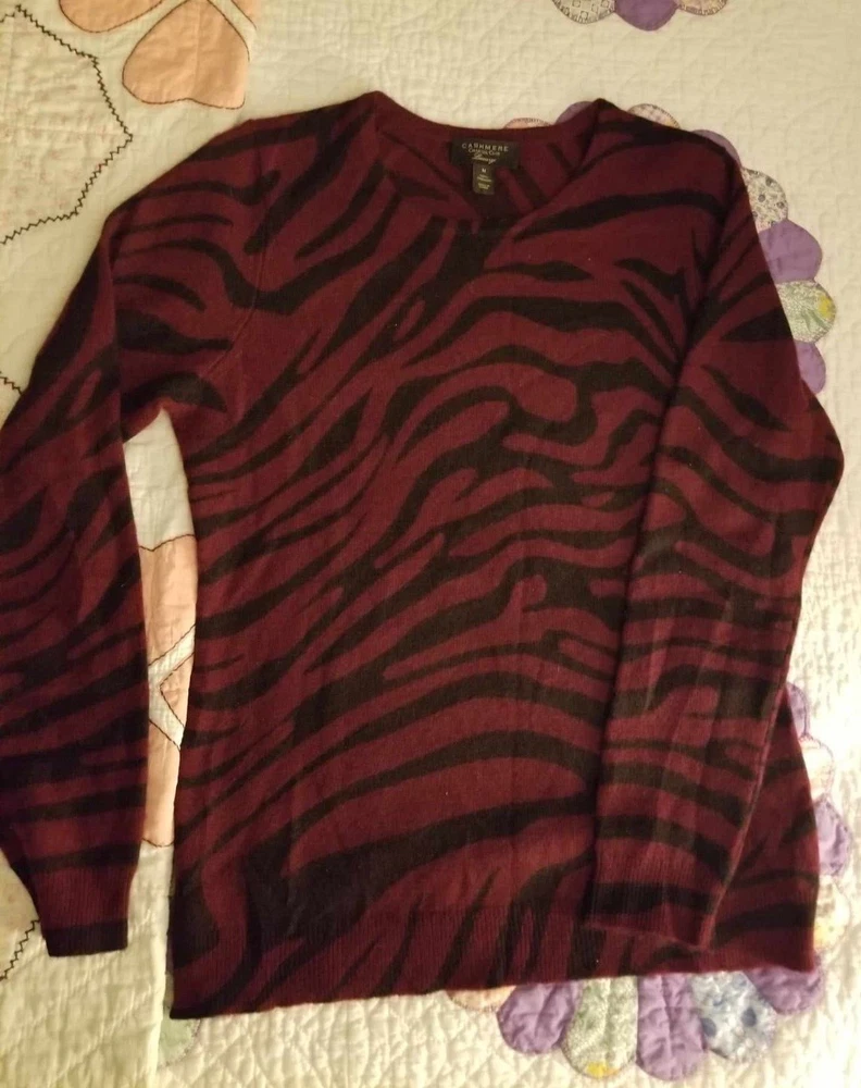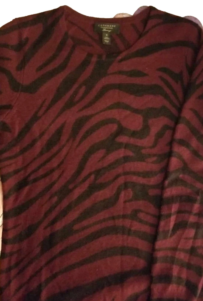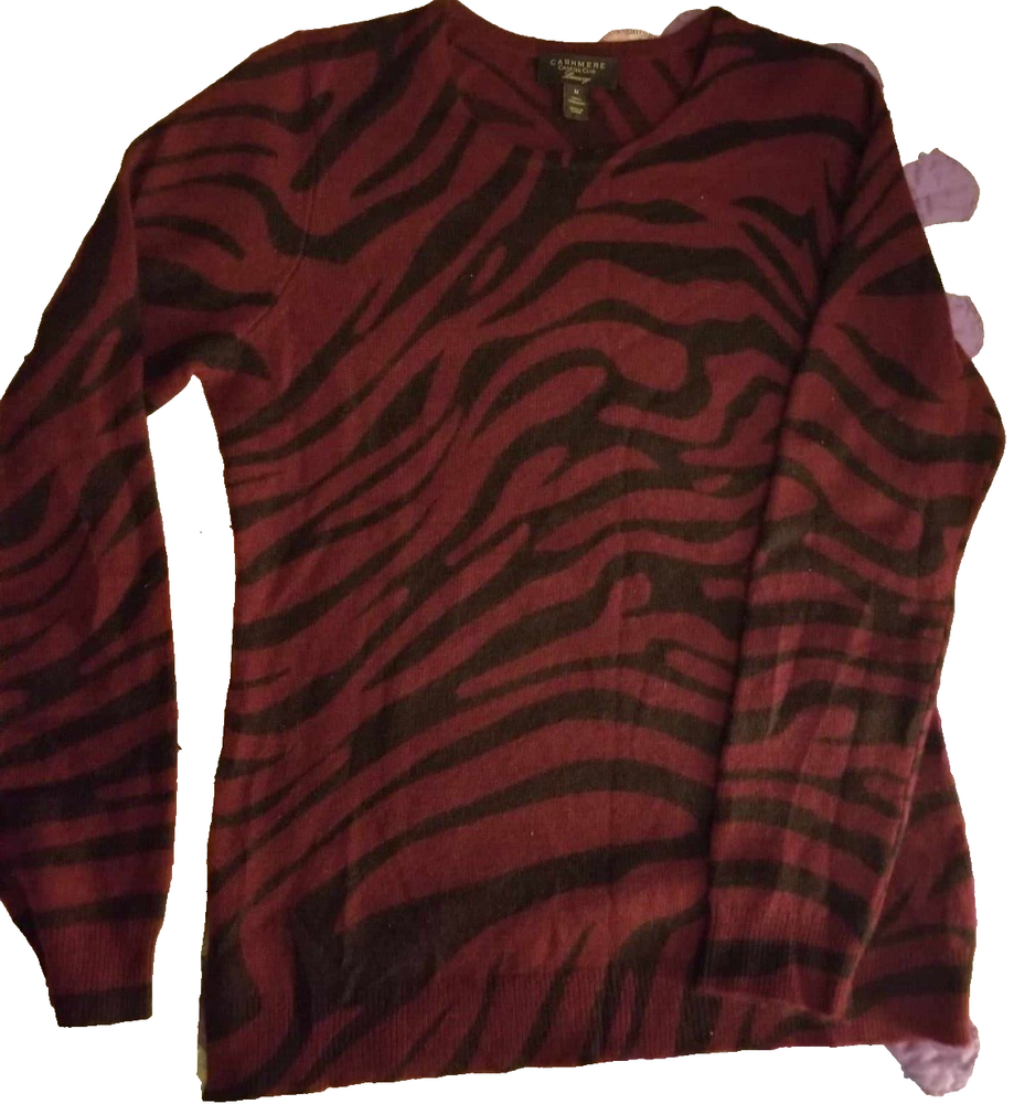 Beautiful Cashmere Sweater Soft and cozy that goes easily from casual day to classic evening wear with ease Women's Med Lovely Burgundy & Black Sweater color is darker than most photos The photos were very difficult to get color correct 2nd photo is representative of actual color Approx measurements: Chest (Measured from underarm to underarm): 38" Sleeve Length (Underarm to bottom of sleeve): 19" Length of back from bottom edge of turtleneck to bottom of hem: 24" No return on clothing or shoes as I can not resell items that may have been worn and then returned to me ATTENTION TO AK, HI & PROTECTORATES: If buying for shipment to Alaska, Hawaii or protectorates shipping will not increase to you if it is not excessive. I am not going to pass the extra cost on to you if it means a small loss to me. I will contact you if you need to send extra shipping amount. At that time you can decide to cancel order if you want. From a smoke free home