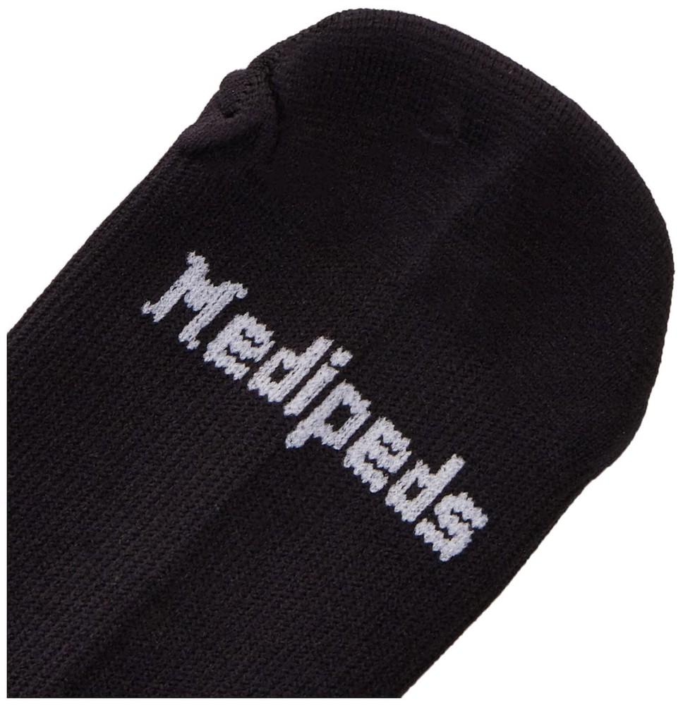Description Medipeds Mens 4 Pack Mild Compression Over The Calf Socks Machine wash Graduated fit provides all-day support and helps relieve swelling and tired, aching legs LYCRA fiber hugs your foot for perfect fit Massages and energizes tired, achy, and heavy feeling feet and legs Smooth toe seam reduces pressure points