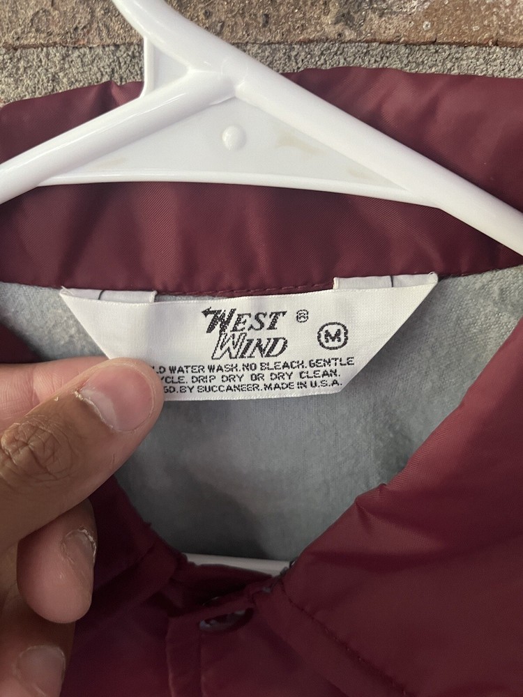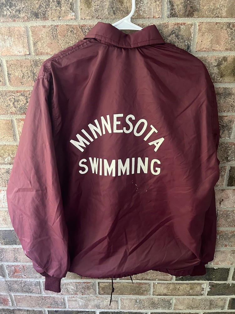 This vintage bomber jacket from West Wind is a must-have for any 90s enthusiast. Made in the USA, this jacket features a solid red nylon outer shell and snap closure. The medium size and regular fit make it perfect for men, with a classic bomber jacket style that never goes out of fashion. Packed with features like lightweight material, all-season wearability, and multiple pockets, this jacket is a versatile addition to any wardrobe. Whether you're a collector of vintage clothing or just looking for a statement piece for your next outfit, this Minnesota National Junior Olympic bomber jacket is sure to turn heads.