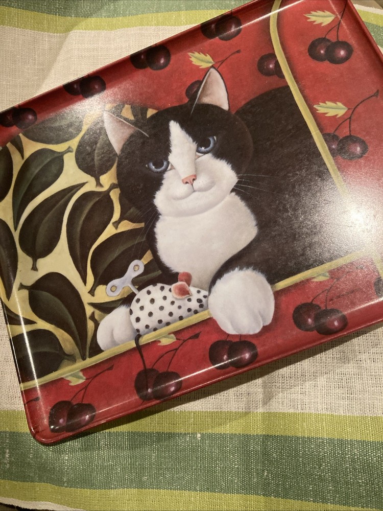 Wow great pattern cat with polka dot wind up mouse cherries in background and Estate treasure