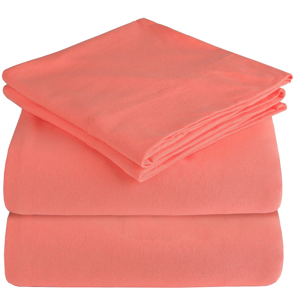 Inner Bed Sheet Sets & Sheets Duvet Cover Sets Bed Pillows & Pillowcases Mattress Protectors Bedspread Coverlet Sets Discounts Mellanni Jersey Cotton Sheets w/ Deep Pockets, T-Shirt Knit Bed Set (4-Piece) Product Description Reminiscent of your favorite T-shirt, these lightweight Mellanni sheets are made of 100% jersey-knit cotton to provide incomparable comfort. Available in an array of classic and calm colors, this breathable set brings a relaxed, casual look to your space. Inner Inner Inner Inner Inner Reminiscent of your favorite T-shirt, these lightweight Mellanni sheets are made of 100% jersey knit cotton to provide incomparable comfort. Available in an array of classic and calm colors, this breathable set brings a relaxed, casual look to your space. Manufactured in an OEKO TEX Certified Factory, ensuring Mellanni Sheets meet high safety and environmental standards Get softer with every wash and feel like sleeping in your favorite T-shirt Deep pocket fitted sheet with elastic all around ensures a perfect fit Durable, wrinkle- and fade resistant so you know it will last many washes Breathable, soft and remarkably cozy due to its natural material and jersey knit Perfect for any season - they'll keep you warm on сold nights and cool on warm nights Come in environmentally friendly cardboard packaging Machine washable and easy to care for: machine wash cold, tumble dry low SIZE GUIDE Twin size Bed Sheet Set includes 3 pieces: 1 Flat sheet 66" x 96" 1 Fitted sheet 39" x 75" 1 Pillowcase 20" x 30" Full size Bed Sheet Set includes 4 pieces: 1 Flat sheet 81" x 96" 1 Fitted sheet 54" x 75" 2 Pillowcases 20" x 30" Queen size Bed Sheet Set includes 4 pieces: 1 Flat sheet 90" x 102" 1 Fitted sheet 60" x 80" 2 Pillowcases 20" x 30" King size Bed Sheet Set includes 4 pieces: 1 Flat sheet 102" x 105" 1 Fitted sheet 78" x 80" 2 Pillowcases 20" x 40" PRODUCT IMAGES: We seek to make product images as accurate as possible, but things like colors can vary depending on your device and screen settings. Please contact us if you have questions about specifics before placing your order. Pattern: Solid Shape: Rectangular Material: Cotton MPN: Not Applicable Set Includes: Flat Sheet, Fitted Sheet, Pillow Cases Item Length: 80 in Brand: Mellanni Department: Adults Type: Sheet Set Care Instructions: Machine wash cold, tumble dry low GSM (Grams per Square Meter): 150 to 300 Labels & Certifications: STANDARD 100 by OEKO-TEX Shipping Payment Returns Questions? Standard shipping is FREE for all items shipped within the United States. All orders are processed within 1-3 business day. Orders placed after 2 pm (EST) will be accepted for processing the following business day. Orders placed on weekends will be accepted for processing the next business day. Mellanni gladly accepts Visa, MasterCard, American Express and Discover through PayPal only. Payment must be received immediately for the order to be processed. Every Mellanni product you purchase directly from our Official eBay Store is covered by our famous Lifetime Satisfaction Warranty. If any item does not meet your expectations, you may return it within 30 days for an immediate replacement or 100% of your money back, guaranteed. All Mellanni Fine Linens products ordered directly from our Official Store are brand new. The Mellanni Team works hard to adhere to the industry’s highest standards of quality, and each individual product undergoes rigid testing at our in-house Quality Control Center. If any aspect of your ordering experience is not seamless and enjoyable, please contact us and our team will work with you to ensure you’re completely satisfied. Kindly note that due to differences in computer monitors, there may be a slight difference in color between the actual product and what you see on your screen. Have questions or comments? We would be happy to hear from you! Here at Mellanni, we pride ourselves on having the best customer service in the industry. Our friendly support team is always happy to help guide you through the buying process, discuss an order, or process a return to ensure you are 100% satisfied with any product purchased from us. Contact us anytime through eBay messages, and we will reply as soon as possible! We hope you will love your purchase, however if you need to return it, we have a 60 day return policy. We hope you will love your purchase, however if you need to return it, we have a 60 day return policy. We hope you will love your purchase, however if you need to return it, we have a 60 day return policy. We hope you will love your purchase, however if you need to return it, we have a 60 day return policy. Mellanni Sheet Set Microfiber Extra Deep Pocket up to 21" Mattress 4 Piece $42.15 Mellanni 4-Piece Bed Sheet Set- Deep Pocket, Wrinkle, Stain Resistant Microfiber $20.07 Mellanni Heavy Flannel Sheet Set 180GSM, Deep Pocket 100% Cotton Sheets $46.84 Mellanni 100% Cotton Flannel Sheet Set w/ Deep Pockets, Breathable & Warm 160GSM $49.97 Mellanni Fitted Sheet Microfiber Extra Deep Pocket Up To 21" Deep Mattress $16.47 Mellanni 100% Cotton 400 Thread Count Bed Sheet Set, Deep Pockets. 4-Piece $46.84 Mellanni 100% Flax Linen Bed Sheet Set - Luxury Soft and Lightweight $149.97 Mellanni 6-Piece Bed Sheet Set- Deep Pocket, Wrinkle, Stain Resistant Microfiber $35.59 Mellanni Sheet Set Floral Print Deep Pocket Microfiber - Paisley Blue/Gray $27.99 Mellanni 1 FLAT SHEET ONLY Iconic Collection Microfiber Single Top Sheet $11.97 Mellanni 4-Piece Bed Sheet Set STRIPED - Deep Pockets, Wrinkle Resistant $28.79 Mellanni 4-Piece Bed Sheet Set, Deep Pocket, Wrinkle, Stain Resistant Microfiber $34.97 eBay listing template by 3D sellers.com - Try for Free!