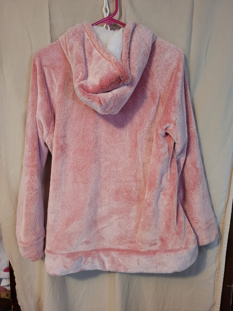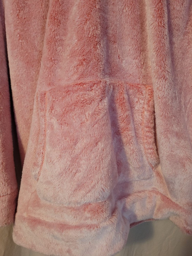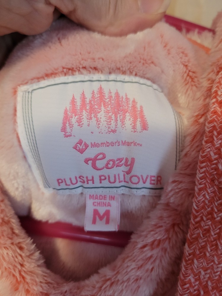 This Members Mark Cozy Plush Pullover in Women's M is the perfect addition to your wardrobe. The light pink hoodie is made of 100% polyester with a velour fabric type, making it super soft and comfortable to wear. The pullover has a V-neckline, raglan sleeves, and a hood with pockets for added convenience. It is machine washable and easy to care for. The hoodie is suitable for all seasons, including winter, summer, fall, and spring. The garment care is simple, and the hoodie is made in China. The pullover is a great choice for anyone looking for a comfortable and stylish hoodie. Chest measures 22" and is 26" top to bottom.
