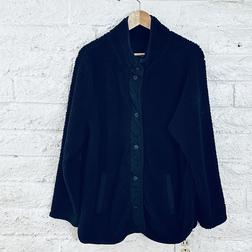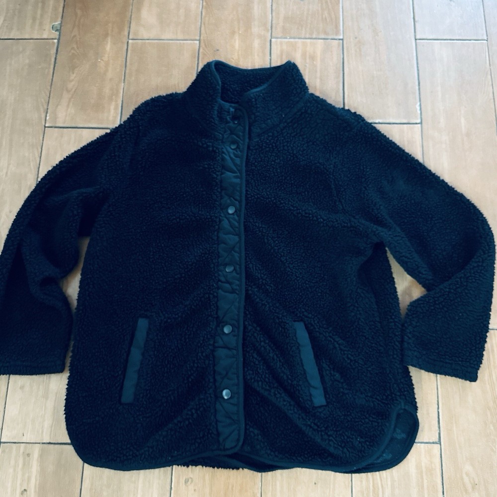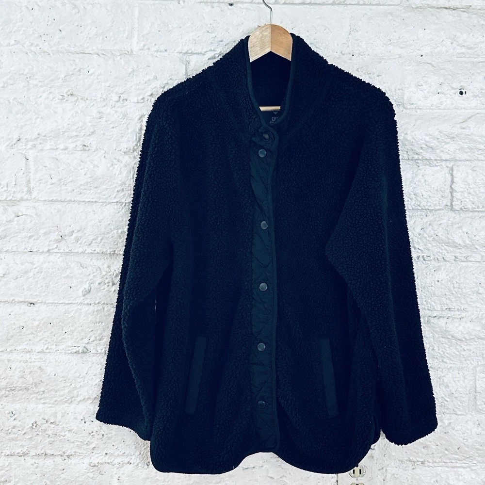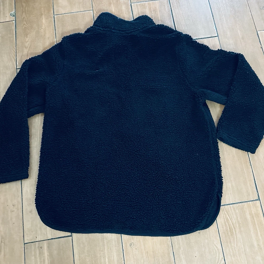 Stay cozy and stylish in this black Sherpa pullover sweater, perfect for any occasion. Made for women in size 2XL, this sweater features a comfortable and regular fit. The sleek design and pullover style make it easy to wear, while the brand's reputation for quality ensures that it will last. Ideal for any casual outing, this sweater is versatile and fashionable. Its classic black color makes it easy to pair with any outfit, while the warm and cozy material will keep you feeling comfortable all day long. Don't miss out on this must-have addition to your wardrobe.