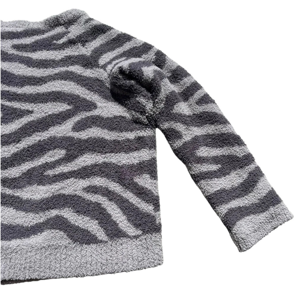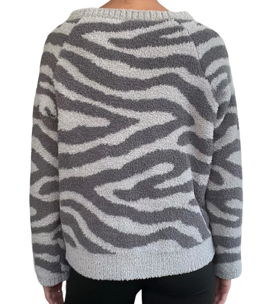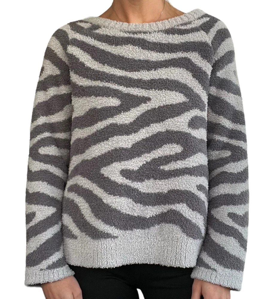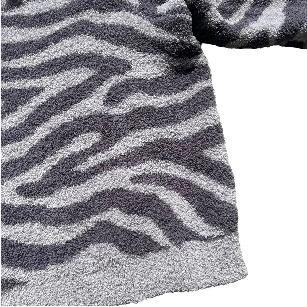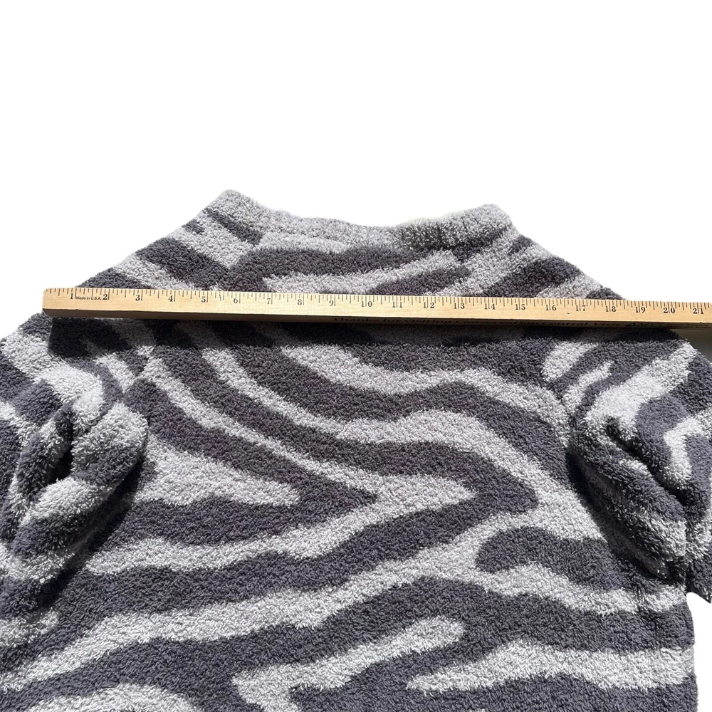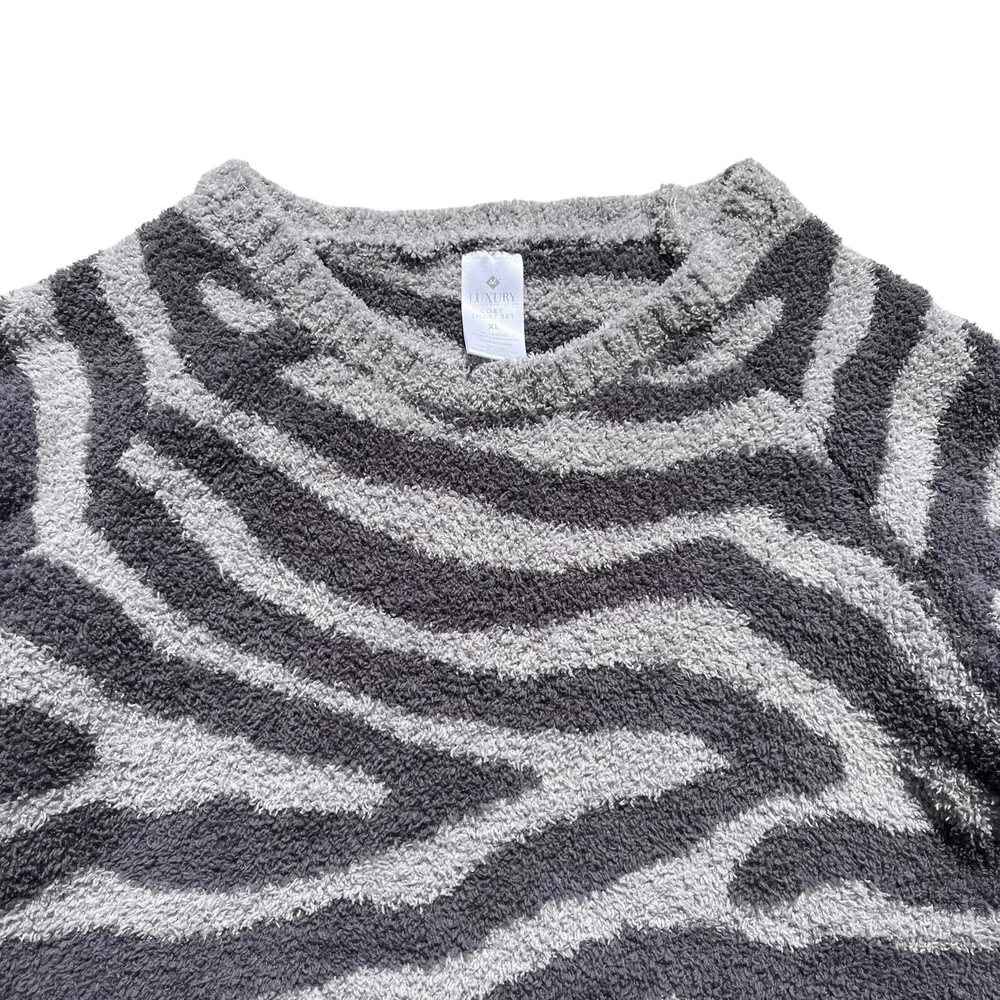 Member's Mark Luxury Premier Womens Size XL Cozy Sherpa Gray Zebra Print Sweater •Cozy stylish soft knit sweater •Thick cozy sherpa material •Long sleeves •Crew neck •All over charcoal and light gray zebra animal print •Ribbed neckline, wrist cuffs, and waist hemline •Size up if you want a more cozy relaxed fit •Brand: Member's Mark Luxury Premier Collection •Color: Charcoal gray, light gray •Style: Cozy pullover crewneck sweater #SC1523 •Size: X-Large •Measurements: taken flat approximate *Pit to pit: 22 in. *Length: 22 in. *Sleeve length: 24.5 in. *Shoulder to shoulder: 19 in. •Material: 70% Polyester, 30% Recycled Polyester •Made in China •Sweater is in great pre-owned condition