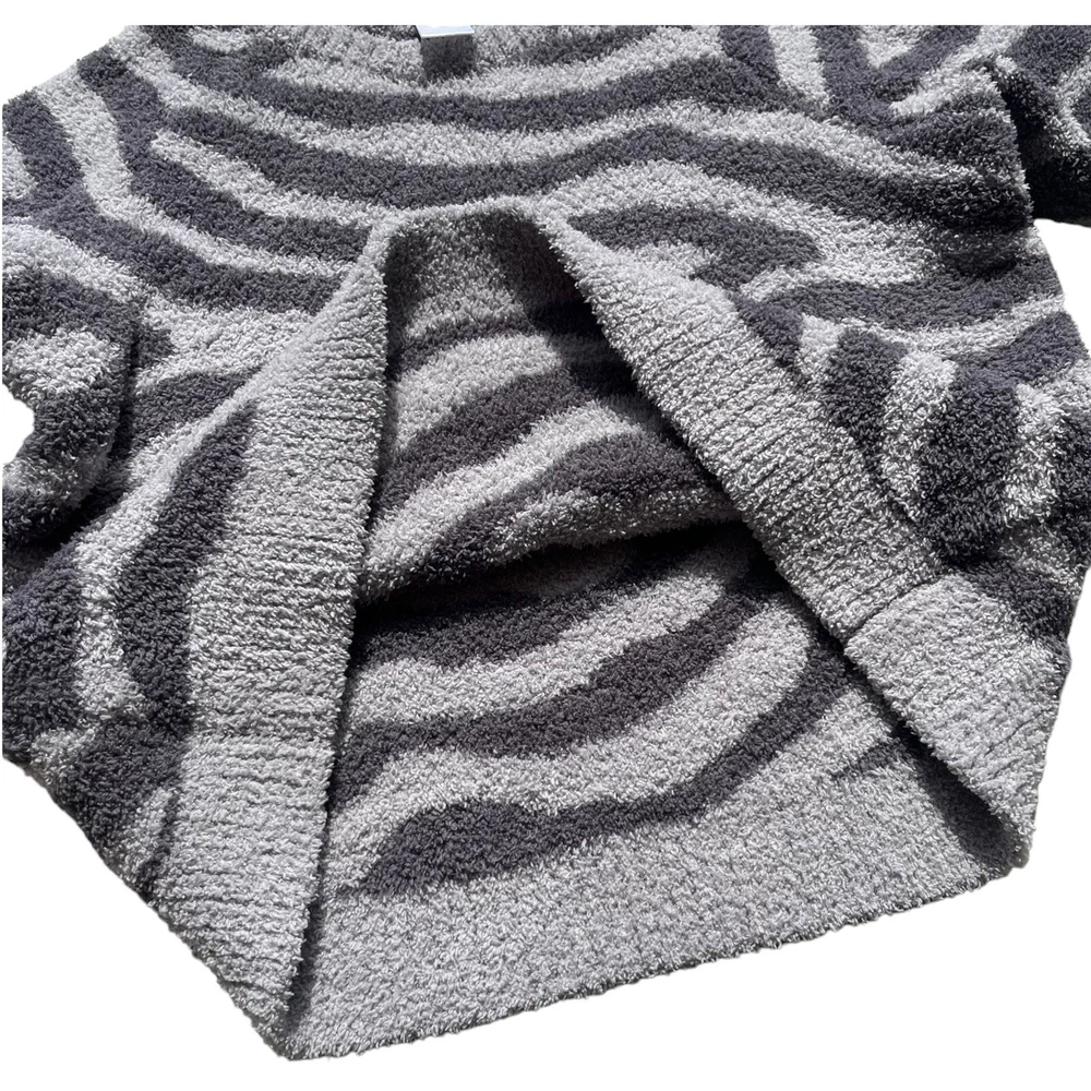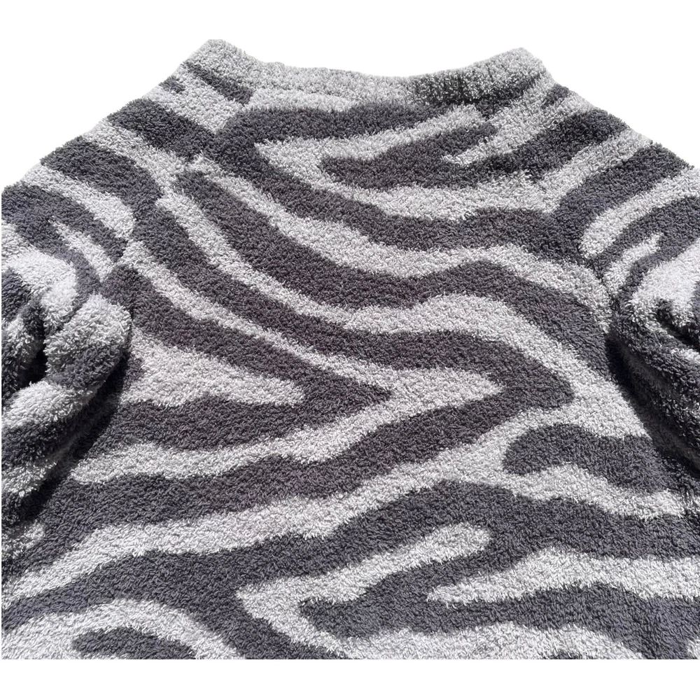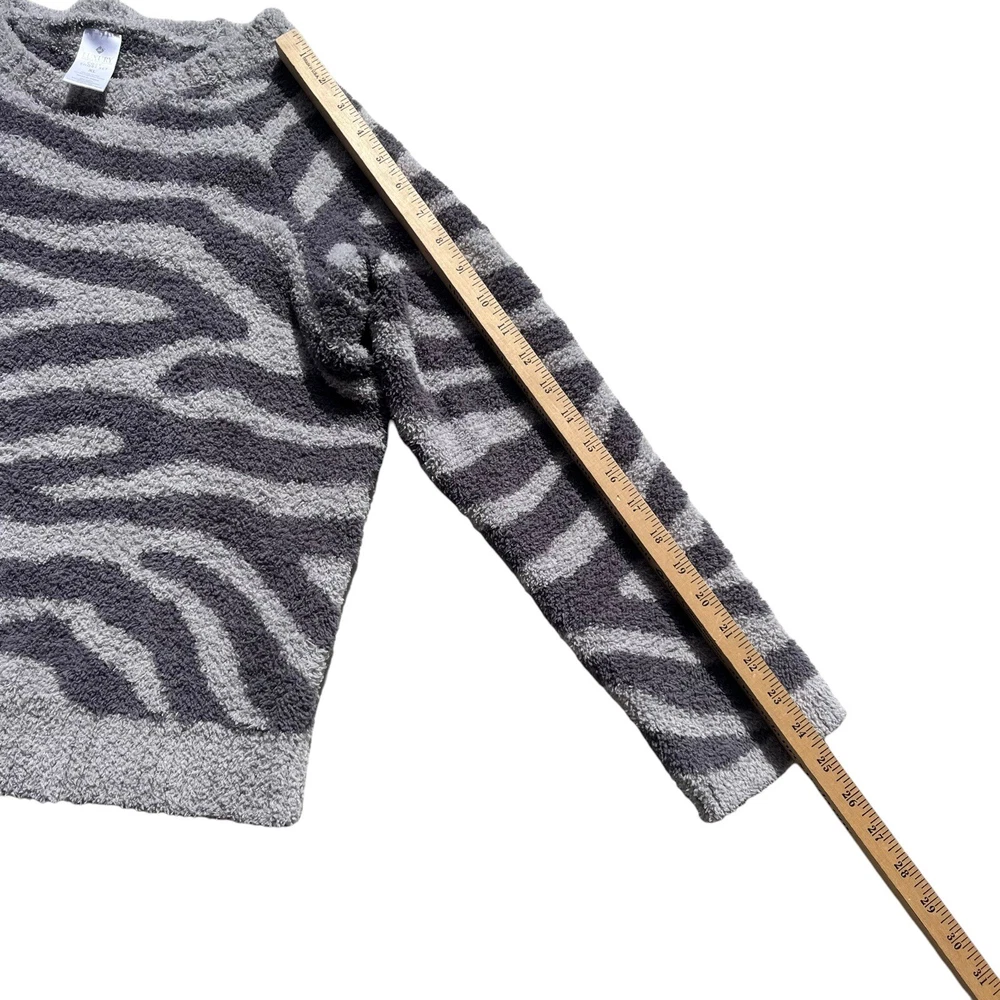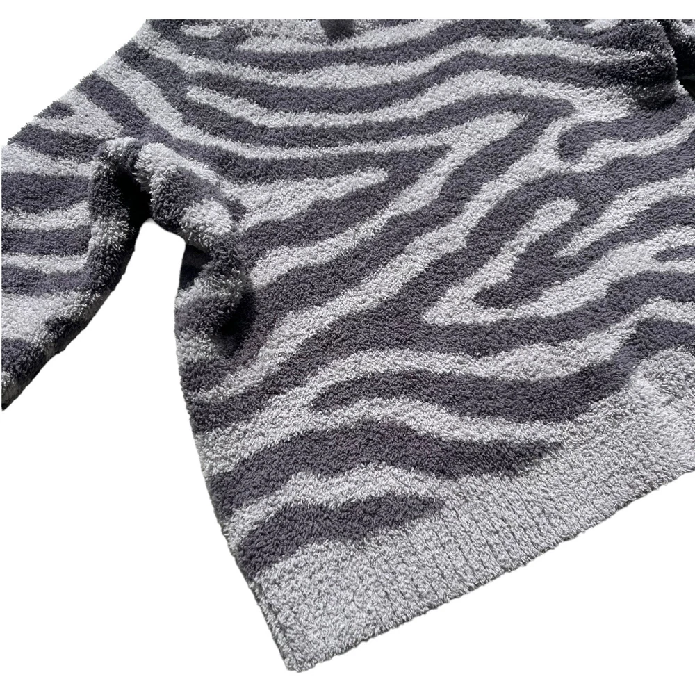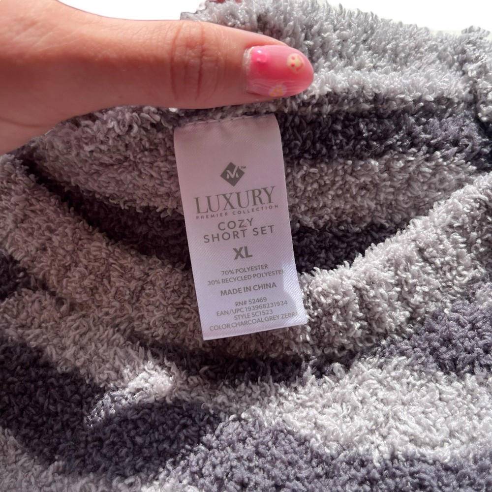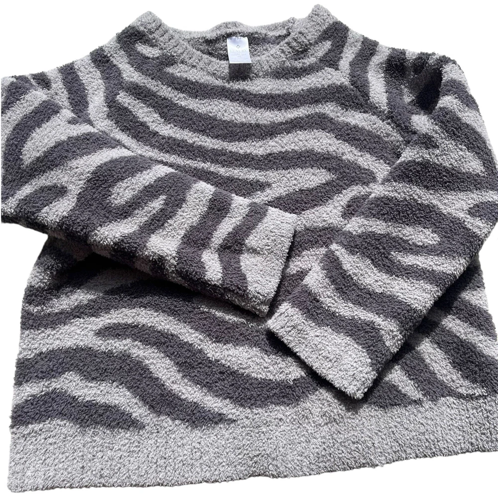 Member's Mark Luxury Premier Womens Size XL Cozy Sherpa Gray Zebra Print Sweater •Cozy stylish soft knit sweater •Thick cozy sherpa material •Long sleeves •Crew neck •All over charcoal and light gray zebra animal print •Ribbed neckline, wrist cuffs, and waist hemline •Size up if you want a more cozy relaxed fit •Brand: Member's Mark Luxury Premier Collection •Color: Charcoal gray, light gray •Style: Cozy pullover crewneck sweater #SC1523 •Size: X-Large •Measurements: taken flat approximate *Pit to pit: 22 in. *Length: 22 in. *Sleeve length: 24.5 in. *Shoulder to shoulder: 19 in. •Material: 70% Polyester, 30% Recycled Polyester •Made in China •Sweater is in great pre-owned condition