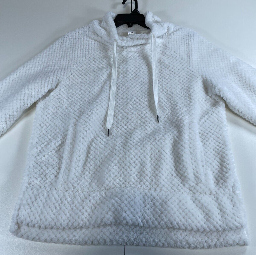This product is a Member's Mark women's plush pullover sweatshirt in white, size M. It is designed for winter wear and is categorized as activewear and women's clothing. The sweatshirt is a cozy and comfortable pullover style, perfect for staying warm during the colder months.