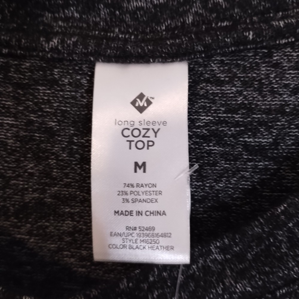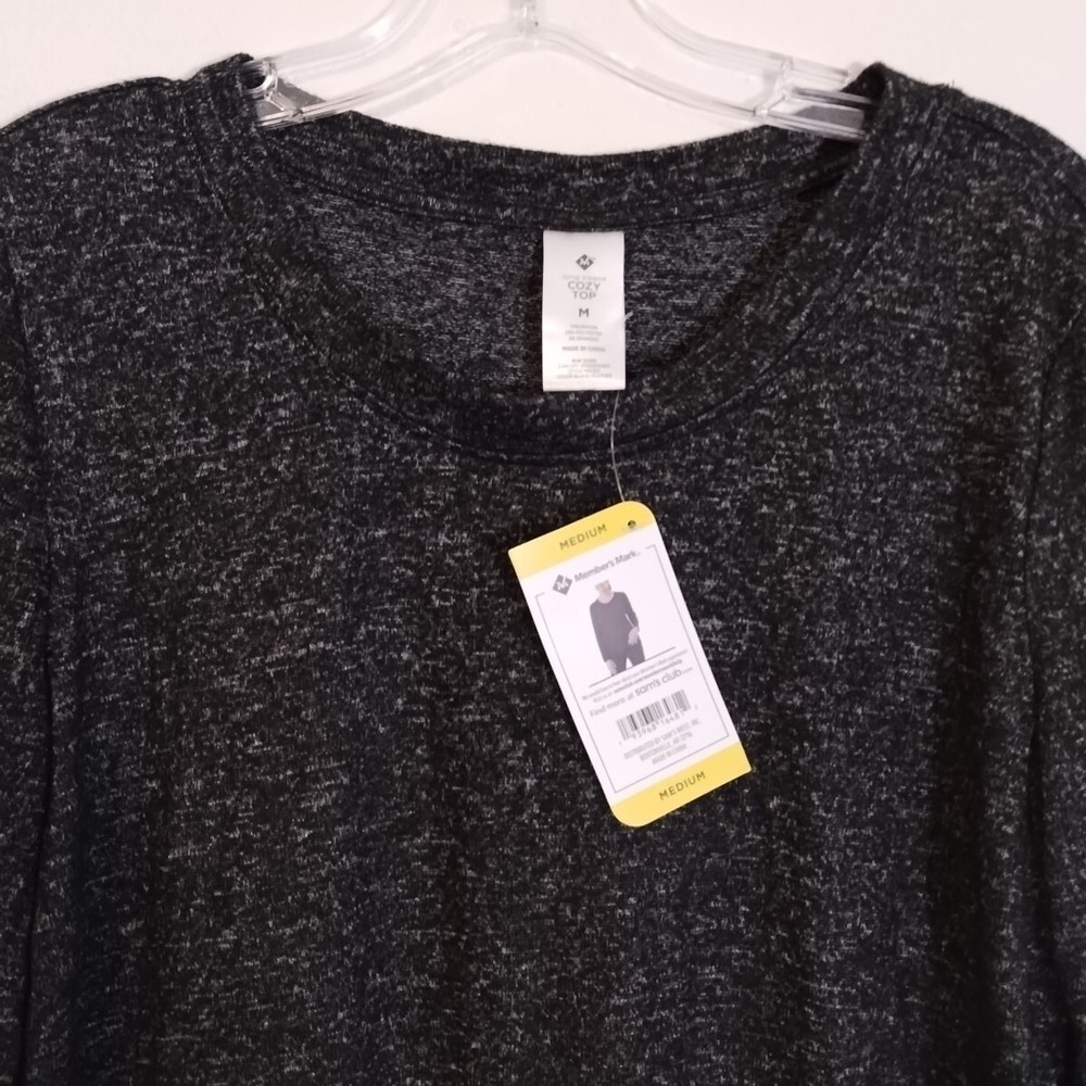 Add this cozy and stylish top to your wardrobe. Made for women, this long sleeve blouse comes in size medium and a classic black color, making it a versatile piece to wear on any occasion. The top features a brand label of Member's Mark and is perfect for those who prioritize comfort and style. Whether you're going out with friends or running errands, this top will keep you cozy and chic all day long. Get your hands on this wardrobe essential now!