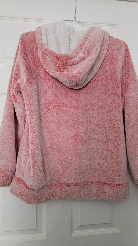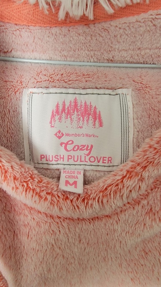 Stay cozy and stylish this winter and fall with this women's size M Members Mark hoodie. The pullover style sweatshirt features a V-neckline, cap sleeves, and faux fur trim accents for added flair. The solid pink color and soft fleece fabric make it perfect for casual occasions and activewear. The hoodie also includes a hood and pocket for added functionality. Garment care is simple with machine washable material. The product line, COZY plush pullover, is the perfect description for this comfortable and warm sweatshirt. Item is pre-owned but in good condition! Please look carefully at all pics for any imperfections B.D. 25 **Disclaimer--we only ship inside the continental US** **also we won't ship if there has to have a customs report to fill out**