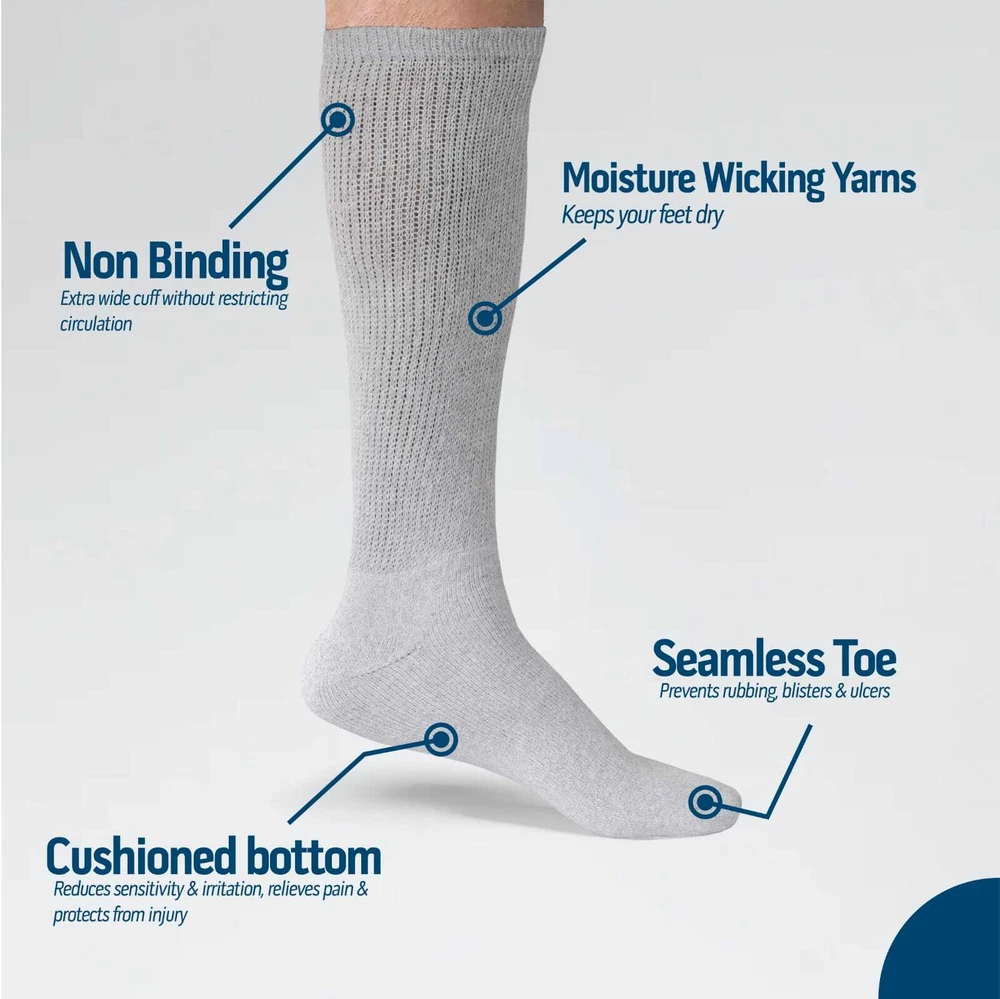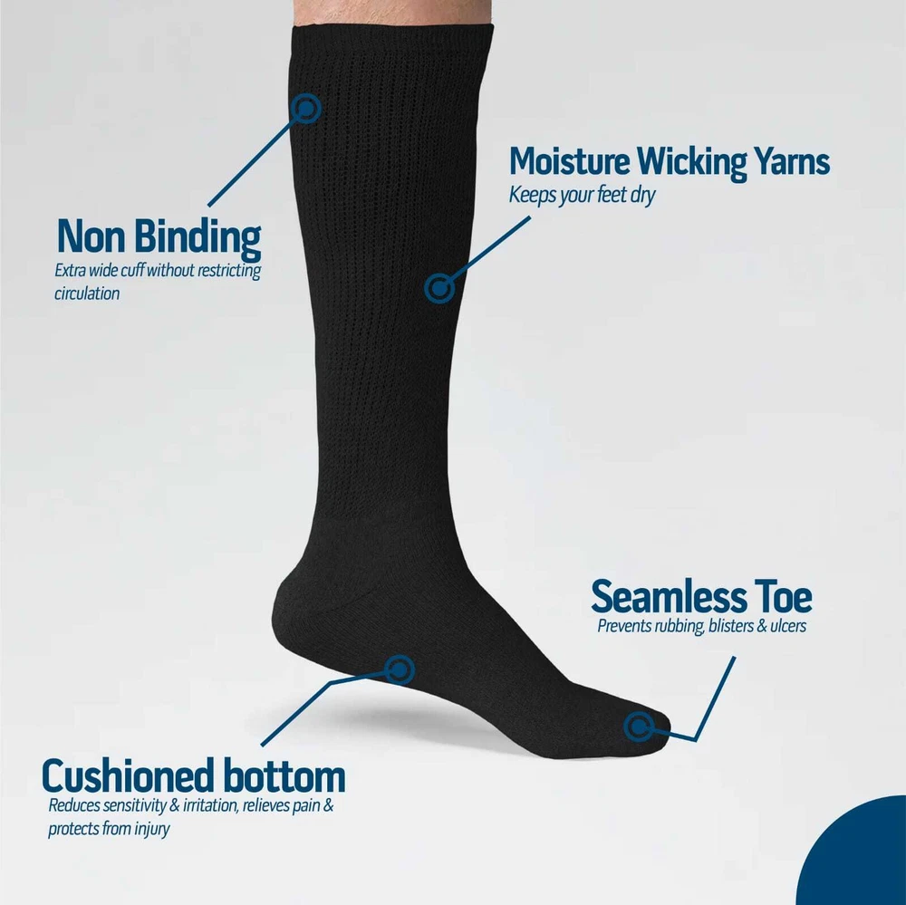 Free eBay listing template designed by dewiso.com Welcome to Diamond Star Online Store About Item:- NON-BINDING: Socks constructed to fit well without any restriction. Wide cuff ensures that socks stay up without sliding down yet don’t bind on the leg. Top gently conforms to your leg for optimal fit without constricting the circulatory flow. These diabetic socks are loose fitting to the point where you barely feel wearing any. OVER THE CALF LENGTH: Convenient over the calf length of the socks provide extra support for the leg. Socks cover the entire calf and go all the way up to the knee. The knee-high diabetic socks are will be an ideal fashion choice to match pants, suits, and even shorts. Mate rial: Cotton 90% ,Polyester 7%, Elasthane 3%. PREMIUM QUALITY COTTON: Diabetic over the calf health socks are made of premium cotton blend fabric. Socks are much softer than ones from regular cotton as well as they are cushioned around foot. Designed to deliver optimal moisture control with extended breath ability and durability. Soft and well-fitting premium diabetic socks are a must-have for people with symptoms of edema or neuropathy. Your Satisfaction is our goal, Feel free to contact us for any questions or issues. FAST SHIPPING. 60 DAYS RETURN ACCEPTABLE. FREE SHIPPING ALL USA STATES. PLEASE CONTACT US IF YOU HAVE ANY QUESTIONS / PROBLEMS WE ARE HERE TO SOLVE YOUR ISSUE WITH 100% MONEY BACK REFUND. Free eBay listing template designed by © dewiso.com .