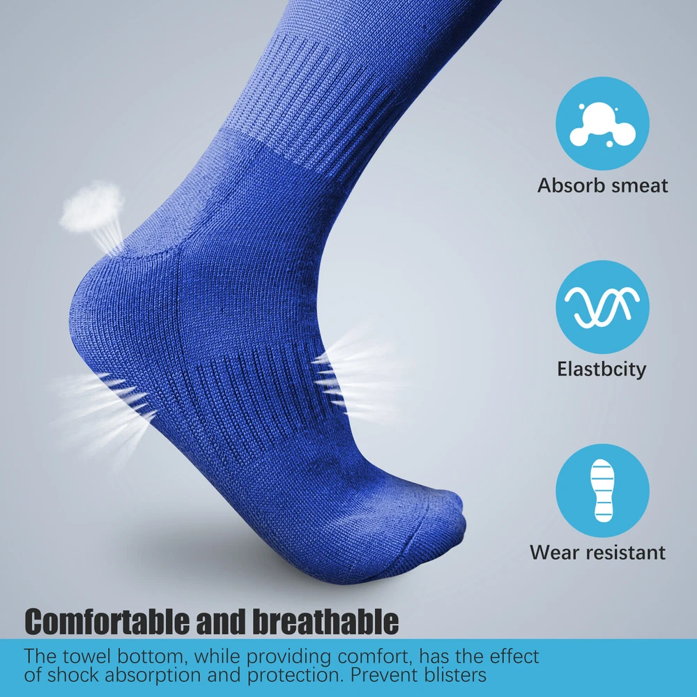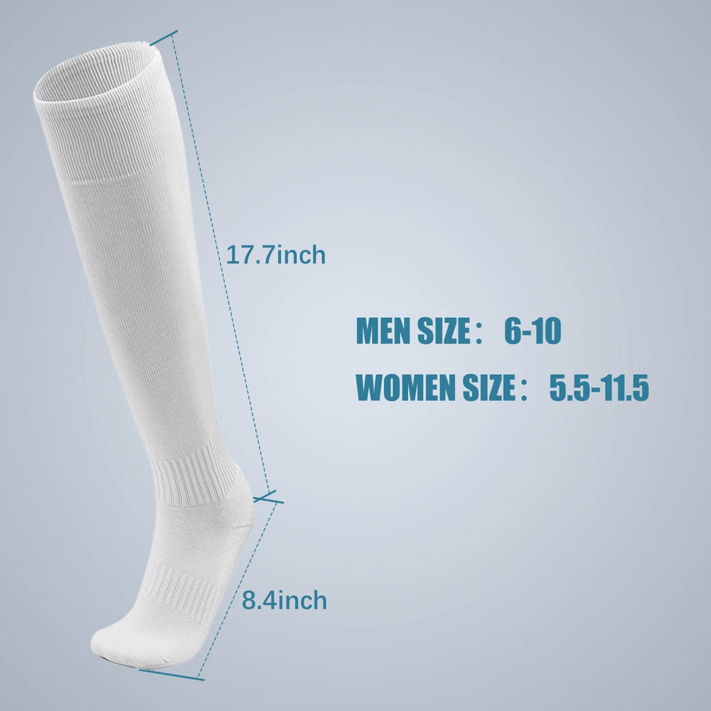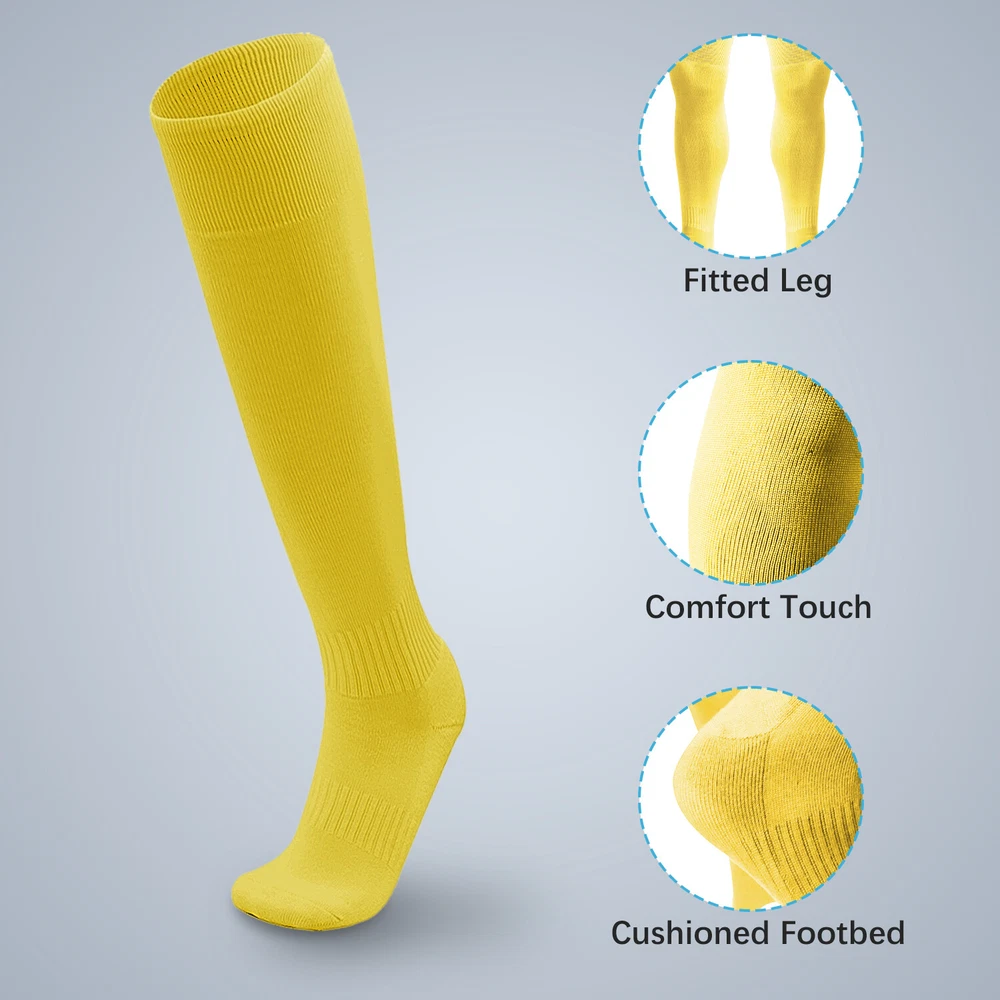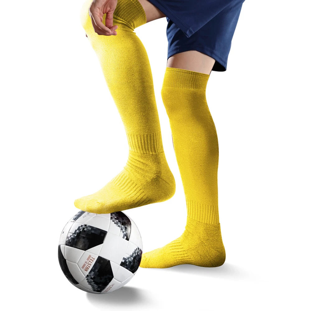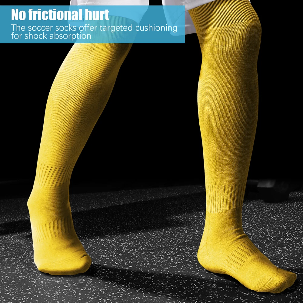 Performance Football Socks Heel and Toe are Reinforced for Durability, no-slip Heel Fit Football Socks With Ankle Support For a Snug Secure Fit and Reduce Injury, Help Blood Circulation, Keep Feet Dry and Comfortable Ideal Socks for Baseball, Basket Ball, Hockey, Rugby and Many More Sports School PE or Leisure wear. For All Seasons Material Cotton & Spandex The length of the socks is 17.7in(L)8.4in(W) Colours Available: Black, White, Red, Royal Blue , Yellow package: 1-3 Pairs Mens Football Plain Long Socks Sport Over Knee High Large Hockey Soccer Baseball Notes: Due to the light and screen setting difference, the item's color may be slightly different from the pictures. Please allow slight dimension difference due to different manual measurement.