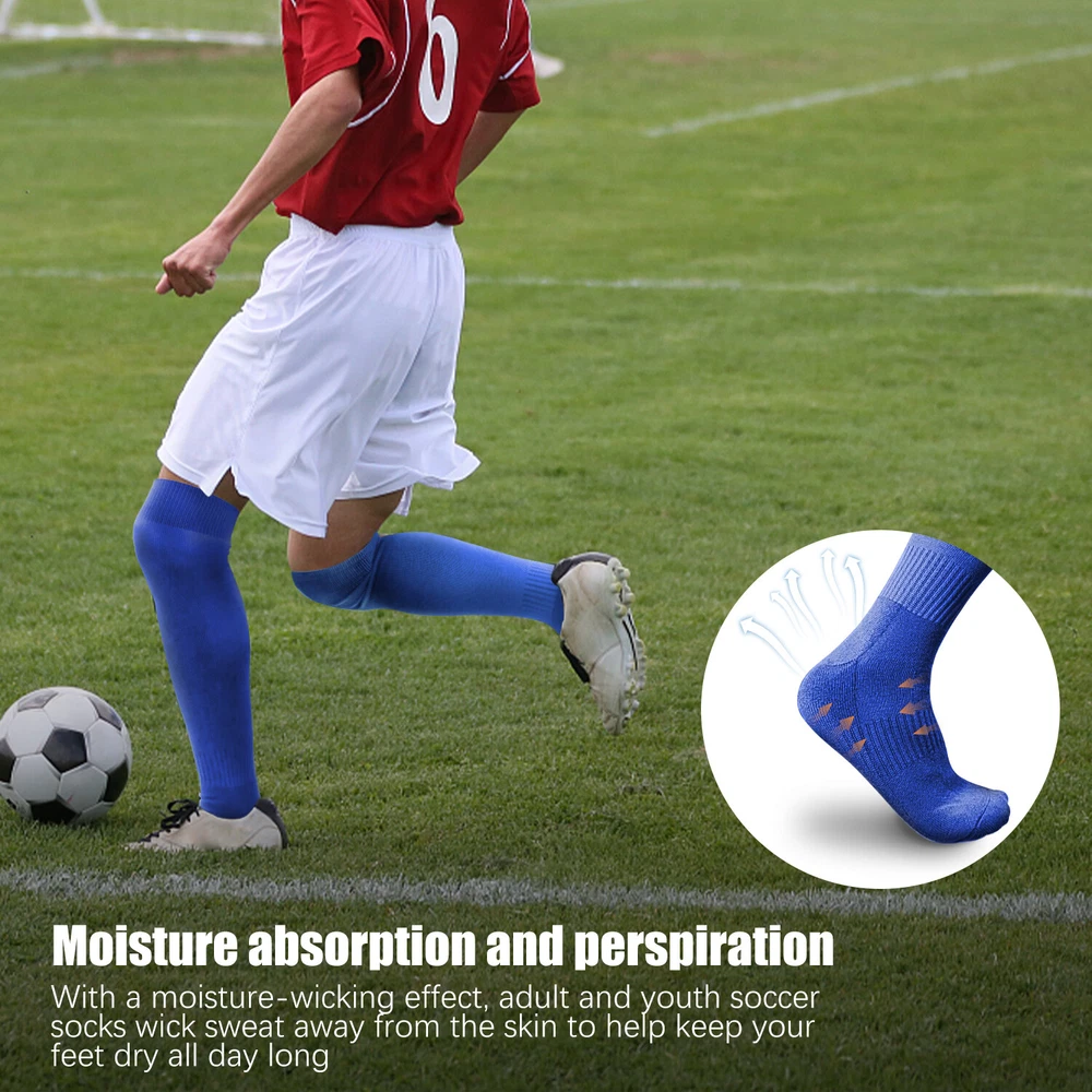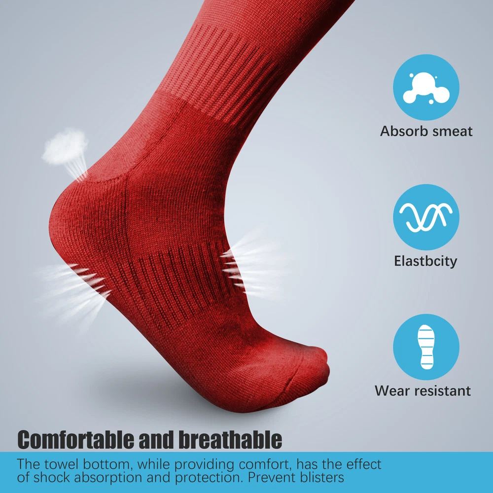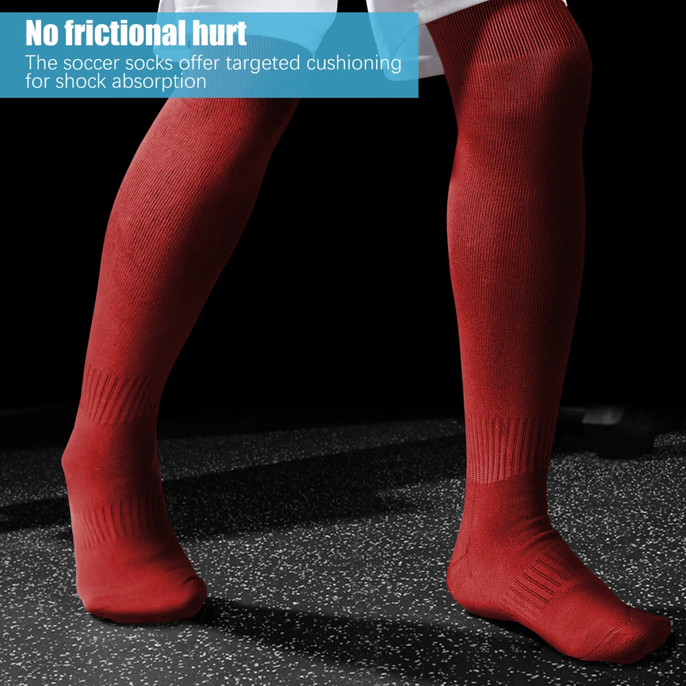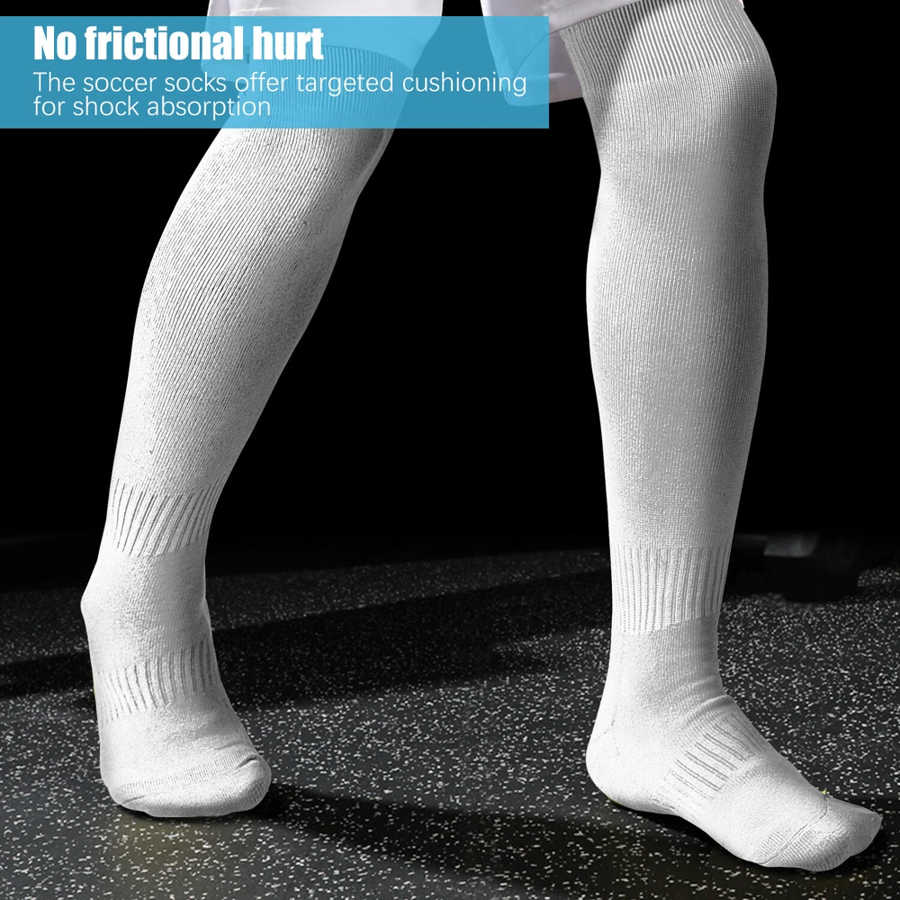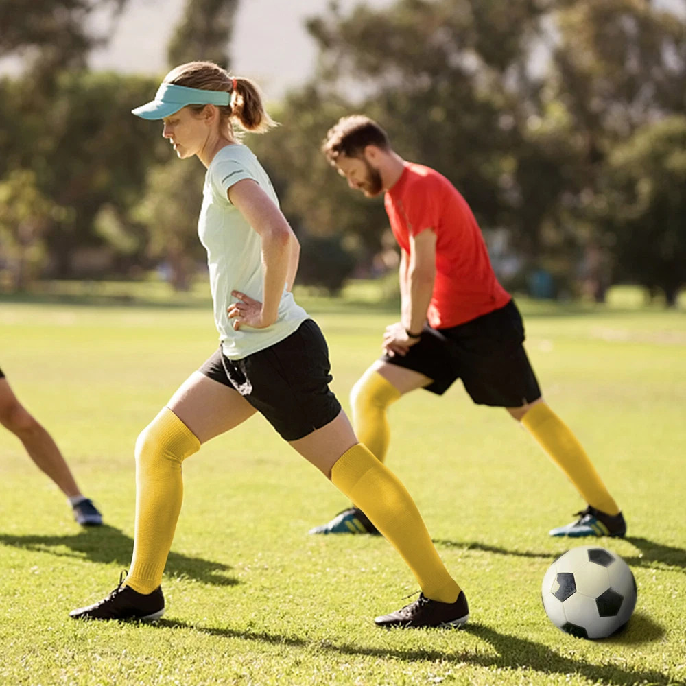 Performance Football Socks Heel and Toe are Reinforced for Durability, no-slip Heel Fit Football Socks With Ankle Support For a Snug Secure Fit and Reduce Injury, Help Blood Circulation, Keep Feet Dry and Comfortable Ideal Socks for Baseball, Basket Ball, Hockey, Rugby and Many More Sports School PE or Leisure wear. For All Seasons Material Cotton & Spandex The length of the socks is 17.7in(L)8.4in(W) Colours Available: Black, White, Red, Royal Blue , Yellow package: 1-3 Pairs Mens Football Plain Long Socks Sport Over Knee High Large Hockey Soccer Baseball Notes: Due to the light and screen setting difference, the item's color may be slightly different from the pictures. Please allow slight dimension difference due to different manual measurement.