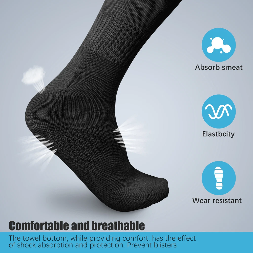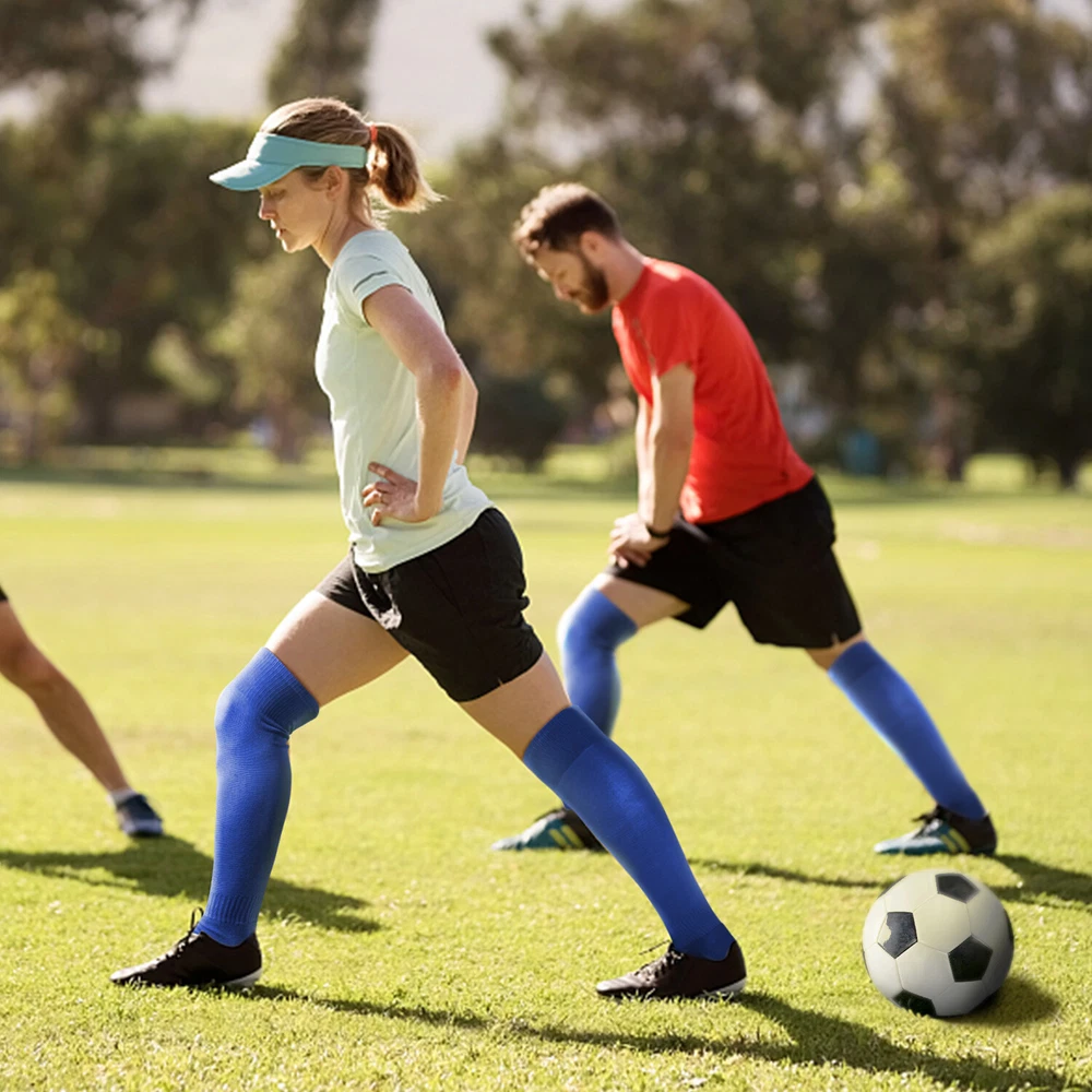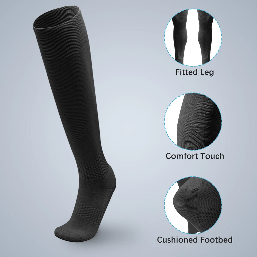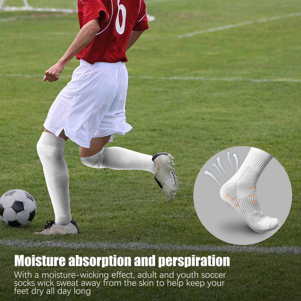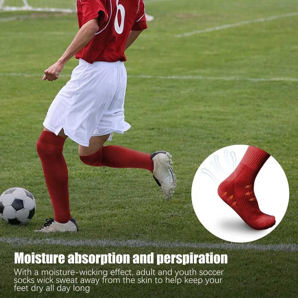 Performance Football Socks Heel and Toe are Reinforced for Durability, no-slip Heel Fit Football Socks With Ankle Support For a Snug Secure Fit and Reduce Injury, Help Blood Circulation, Keep Feet Dry and Comfortable Ideal Socks for Baseball, Basket Ball, Hockey, Rugby and Many More Sports School PE or Leisure wear. For All Seasons Material Cotton & Spandex The length of the socks is 17.7in(L)8.4in(W) Colours Available: Black, White, Red, Royal Blue , Yellow package: 1-3 Pairs Mens Football Plain Long Socks Sport Over Knee High Large Hockey Soccer Baseball Notes: Due to the light and screen setting difference, the item's color may be slightly different from the pictures. Please allow slight dimension difference due to different manual measurement.