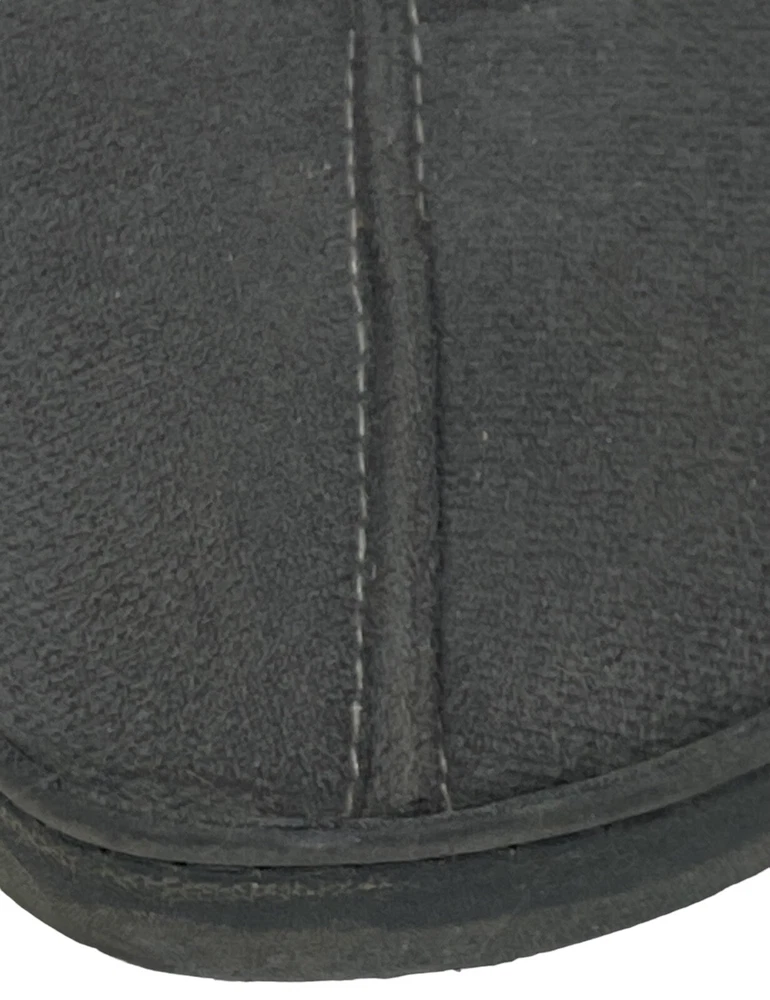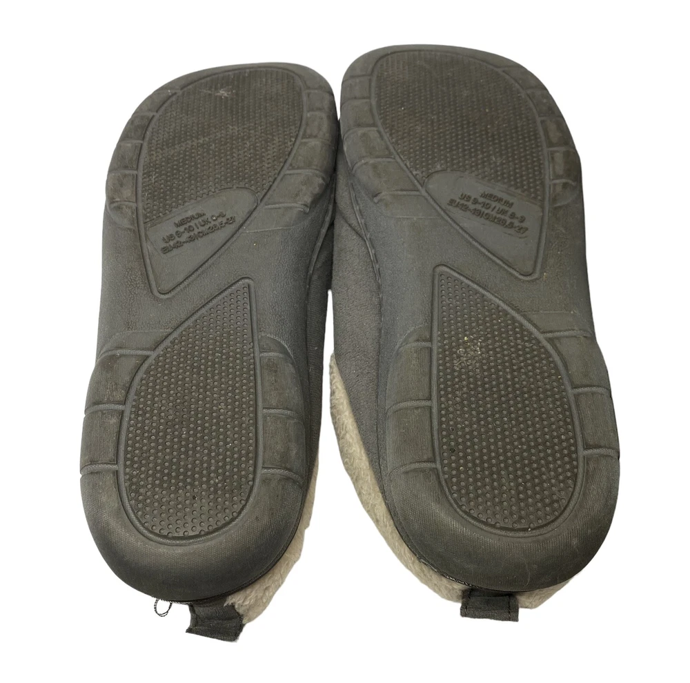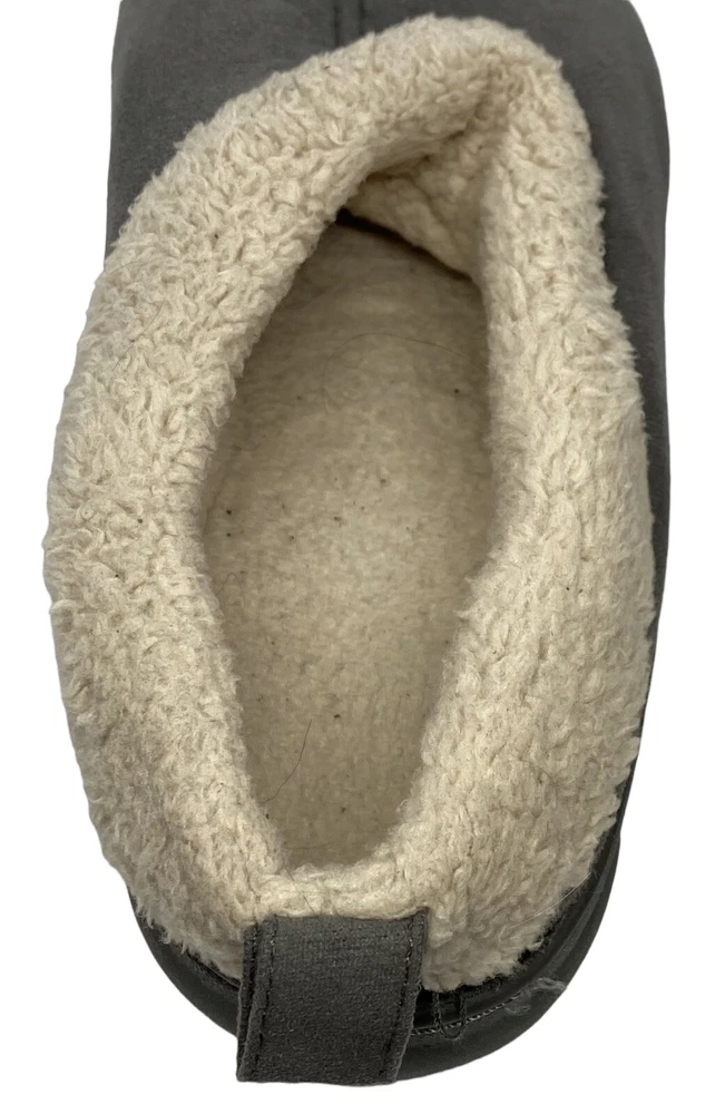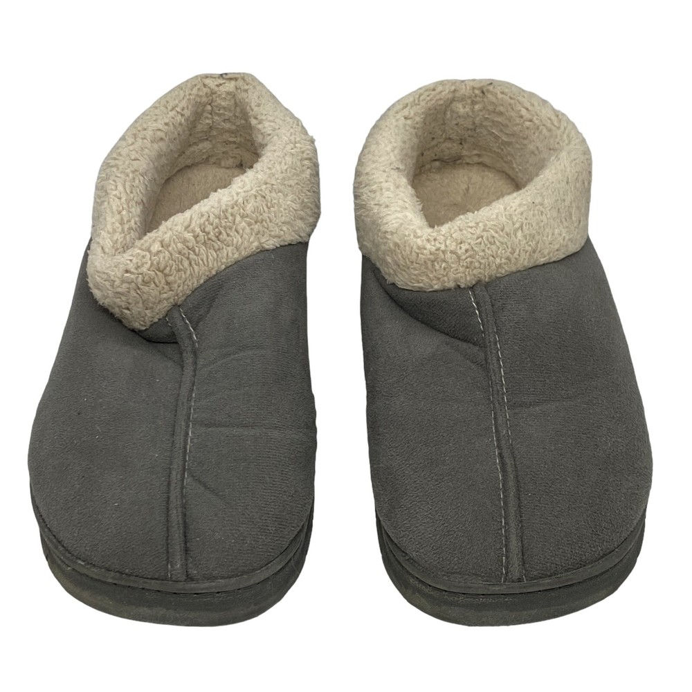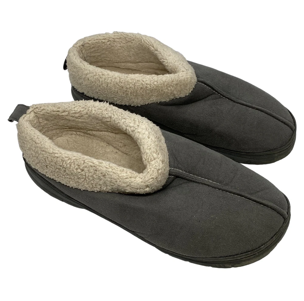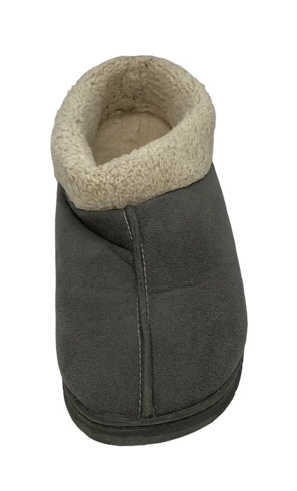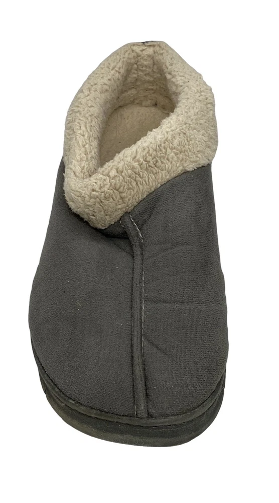 Men's Fuzzy House Slippers Gray SIZE M (9-10) Warm Cozy Comfort Fleece Rubber Soles. Cozy & Warm - The woolen felt, and fleece collar stitched upper keep in warmth and is breathable. Soft fuzzy sherpa lining offers next-to-skin comfort to keep you warm and cozy in the cooler seasons. Wool-felted and microsuede upper. Faux fleece lining. Soft foam footbed. Rubber soles. The Shoes measure 11.5' Length x 4 1/2" Width x 3 3/4" Tall. They weigh a total of 13.86 ounces or 398 grams.