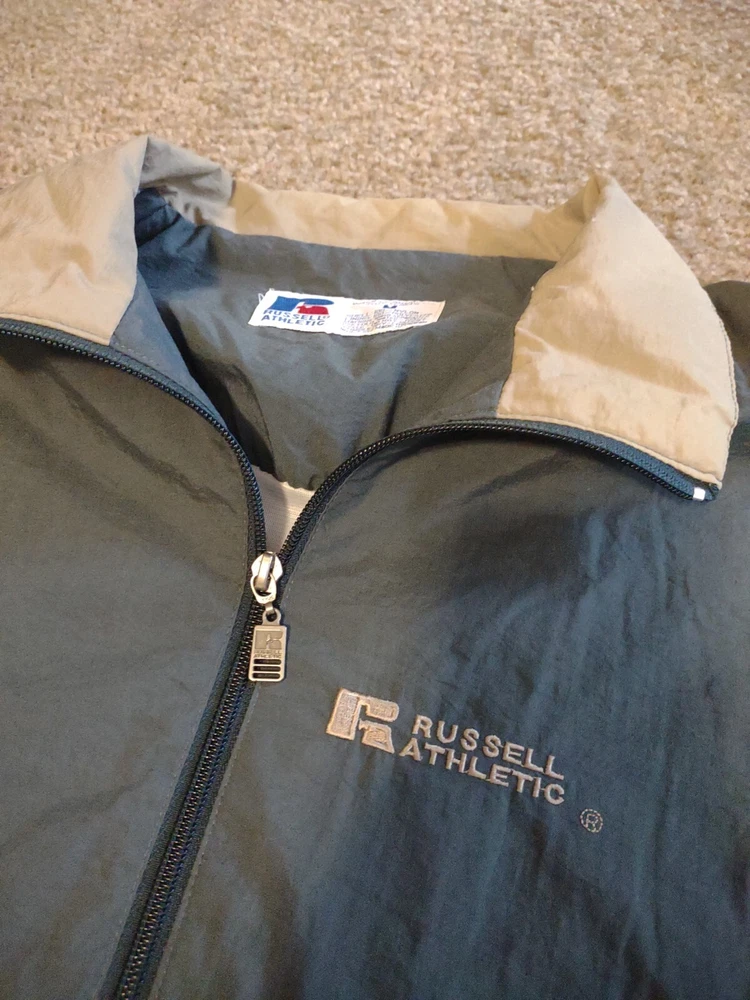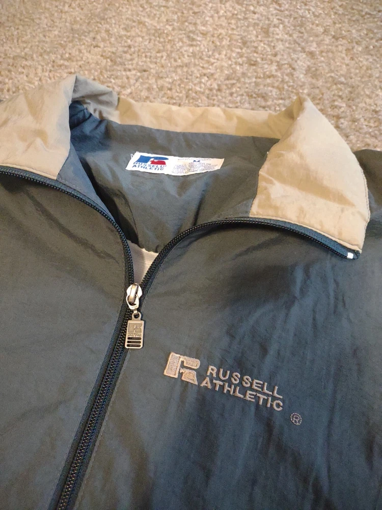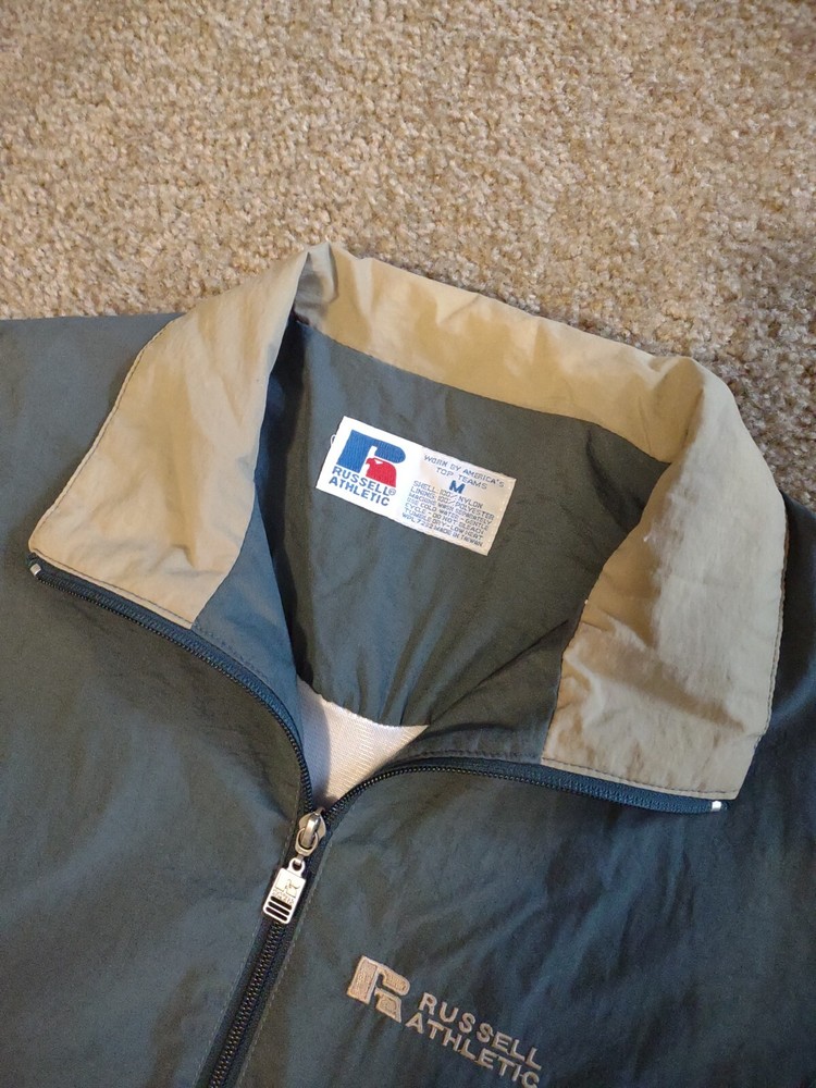 Love this vintage Russell windbreaker! The nylon shell keeps wind out while the polyester lining adds comfort—perfect for workouts or casual wear. The dark green/tan combo looks sharp, and the medium fit is just right. Lightweight yet durable, it’s great for running, gym sessions, or just layering on breezy days. A must-have for active guys!