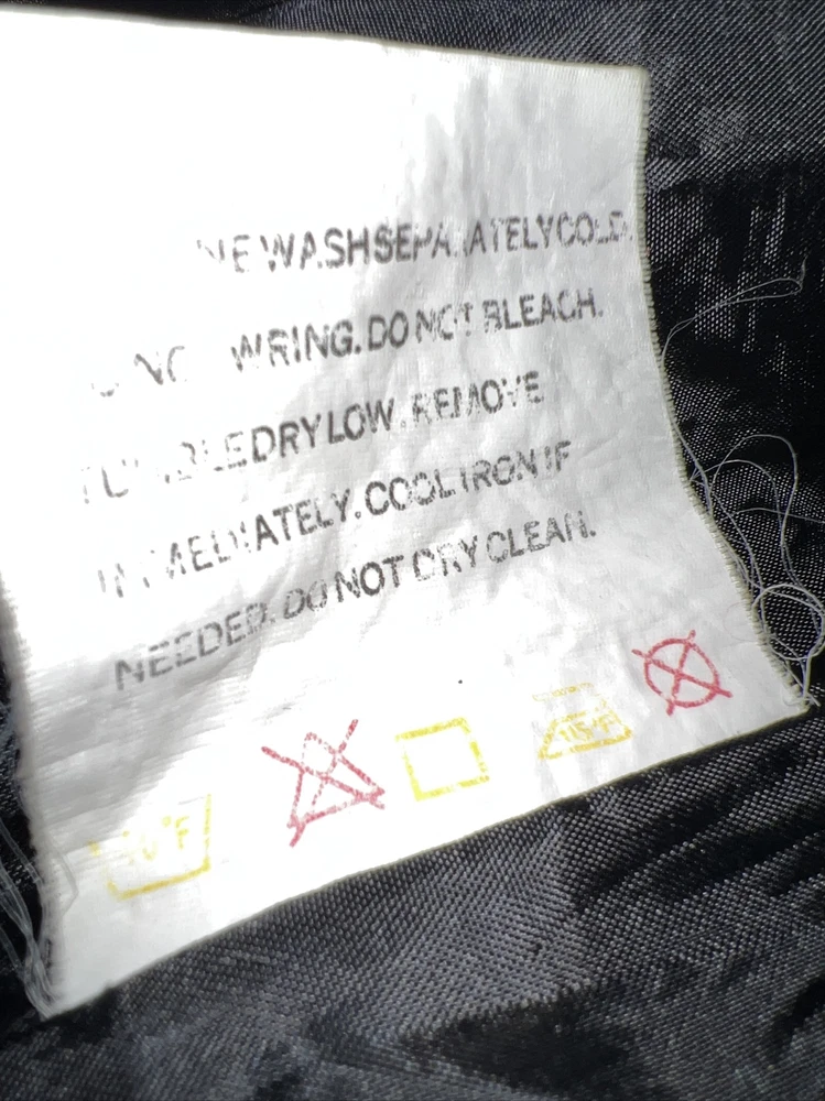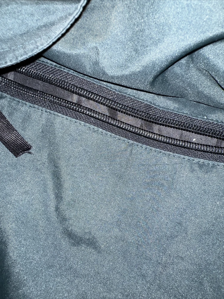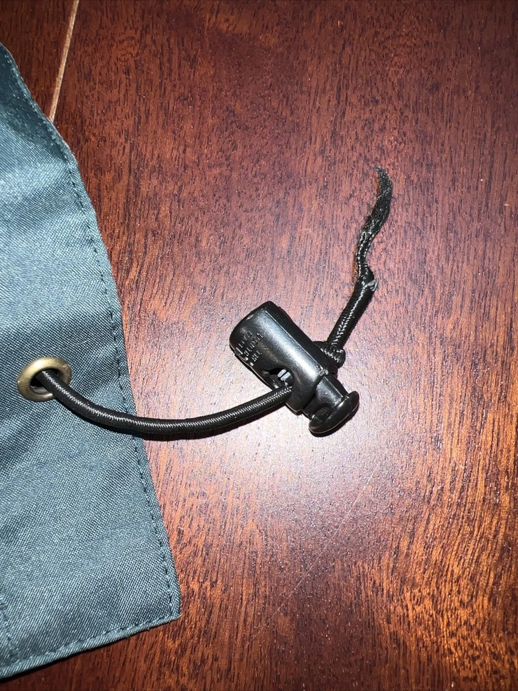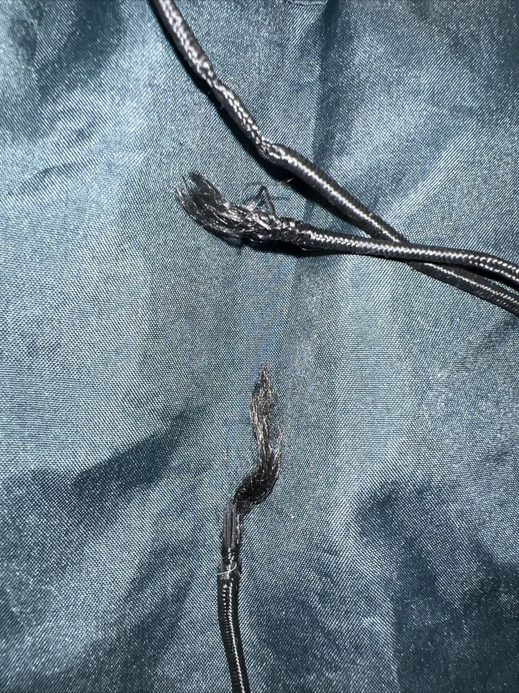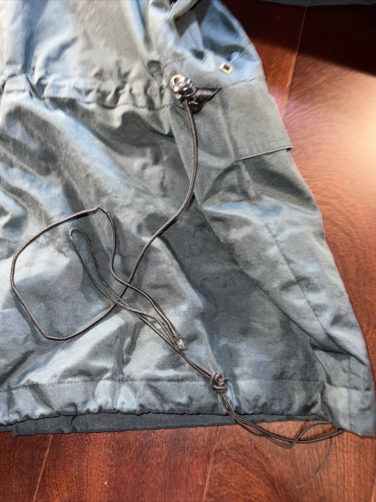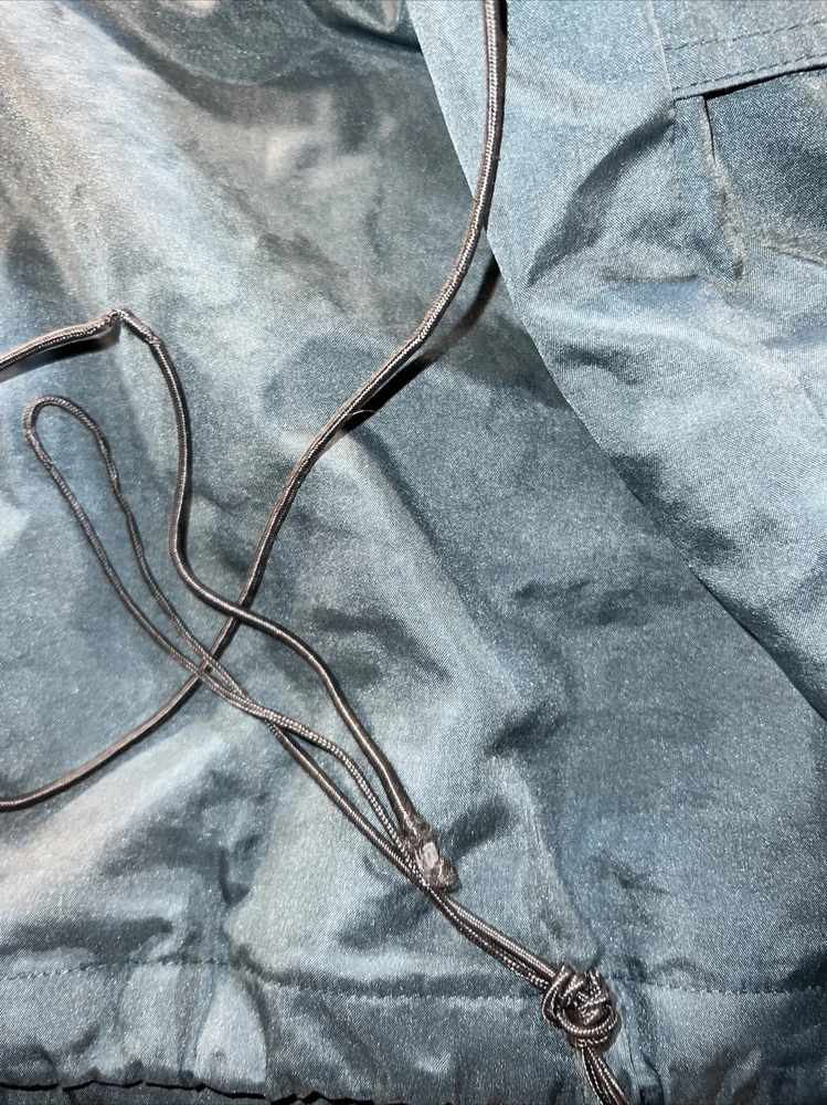The draw strings are pretty worn this is very well loved! Check measurements seems like it is large marked as medium...