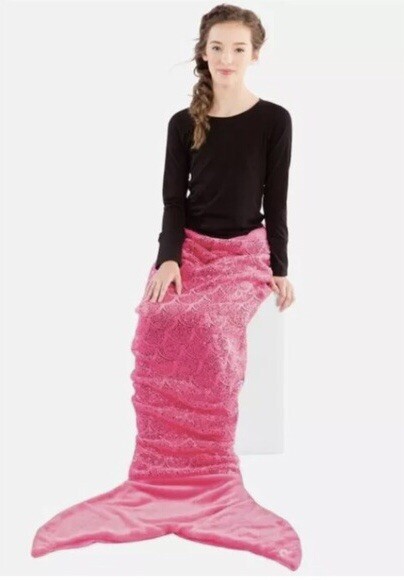 Mermaid Tail Blanket Woman’s Teens Glittering Pink Cozy Flannel Gifts All Season Item #C1 Weight 1lb Excellent Condition. Like New Manufacturer’s Description: • Super cozy plush blanket with shimmery scale design in the shape of a mermaid tail! • The perfect blanket that you can slip right into with an open seam to extend land legs all the way into the fins • Makes a perfect gift