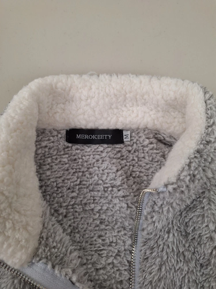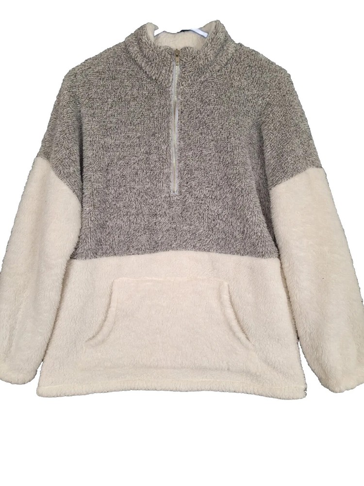 Elevate your comfort game with this Merokeety Fluffy Cozy Pullover. This pullover is designed with a mock neck, long sleeves, and a pullover closure providing a stylish yet casual look. The super soft sweatshirt, made of polyester and fleece, is perfect for any occasion, whether you're traveling, doing activewear, or just lounging at home. The gray colorblock pattern and 1/4 zip feature add an extra touch of style to this comfy and cozy pullover. It is available in regular fit and size type for women, size medium, and is perfect for a comfy and stylish outfit.