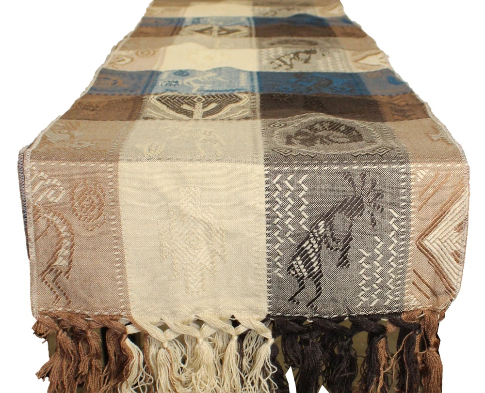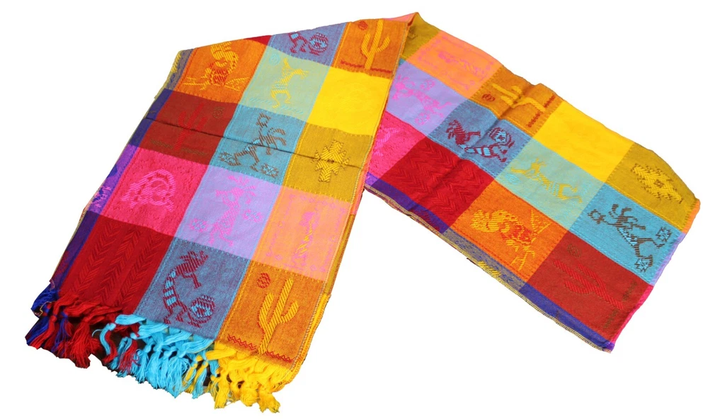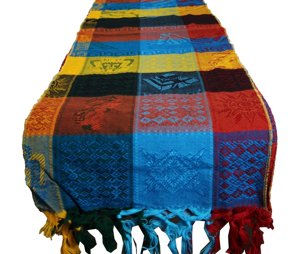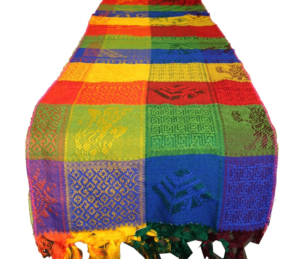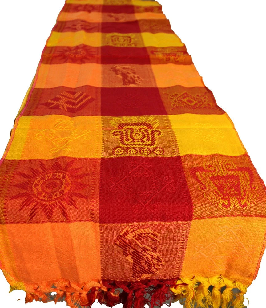 Mexican Mayan Table Runner Colorful Geometric Engraved Designs Lightweight Size: 13.75" width x 100" Length *Note: Colors and pattern designs may have a slight variation Washing Instructions: Machine washable in gentle cycle (single item) with mild soap, dryer in low heat Enjoy a complimentary FREE SHIPPING!
