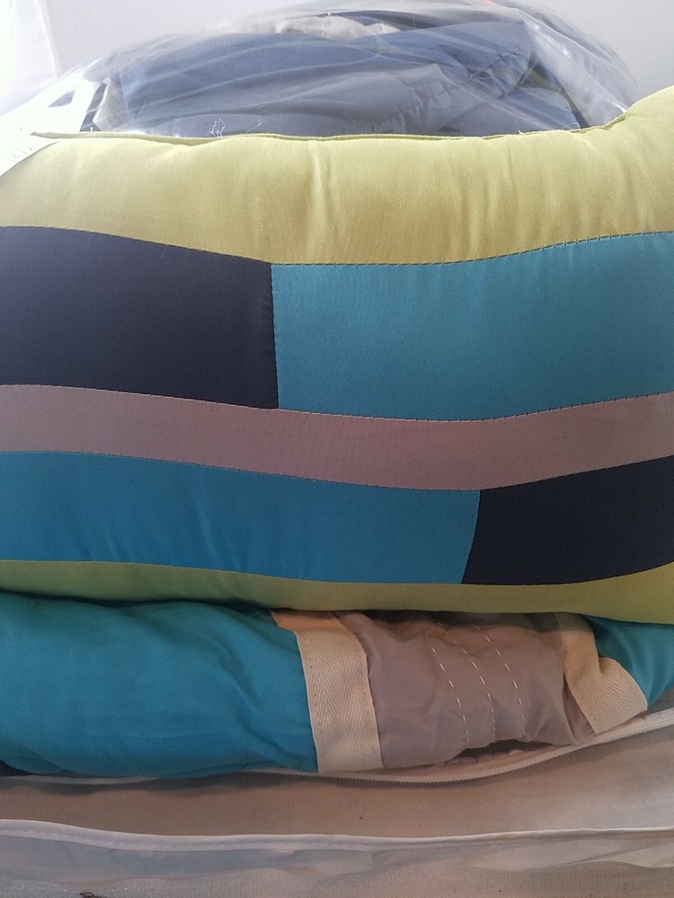 Mi Zone Cozy Comforter Set Stripes All Season Bedding Extra large Twin Colors are Navy, Green, Turquoise Blue, Gray, and offwhite trim. Material is Polyester Condition is "New with tags"....