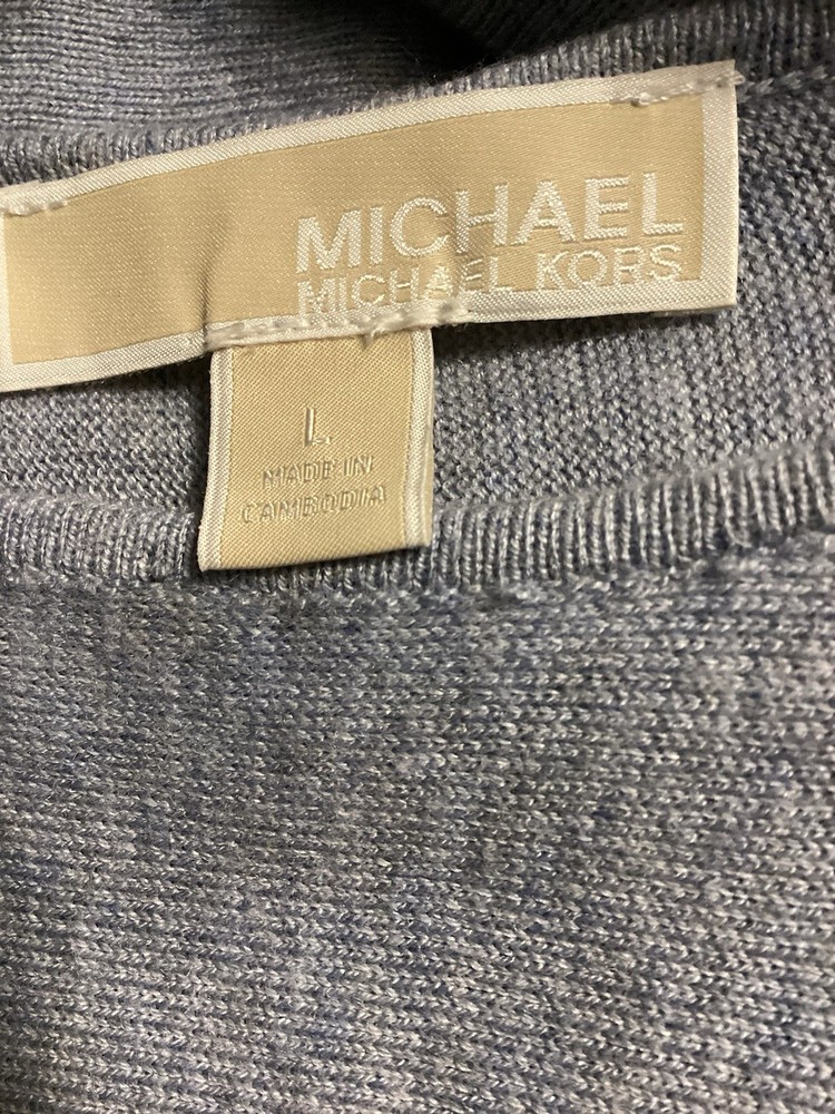 The Michael Kors Long Sleeve Sweater in Gray is a stylish and versatile addition to any woman's wardrobe. Made with a comfortable cotton blend material and featuring a tight-knit design, this sweater is perfect for casual, business, or travel occasions. The round neckline and raglan sleeves add a touch of sophistication, while the designer logo accent gives it a classic yet trendy appeal. With its regular fit and lightweight, stretchy fabric, this sweater is ideal for wearing in the winter, fall, or spring seasons.