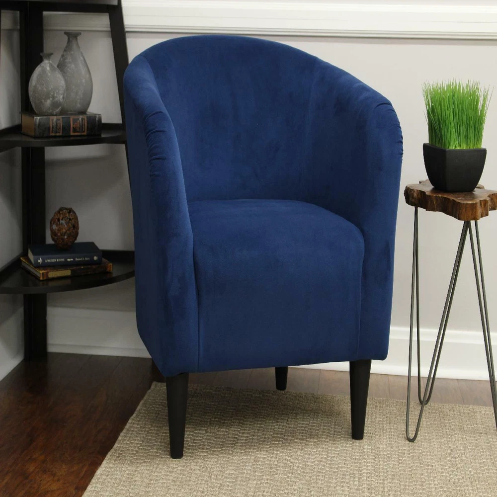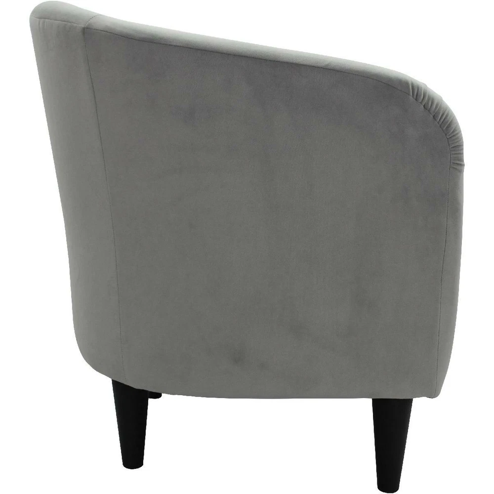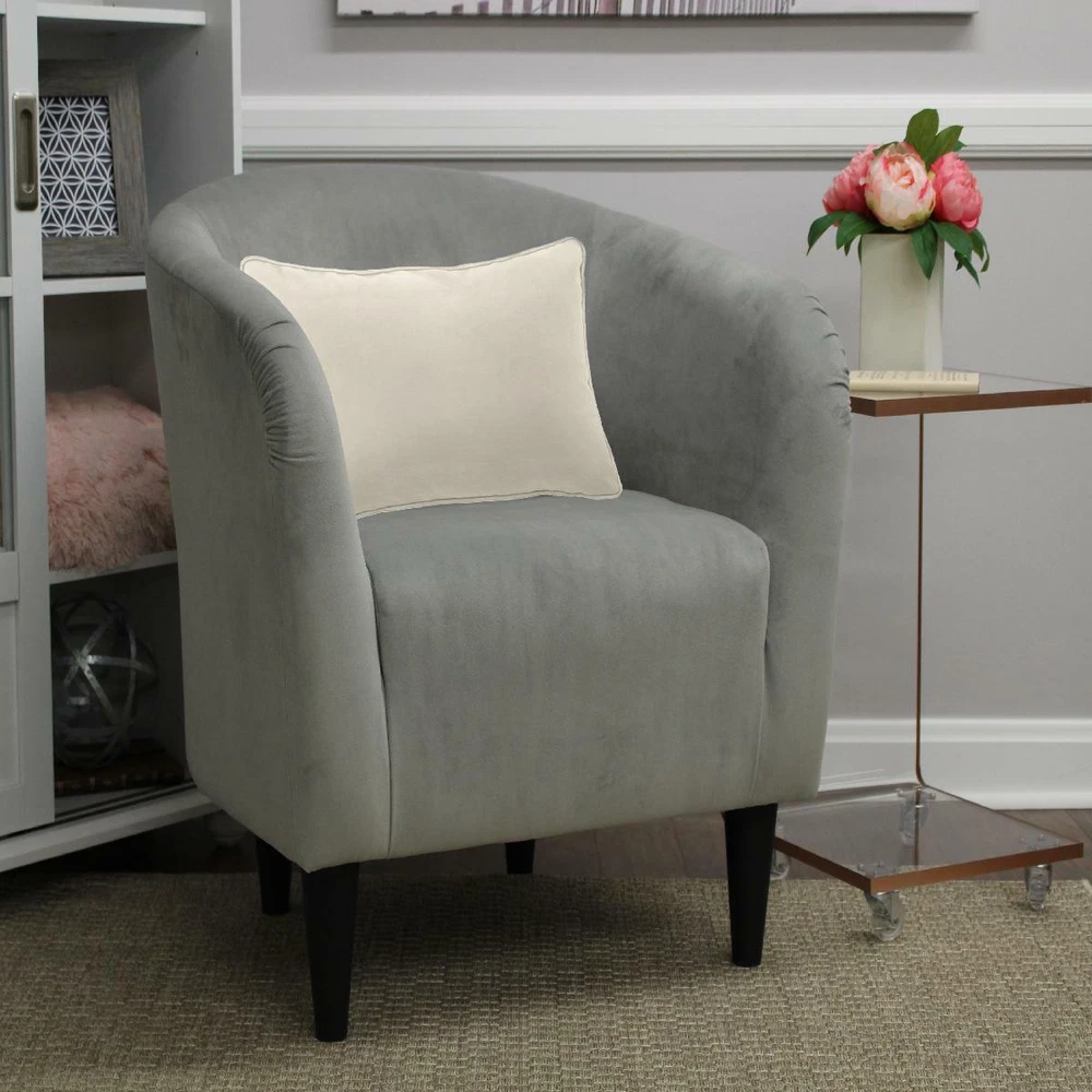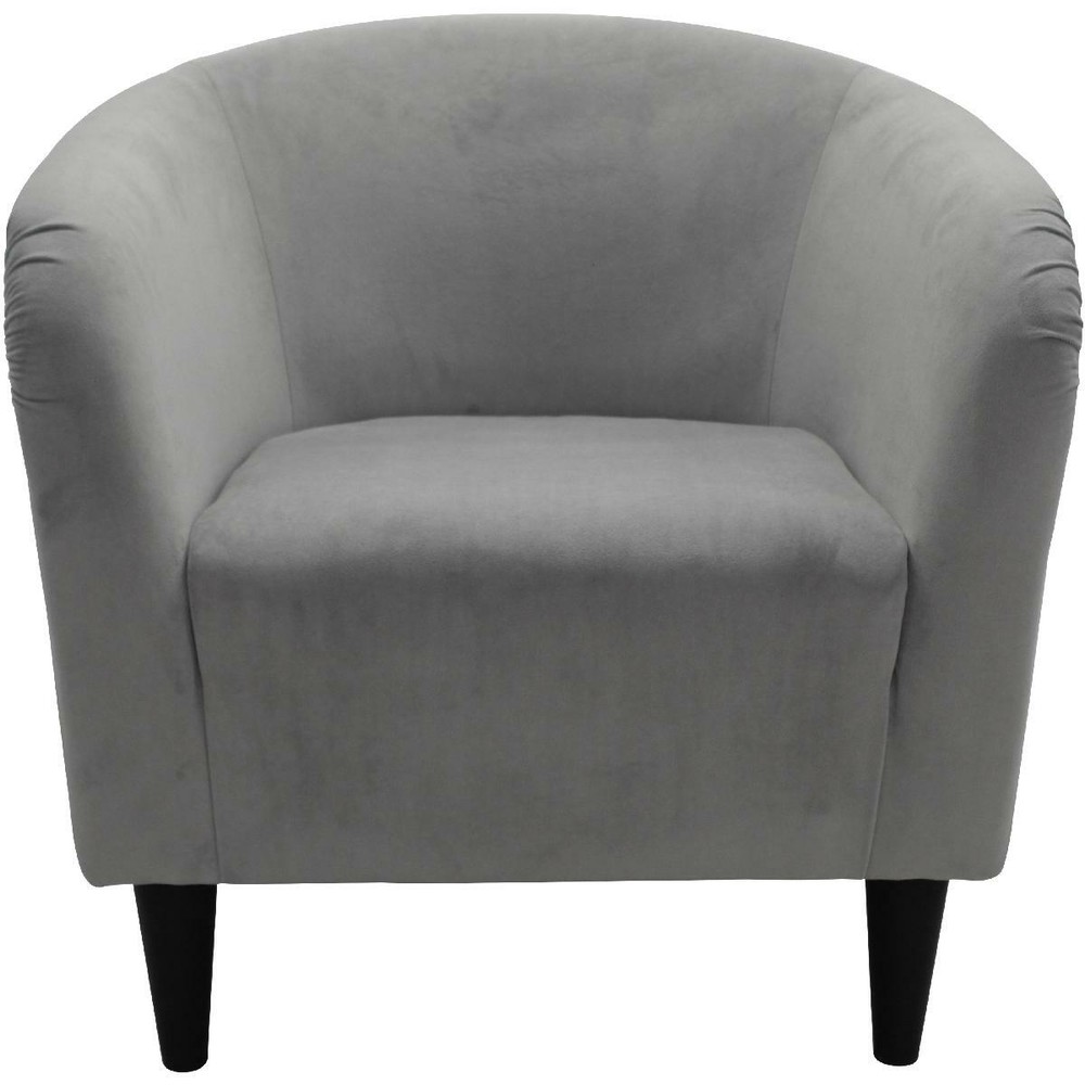 Mainstays Microfiber Tub Accent Chair, Dove Gray The Mainstays Microfiber Tub Accent Chair is classic yet contemporary, designed with style in mind. The deep seat and comfortable feel add to the all-over appeal of this accent chair. The modern design gives this accent chair a distinctive look that elevates any space. The legs of the piece add an additional layer of style to the chair and make it easy for you to clean underneath it. Upholstery is a solid microfiber fabric that is easy to clean by simply wiping with a damp cloth making it the perfect addition to your space. Whether you put it in your office, living room or bedroom, this chair is sure to be a family favorite. Available in multiple colors including: Berry Red, Dove Gray, Navy Blue, and Chocolate Brown, this chair is sure to match any taste or aesthetic. So, whether you are looking for a new chair in your living room or the perfect complement to your office, the Mainstays Microfiber Tub Accent Chair is for you. Mainstays furniture offers an ideal solution for anyone who wants stylish, versatile home and office furnishings. With a variety of different furniture collections reflecting clean, modern style and simple forms that can fit in with nearly any style of decor, Mainstays furniture offers something for everyone. Look out for bedroom, lounge, office and storage furniture pieces in this category, including some items that require no tools for assembly. Mainstays Microfiber Tub Accent Chair: Classic yet contemporary accent chair Padded deep seat for comfort and style Perfect for use in dens, living rooms, family rooms, entertainment rooms, home offices, guest rooms, and more Overall Dimensions: 27.5"H x 30.5"W x 32"D; 17.5" Easy assembly required; simply screw on legs Easily wipe clean with damp cloth