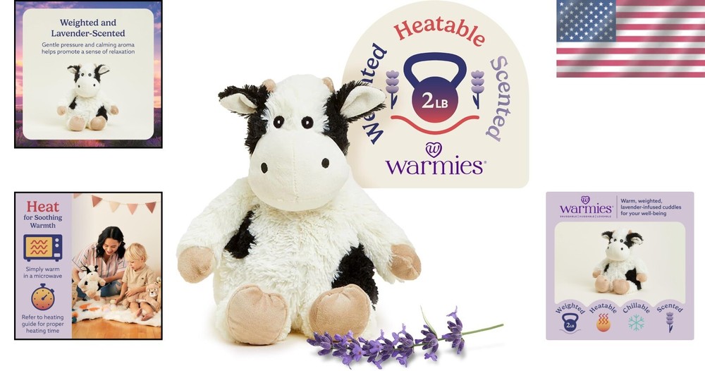 Microwavable Weighted Plush Toy Cow All Ages Cozy Scented Comfort < class="slides"> ‹ › ‹ › ‹ › ‹ › ‹ › ‹ › ‹ › ‹ › Experience Cozy Comfort with the Warmies Black and White Cow The Warmies Microwavable Stuffed Animal in adorable Black and White Cow design is your perfect snuggle buddy for all ages. This 13-inch, 2-pound plush offers soothing warmth or refreshing coolness, making it ideal for comfort, relaxation, and calming moments anytime you need a gentle hug. Soothing Warmth & Coolness – Easily heated in the microwave or chilled in the freezer for personalized comfort. Weighted Plush – Filled with real grains and lightly scented with French lavender for a cozy, calming aroma. Safe & Versatile – Designed for all ages and meets U.S. safety standards, making it a perfect gift for any occasion. Easy to Use – Heat for up to 90 seconds or chill for a few hours to enjoy personalized comfort. Don’t miss out — bring home the ultimate comfort companion today! Embrace warmth, relaxation, and soothing scents with the Warmies Cow plush — your go-to for comfort and calm whenever you need it. Experience Comfort with Confidence – quality, safety, and delightful aromas make Warmies your trusted choice for cozy moments. Treat yourself or someone special — order your Warmies Cow plush and add warmth and comfort to every day. Recommended Age Range: All Ages Type: Stuffed Animal Features: Microwavable,Scented,Weighted,Lightly Scented with Lavender,Comforting for Bedtime,Cooling Option,Real Grain Filling,Child Safe Design Age Level: 4-7,3-4,8-11,12 & Under,1-2,12-16,17 & Up,Infant,Toddler,Preschool,Child,Teen,Adult Animal: Cow Color: Black & White Occasion: Baby Shower Size: Medium (14-24 in)