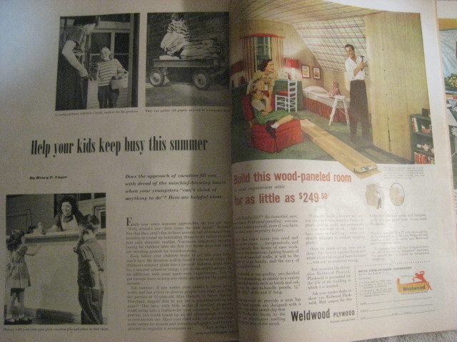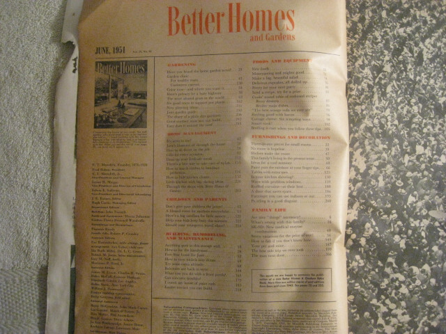 Mid Century Better Homes and Gardens Magazine June 1951 Very Good condition. A few worn spots , but is complete and intact. No missing pages. 266 pages. Many vintage how to articles . Many photos and great vintage adds with prices. Shipping weight is 2 lbs