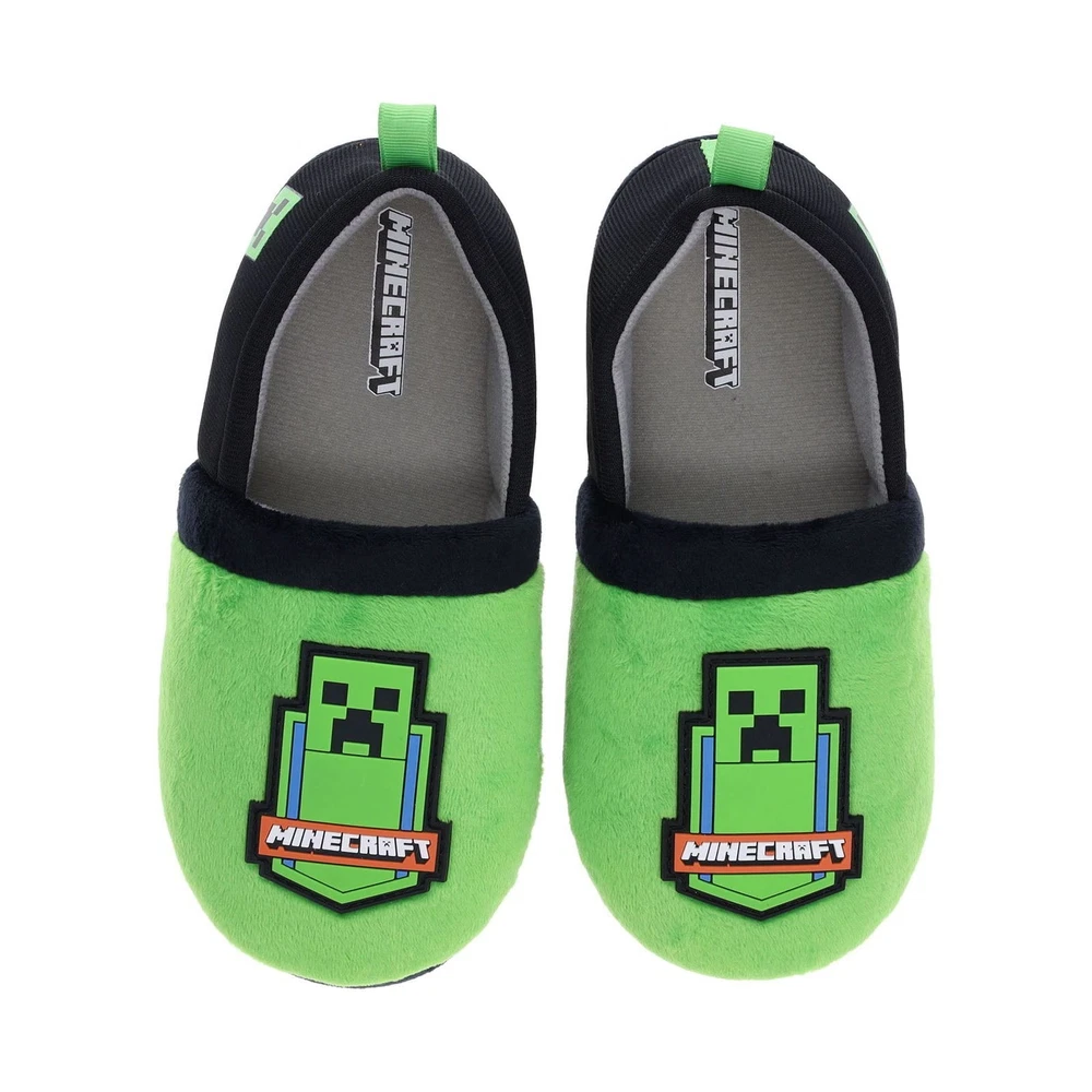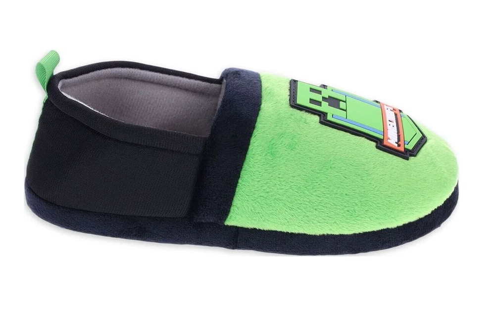 Minecraft Creeper Youth Boys Cozy Comfort Slip-on Slippers Minecraft Boys Creeper Minecraft Slippers for kids feature the iconic Creeper from the wildly popular Minecraft game. Your child will thrill to chill in these cozy step-in kid’s slippers which feature soft plush uppers, and a Creeper design micro-patch. These fun boy’s slippers have padded, soft materials for happy feet, and easy-on/easy-off slip-on kid’s slipper design makes these easy for moms, too. Minecraft Youth Boys Creeper Minecraft Slippers for kids Officially Licensed from the wildly popular Minecraft game Cozy step-in kid’s slippers which feature soft plush uppers Creeper design micro-patch Fun boy’s slippers have padded, soft materials for happy feet Easy-on/easy-off slip-on kid’s slipper design TPR outsole Care: Spot clean Sizes Available: Youth 11/12 - 4/5 FREE FAST SHIPPING!!!