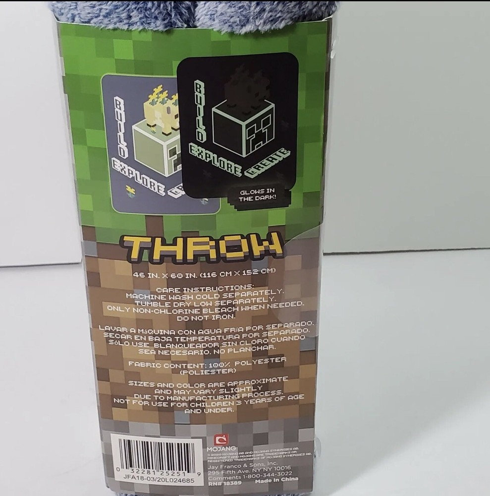 Enhance your Minecraft experience with this Earth Glow in the Dark Throw Blanket! Measuring 46x60 inches, this rectangular blanket features an all-over pattern of Minecraft's iconic Creeper character on a blue and green background made of soft, cozy and durable polyester material. Perfect for all seasons, this throw blanket is suitable for teens, adults, and kids alike. Not only is it warm and comfortable, but it also glows in the dark! This modern style blanket is machine washable, making it easy to clean and maintain. Ideal for the bedroom or any room in the house, this Minecraft-themed blanket is a must-have for any Minecraft enthusiast.