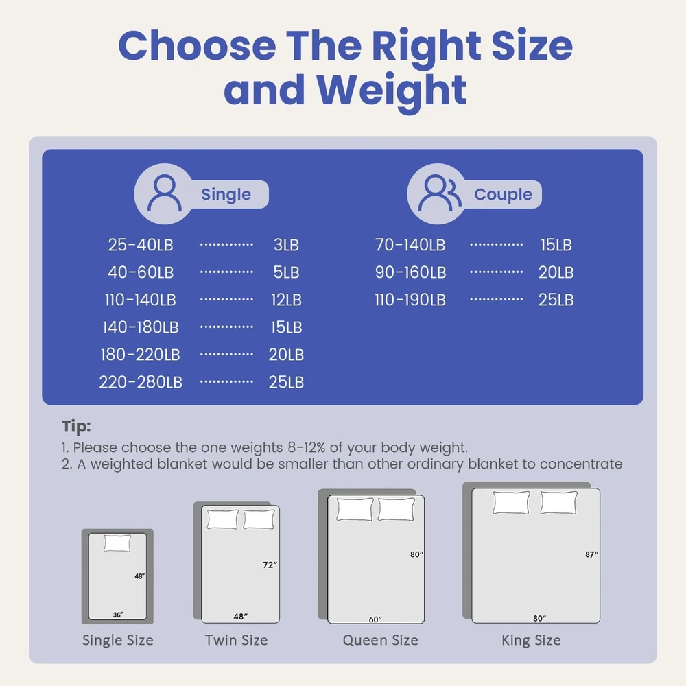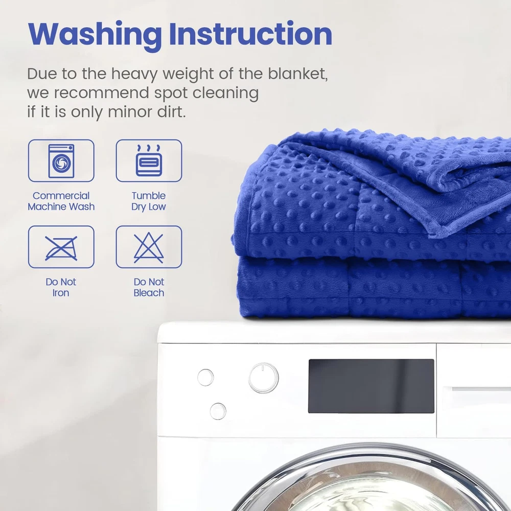 Store New Arrivals Add to Favorite View Feedback Contact Minky Dot Weighted Blanket for Adults King Size 25 Lbs, Soft Cozy Heavy Blanket for Bed and Couch, Breathable Blanket for All-Season with Glass Beads, Blue 80 X 87 Inches Description Style Modern Number of Items 1 Pattern Solid Country of Origin China Embellishment Plain Blanket Form Weighted Blanket Theme Occasion Product Dimensions 87"L x 80"W Material Crystal Velvet Age Range (Description) Adult Seasons All Water Resistance Level Not Water Resistant Item Weight 25 pounds Fill Material Ceramic Beads Special Feature Fade Resistant Fabric Warmth Description Moderate Color Blue Recommended Uses For Product Reading, Napping Fabric Type Crystal Velvet Product Care Instructions Machine Wash Size 80" x 87" 25lbs Premium Weighted Blanket: The Bubble Pressure Weighted Blanket is made from plush, soft crystal velvet, suitable for all seasons. It contains 0.88mm hypoallergenic, non-toxic ceramic beads, evenly distributed within small squares for pressure dispersion. An extra layer of breathable microfiber minimizes bead leakage and noise, preventing bead tearing and spillage, thereby boosting durability and comfort Stress Relief & Better Sleep: Our weighted blanket is designed with pressure bubbles to give you an extraordinary touch experience. Its raised dot design will help you relieve stress faster and relax efficiently. Meanwhile, the weight of the blanket provides a feeling of security and comfort, replicating the feel of a warm embrace, promoting excellent quality sleep, making it your close sleep companion Choosing the Right Weight: We suggest that you start with a blanket which weighs approximately 8%-12% of your body weight. Usually, it takes 3-5 days to adjust to the weight of this blanket. A quick note: a weighted blanket would appear smaller than a traditional one since its weight needs to concentrate on your body, so the blanket doesn't hang over the edge of the bed Washing Instruction: Our weighted blankets are designed for durability and wrinkle resistance, no pilling, fading, or shrinking. We recommend washing in a commercial machine and tumble drying on a low temperature, blankets should not be bleached or ironed, if only lightly soiled we recommend spot cleaning Suitable for all season: Our adult weighted blankets are available in a variety of colors and sizes, perfect for all seasons, choose the right weighted blanket and experience the feeling of being wrapped up Product Description ABOUT US We offer the best prices around on high quality products. Our E-store includes media such as books, movies, music and games while offering electronics, toys, sporting apparel, clothing, tools, general home, garden items and more. SHIPPING We are always working hard to ensure your package arrives as soon as possible. Please understand that some factors like weather, high postal traffic, and the performance of shipping companies are outside of our control. We offer free shipping to the lower 48 states and ship within 2 business days of payment, usually sooner. We do not accept P.O. Boxes. Please provide a physical address. For shipping outside of the continental USA, we only use eBay's Global Shipping Program.The item is shipped to KY and then sent to the rest of the world. International customers are responsible for all duties and taxes. Continue to check out in order to calculate costs for shipping the item to your country. Messages regarding eBay's Global Shipping Program MUST be directed at eBay EXCLUSIVELY. RETURNS We offer a 30-Day Return Policy on items which you are not completely satisfied with. You have the option for a full-refund or an exchange of the item. No returns are available on items shipped outside of the USA. PAYMENT We accept PayPal. CONTACT US This page content is yet to come Please ad us to your favorite seller and visit again later Thank You CUSTOMER SATISFACTION We try our very best to make sure every customer is completely satisfied. If there's a problem, message us! We're happy to help.