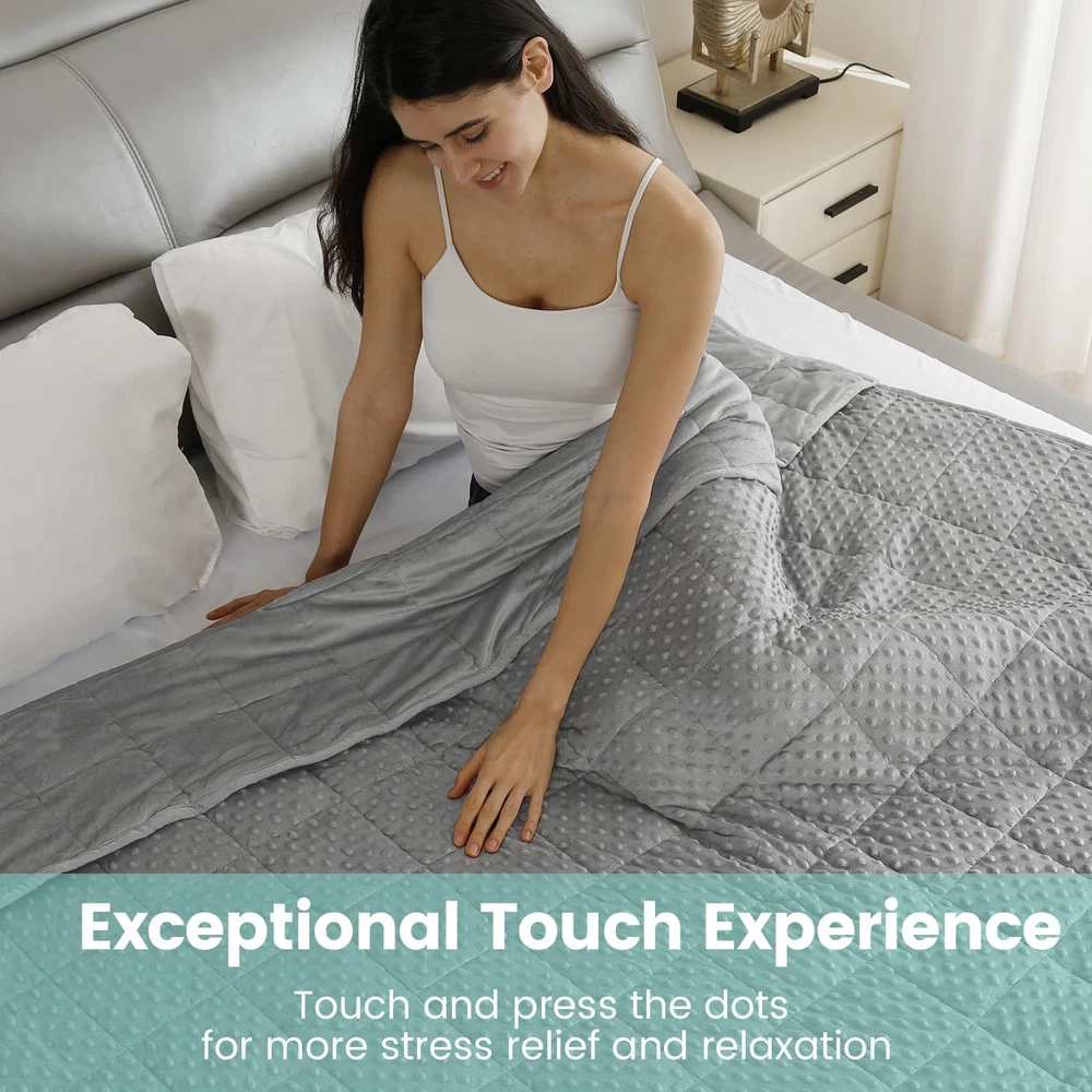 Store New Arrivals Add to Favorite View Feedback Contact Minky Dot Weighted Blanket for Adults King Size 25 Lbs, Soft Cozy Heavy Blanket for Bed and Couch, Breathable Blanket for All-Season with Glass Beads, Grey 80 X 87 Inches Description Fabric Warmth Description Heavyweight Style Modern Number of Items 1 Color Grey Pattern Solid Product Dimensions 87"L x 80"W Material Crystal Velvet Country of Origin China Fabric Type Crystal Velvet Item Weight 25 pounds Blanket Form Weighted Blanket Theme Occasion Fill Material Ceramic beads Age Range (Description) Adult Recommended Uses For Product Napping, Reading Seasons All Special Feature Fade Resistant Product Care Instructions Machine Wash Size 80" x 87" 25lbs Premium Weighted Blanket: The Bubble Pressure Weighted Blanket is made from plush, soft crystal velvet, suitable for all seasons. It contains 0.88mm hypoallergenic, non-toxic ceramic beads, evenly distributed within small squares for pressure dispersion. An extra layer of breathable microfiber minimizes bead leakage and noise, preventing bead tearing and spillage, thereby boosting durability and comfort Stress Relief & Better Sleep: Our weighted blanket is designed with pressure bubbles to give you an extraordinary touch experience. Its raised dot design will help you relieve stress faster and relax efficiently. Meanwhile, the weight of the blanket provides a feeling of security and comfort, replicating the feel of a warm embrace, promoting excellent quality sleep, making it your close sleep companion Choosing the Right Weight: We suggest that you start with a blanket which weighs approximately 8%-12% of your body weight. Usually, it takes 3-5 days to adjust to the weight of this blanket. A quick note: a weighted blanket would appear smaller than a traditional one since its weight needs to concentrate on your body, so the blanket doesn't hang over the edge of the bed Washing Instruction: Our weighted blankets are designed for durability and wrinkle resistance, no pilling, fading, or shrinking. We recommend washing in a commercial machine and tumble drying on a low temperature, blankets should not be bleached or ironed, if only lightly soiled we recommend spot cleaning Suitable for all season: Our adult weighted blankets are available in a variety of colors and sizes, perfect for all seasons, choose the right weighted blanket and experience the feeling of being wrapped up Minky Dot Weighted Blanket for Adults ABOUT US We offer the best prices around on high quality products. Our E-store includes media such as books, movies, music and games while offering electronics, toys, sporting apparel, clothing, tools, general home, garden items and more. SHIPPING We are always working hard to ensure your package arrives as soon as possible. Please understand that some factors like weather, high postal traffic, and the performance of shipping companies are outside of our control. We offer free shipping to the lower 48 states and ship within 2 business days of payment, usually sooner. We do not accept P.O. Boxes. Please provide a physical address. For shipping outside of the continental USA, we only use eBay's Global Shipping Program.The item is shipped to KY and then sent to the rest of the world. International customers are responsible for all duties and taxes. Continue to check out in order to calculate costs for shipping the item to your country. Messages regarding eBay's Global Shipping Program MUST be directed at eBay EXCLUSIVELY. RETURNS We offer a 30-Day Return Policy on items which you are not completely satisfied with. You have the option for a full-refund or an exchange of the item. No returns are available on items shipped outside of the USA. PAYMENT We accept PayPal. CONTACT US This page content is yet to come Please ad us to your favorite seller and visit again later Thank You CUSTOMER SATISFACTION We try our very best to make sure every customer is completely satisfied. If there's a problem, message us! We're happy to help.