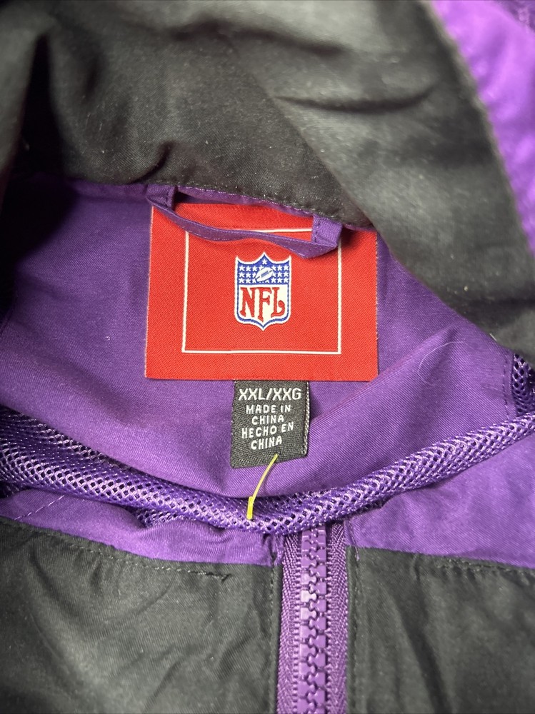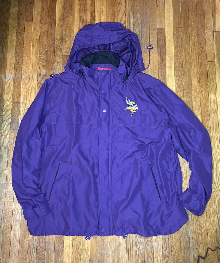 Minnesota Vikings Jacket Mens 2XL Purple NFL Water Wind Proof Hooded Vintage. Condition is Used. Shipped with USPS Priority Mail....