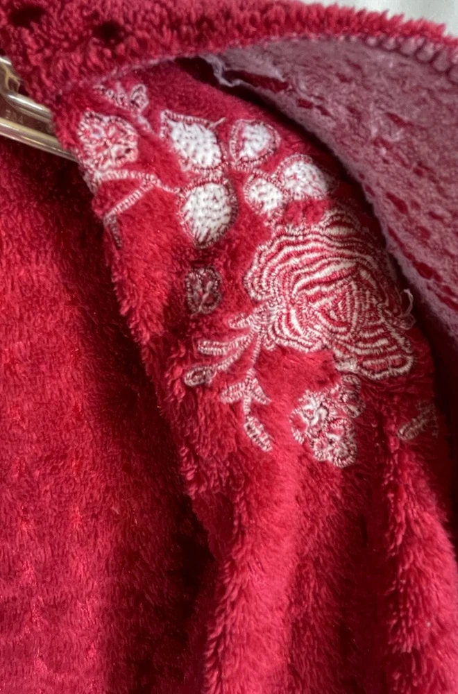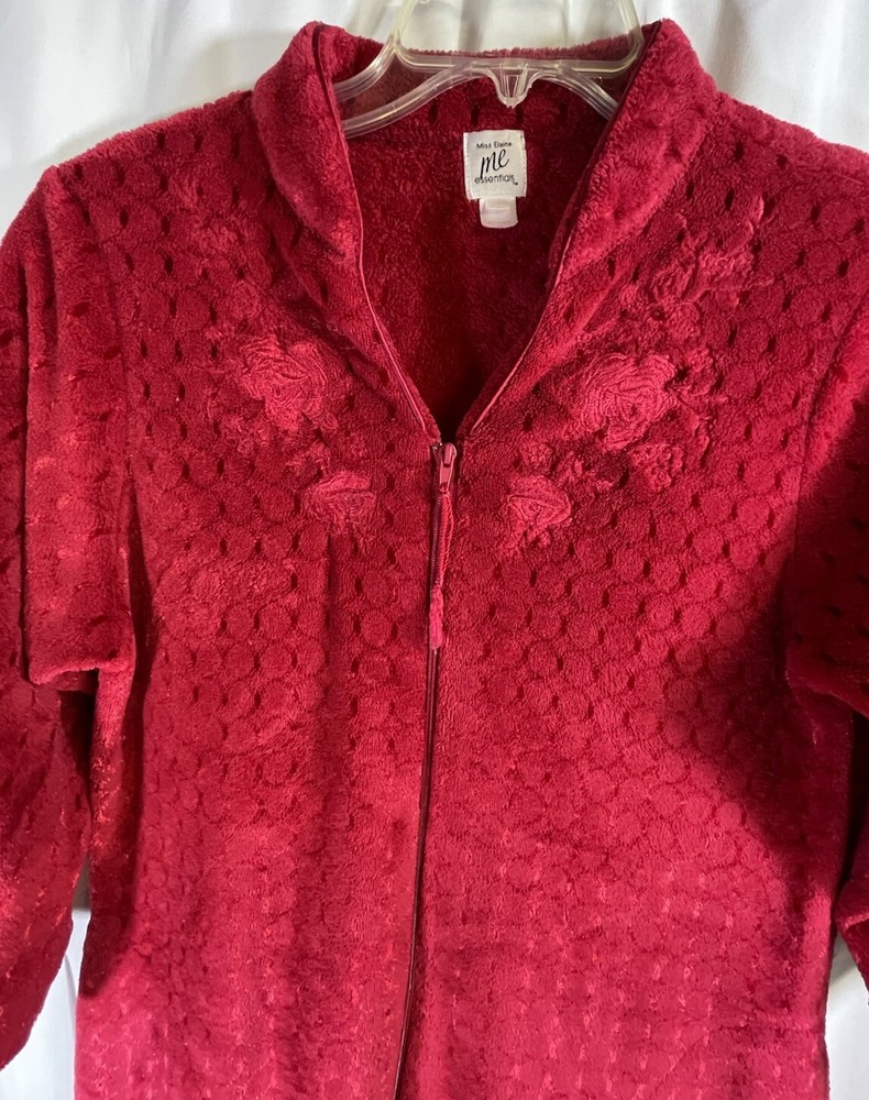 Great condition Tag is worn Zip up Size Small 2 side pockets Soft Embroided 47” length from shoulder to hem...