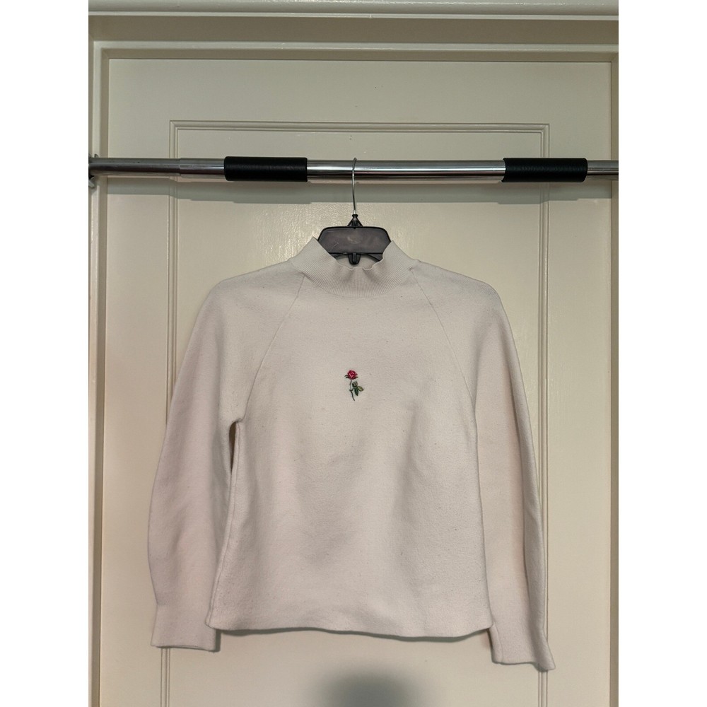 A cozy and stylish mock neck sweatshirt, perfect for adding a touch of minimalist charm to your wardrobe. This pullover features a delicate rose embroidery detail, adding a subtle yet elegant accent. The comfortable fit and soft fabric make it ideal for everyday wear, while the mock neck design provides extra warmth and coverage. This versatile sweatshirt is perfect for casual outings, relaxed weekends at home, or layering under a jacket for added warmth during cooler weather. Style: Pullover Color: Beige Department: Women Type: Sweatshirt Closure: Pullover Character: Rose, Minimalist, Comfy, Casual, Elegant Features: Embroidered, Comfort Fit, Minimalist, Pullover Fabric Type: Knit Material: Cotton Blend Pattern: Solid Accents: Embroidered Sleeve Length: Long Sleeve Neckline: Mock Neck Keywords: mock neck sweatshirt, rose embroidered sweatshirt, pullover sweatshirt, cream sweatshirt, minimalist sweatshirt, casual top, comfy sweatshirt, long sleeve sweatshirt, women's sweatshirt, embroidered top, rose detail, crewneck alternative